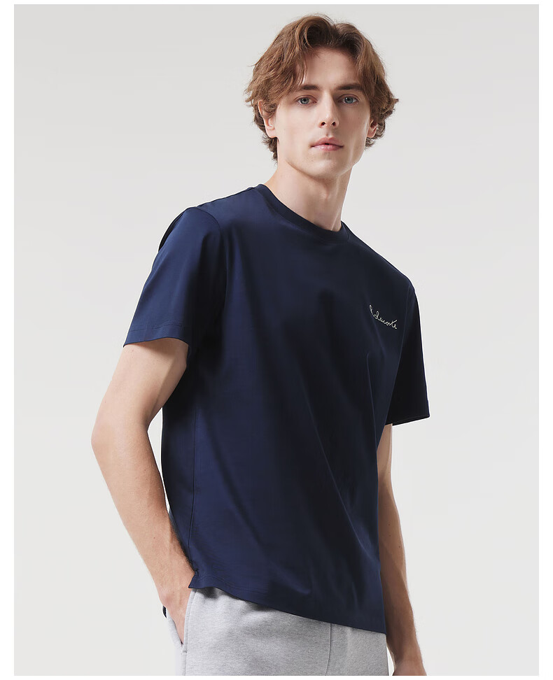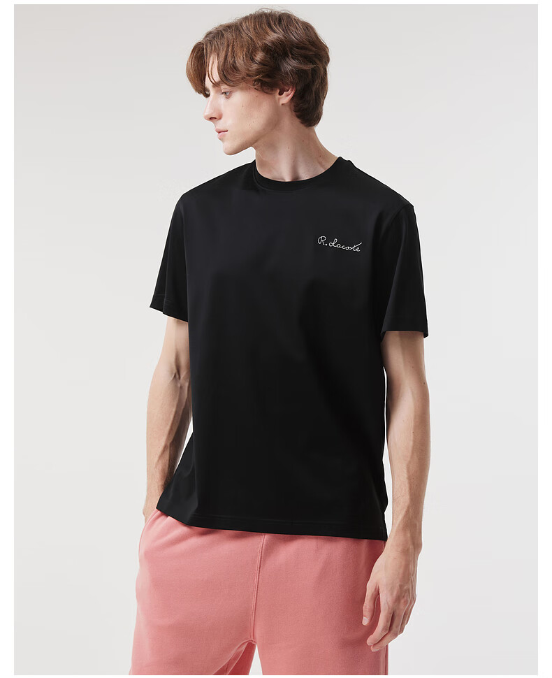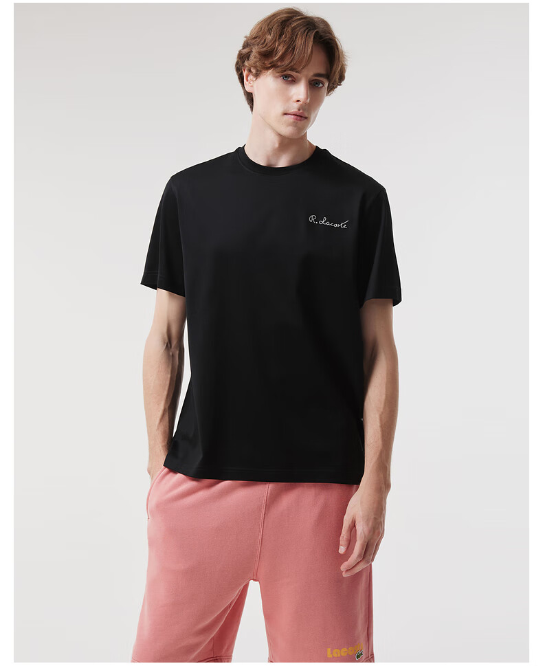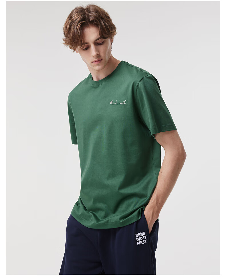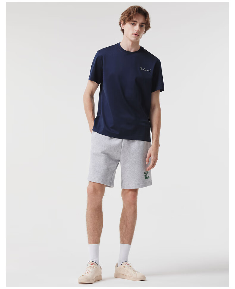 LACOSTE French crocodile men's simple casual solid color round neck short-sleeved T-shirt | TH3838 166/Navy Blue M 4 175