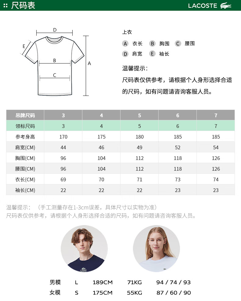 China (cm) 160-165/84-86 165-170 / 88-90 167-172 / 92-96 168-173 / 98-102 170-176 / 106-110