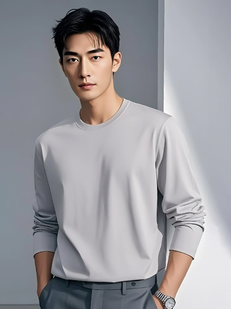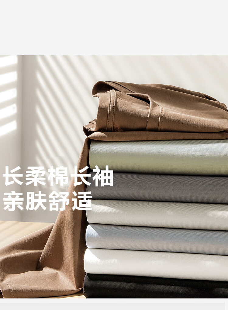 7A Antibacterial 100% Cotton Basic Bottoming Shirt Long Sleeve T-shirt Men's Casual Inner Versatile T-shirt for Men and Women White 2XL Recommended 140-155Jin Jin is equal to 0.5 kg