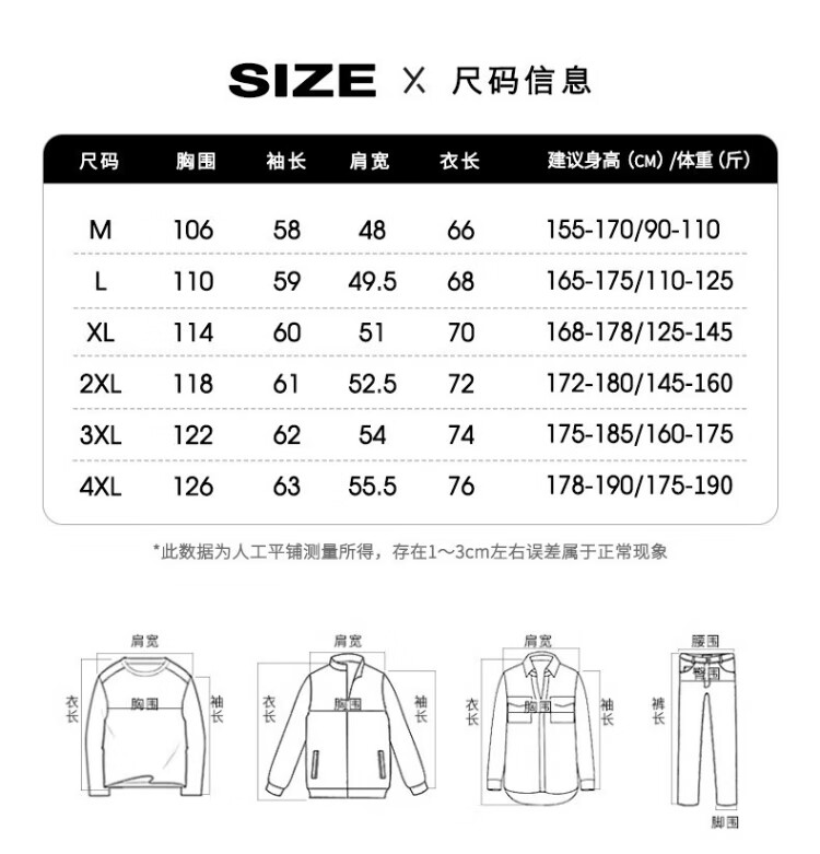 China (cm) 165 / 88-90 170 / 96-98 175 / 108-110 180 / 118-122 185 / 126-130
