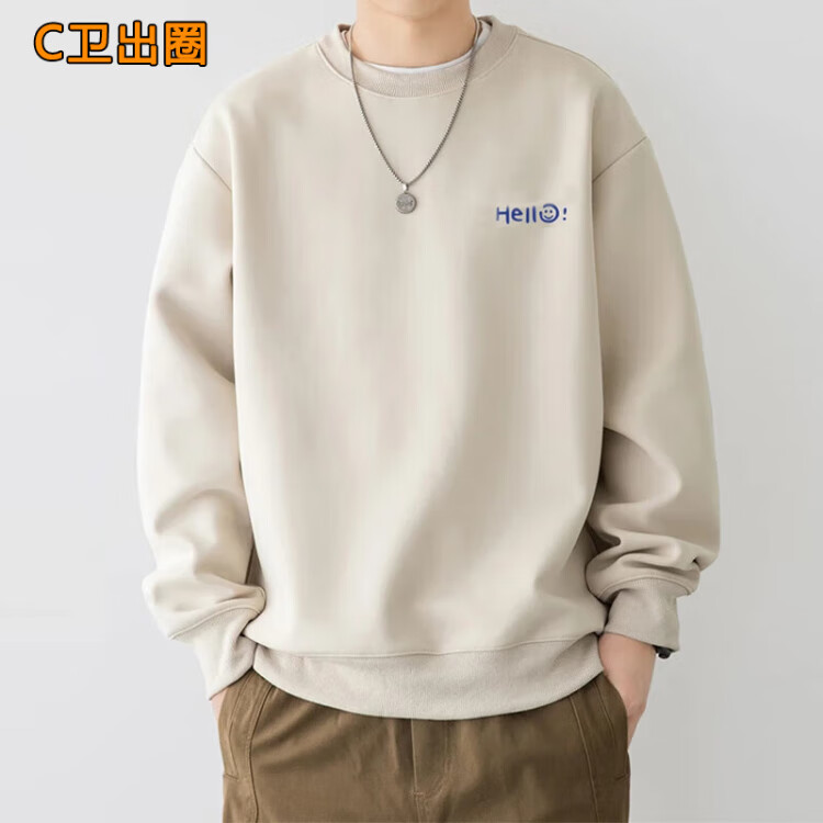 Pull-back sweatshirt men's round neck long-sleeved T-shirt printed simple bottoming shirt men's spring and autumn casual jacket men's clothing