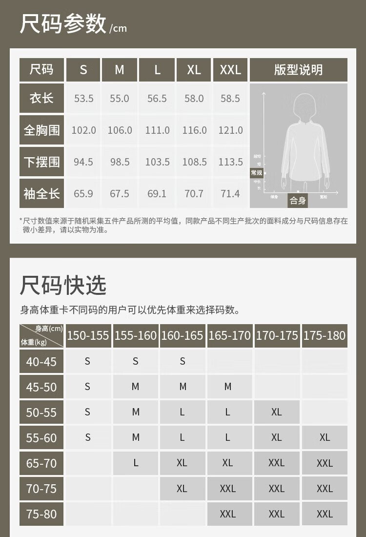 China (cm) 160-165/84-86 165-170 / 88-90 167-172 / 92-96 168-173 / 98-102 170-176 / 106-110