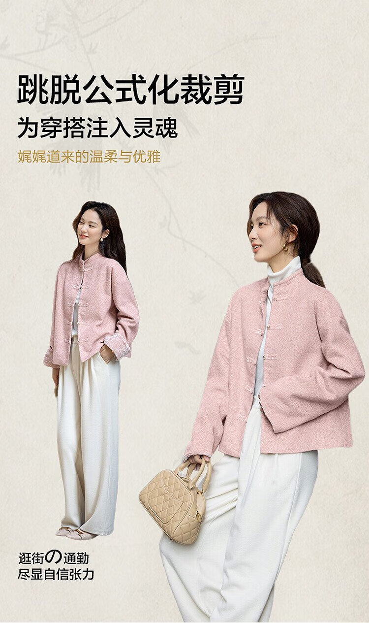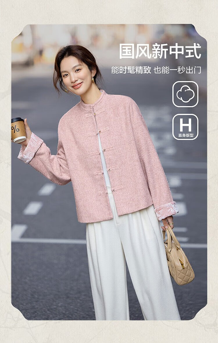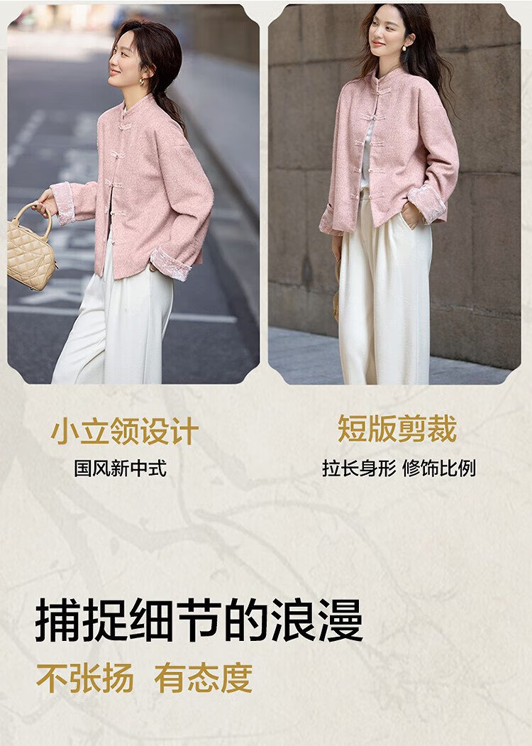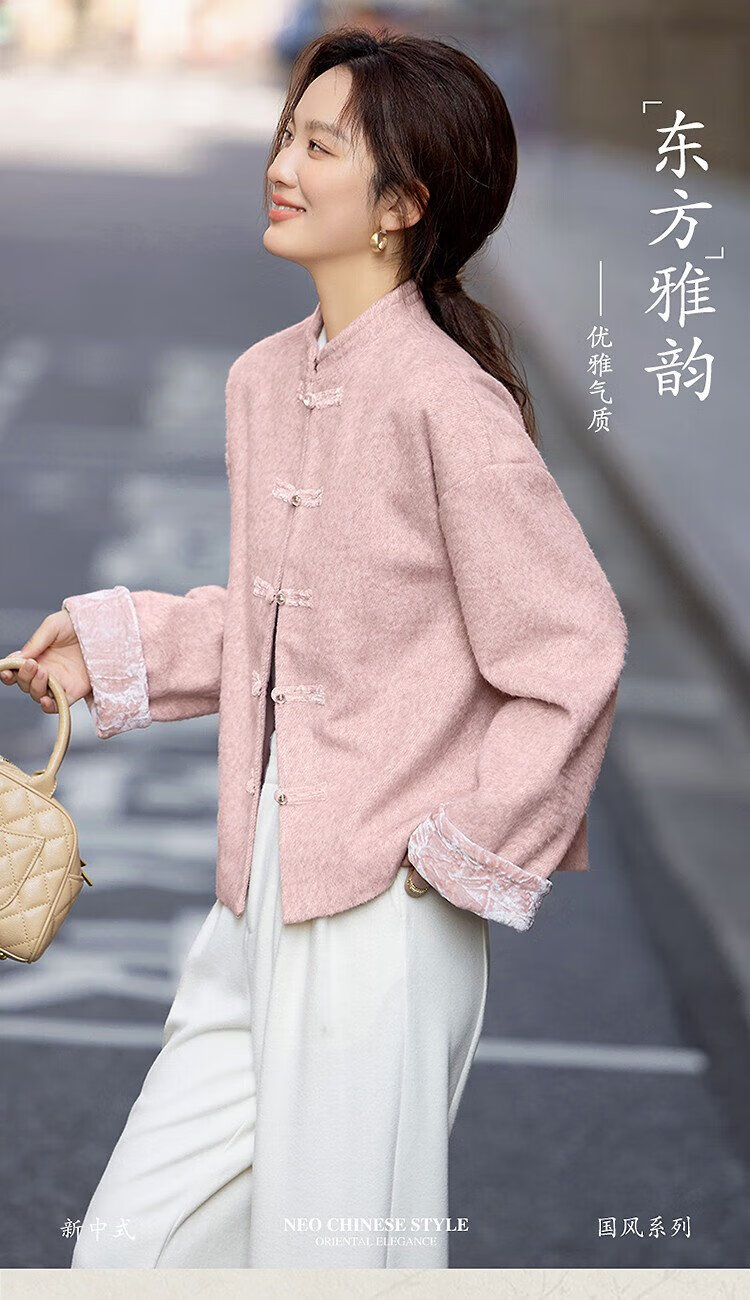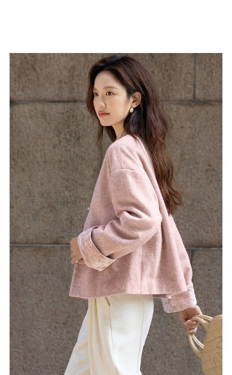 Demana cotton, sheep and wool blended winter Chinese style new Chinese style stand collar dignified plate button velvet splicing short women's jacket