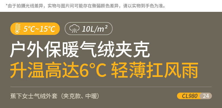 Beneunder Air Fleece Jacket Women's Jacket Warm Medium Warmth Machine Washable Outdoor Cotton Clothes CL004 Like Down