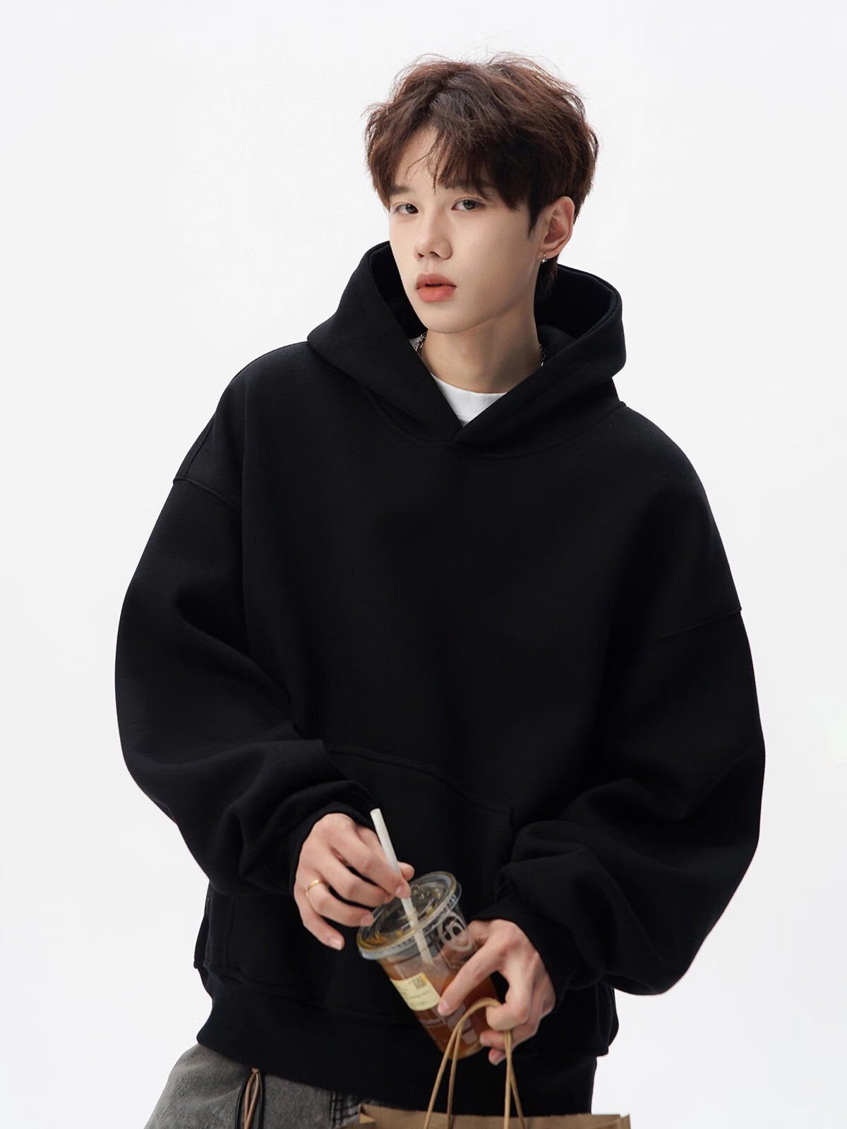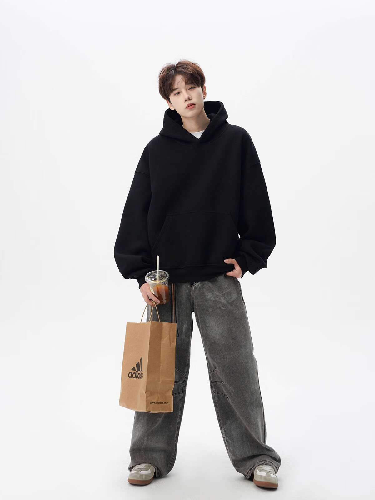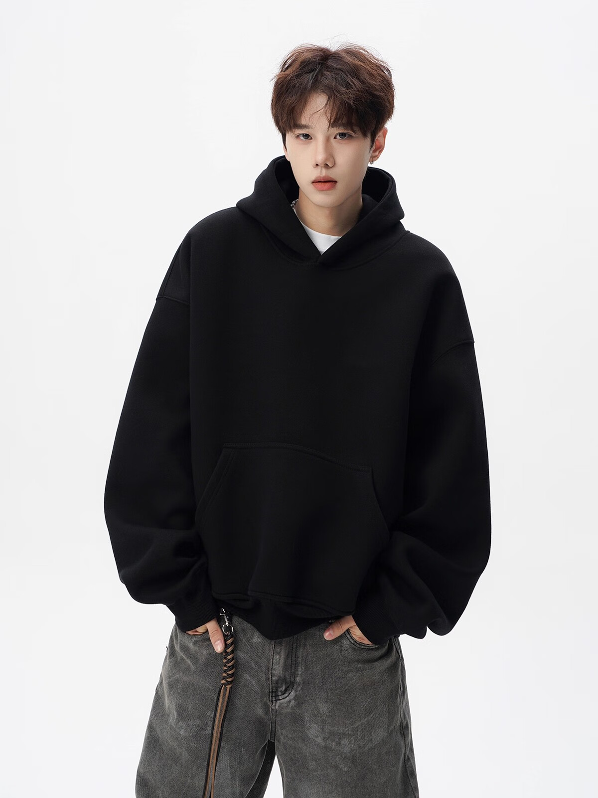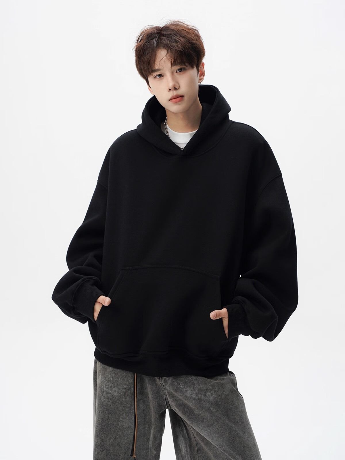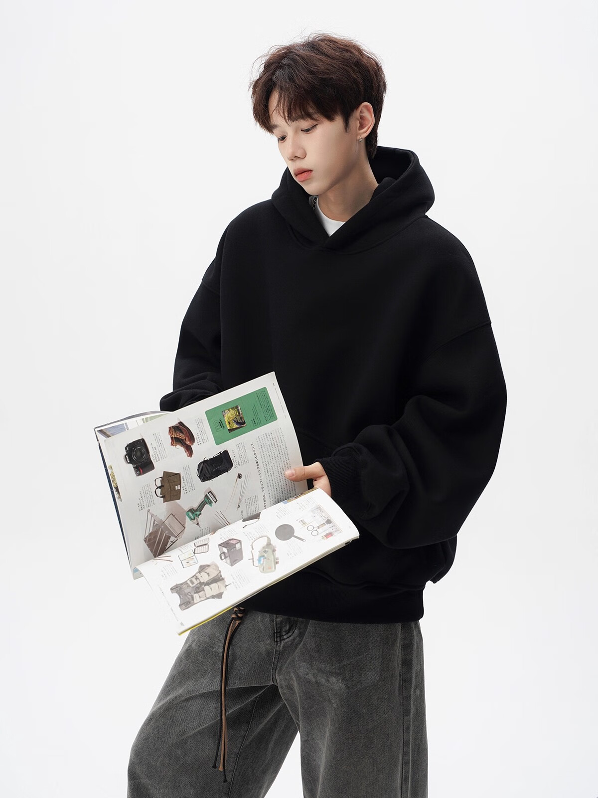 OEMG heavyweight 400G velvet thickened hooded sweatshirt for men in autumn and winter American high street jacket trendy brand loose hoodie black XL recommended 110-130Jin Jin equals 0.5 kg