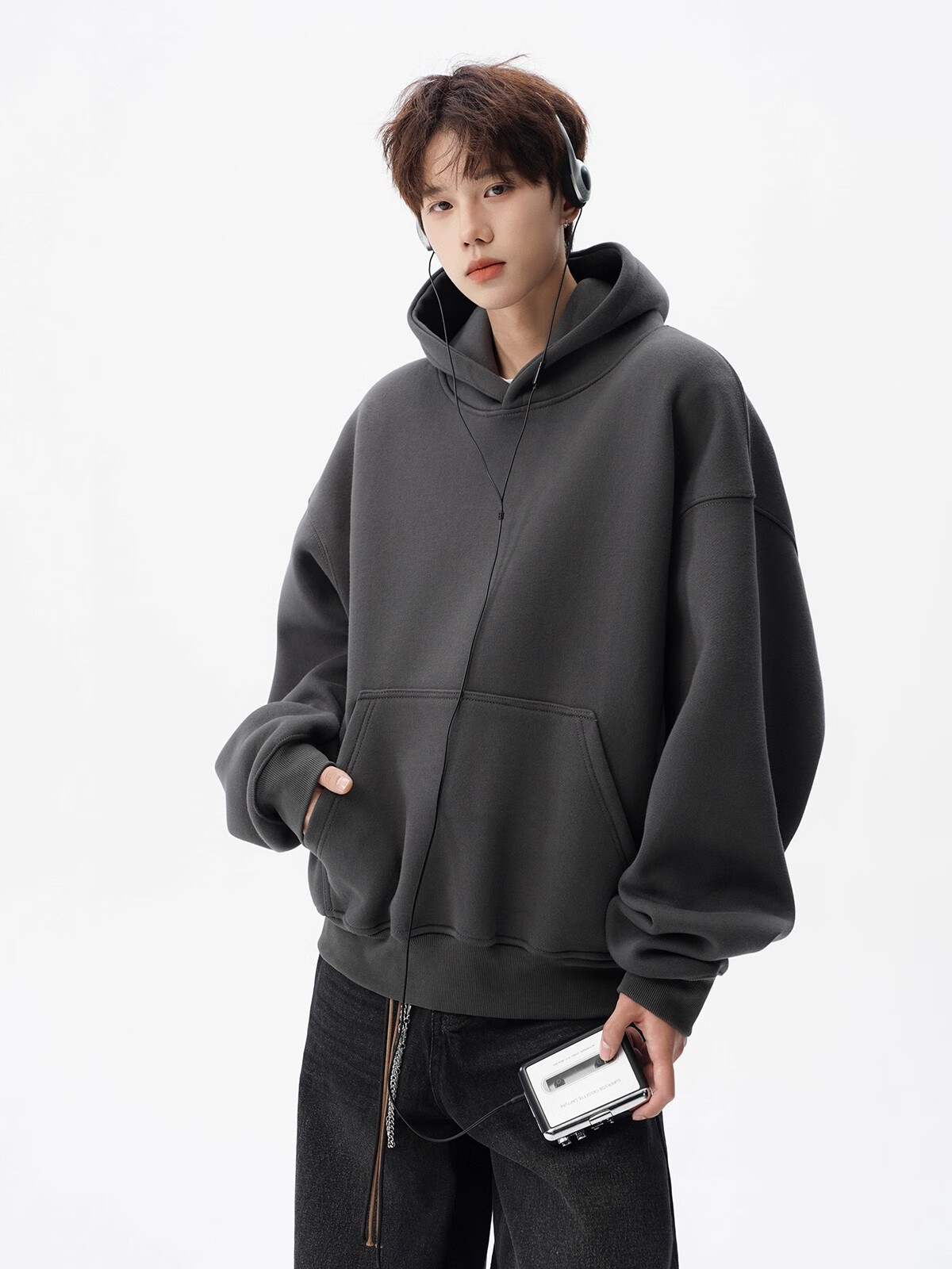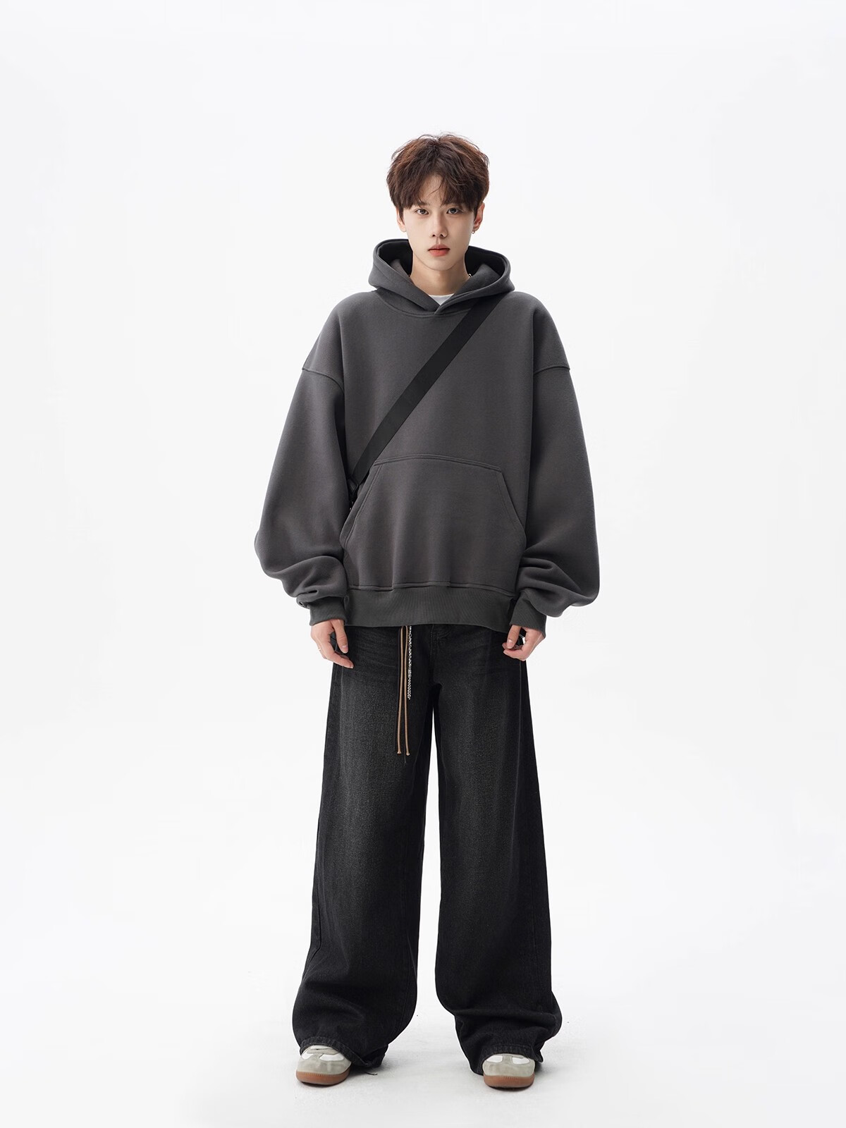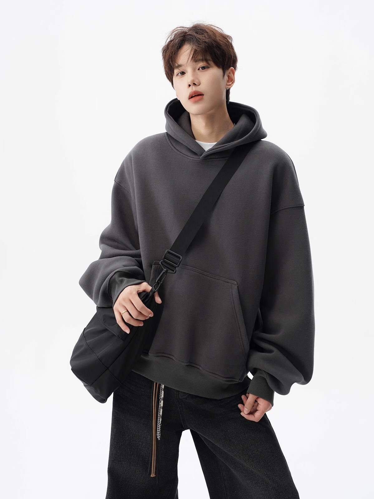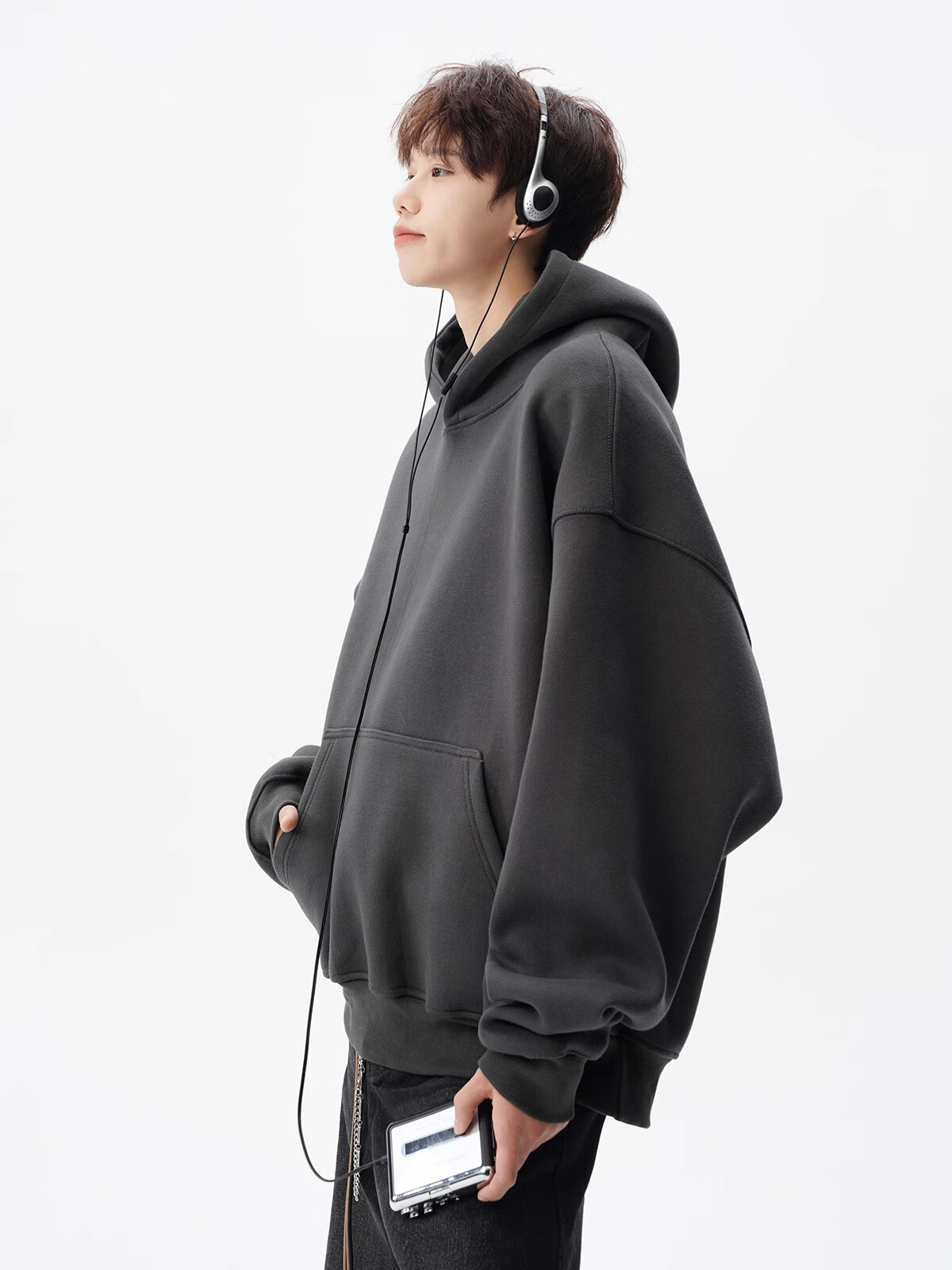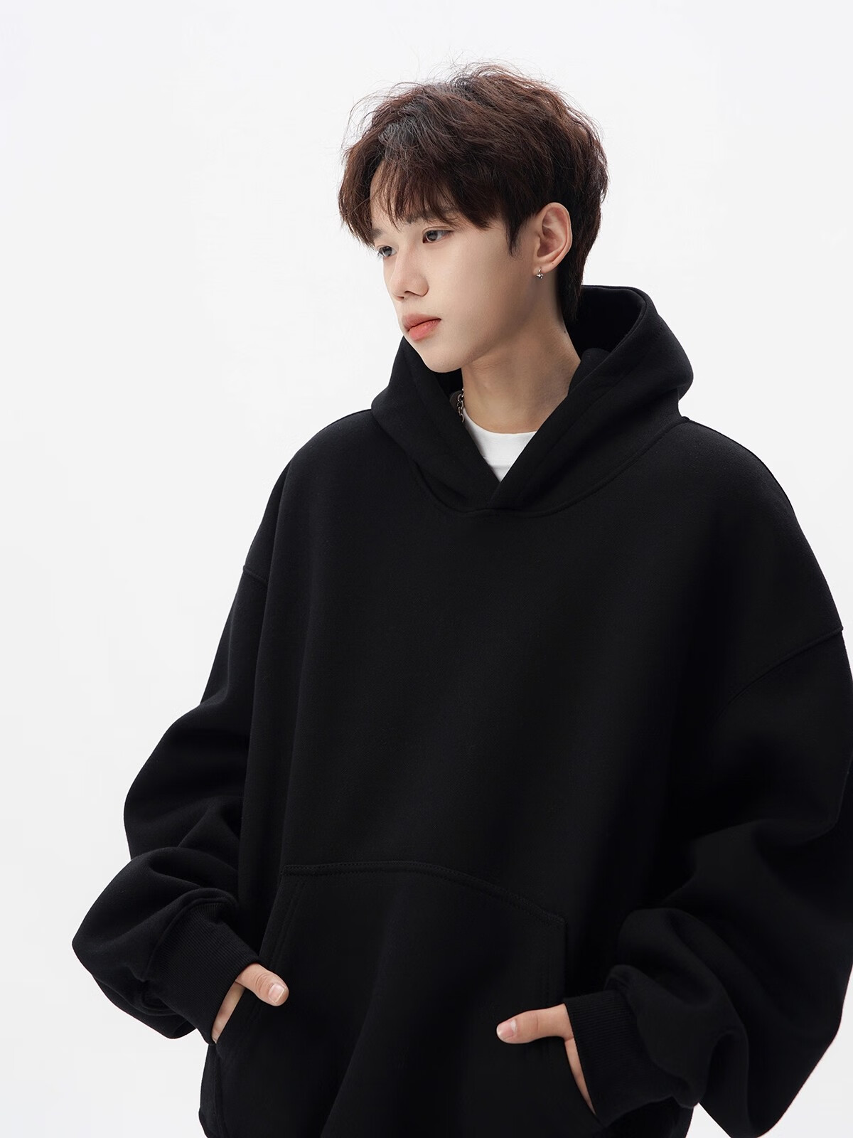 OEMG heavyweight 400G velvet thickened hooded sweatshirt for men in autumn and winter American high street jacket trendy brand loose hoodie black XL recommended 110-130Jin Jin equals 0.5 kg