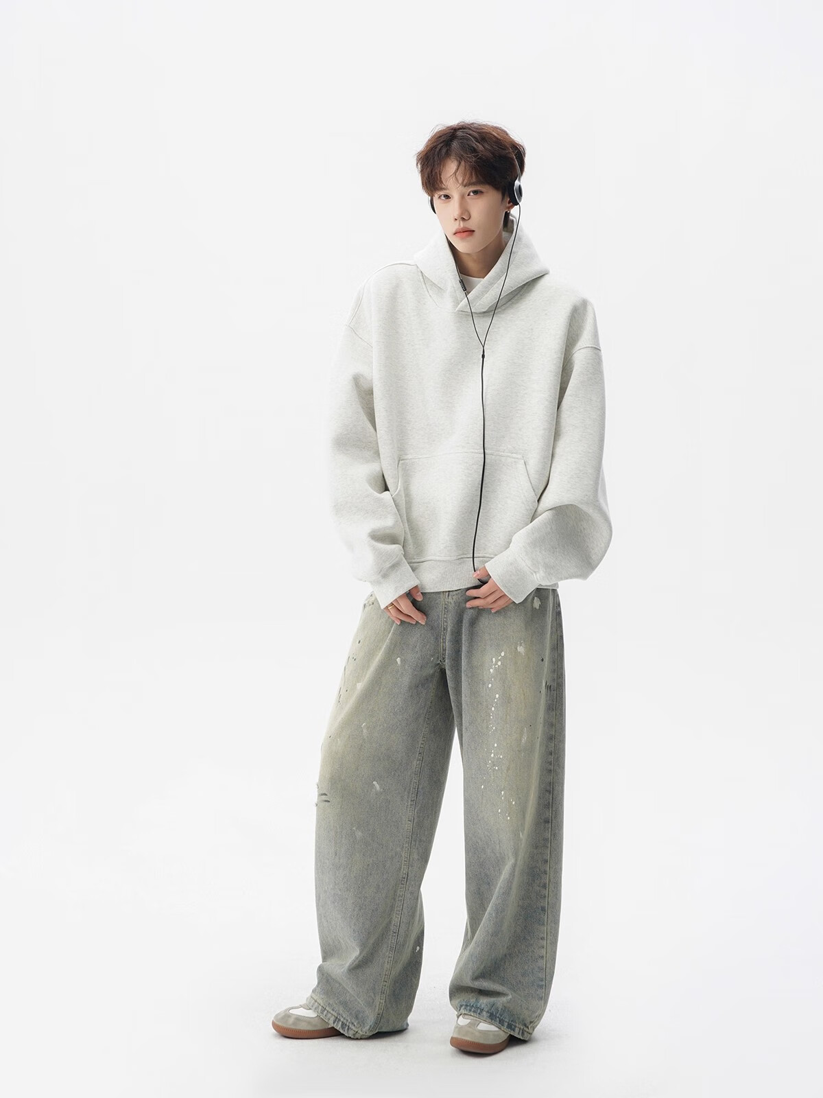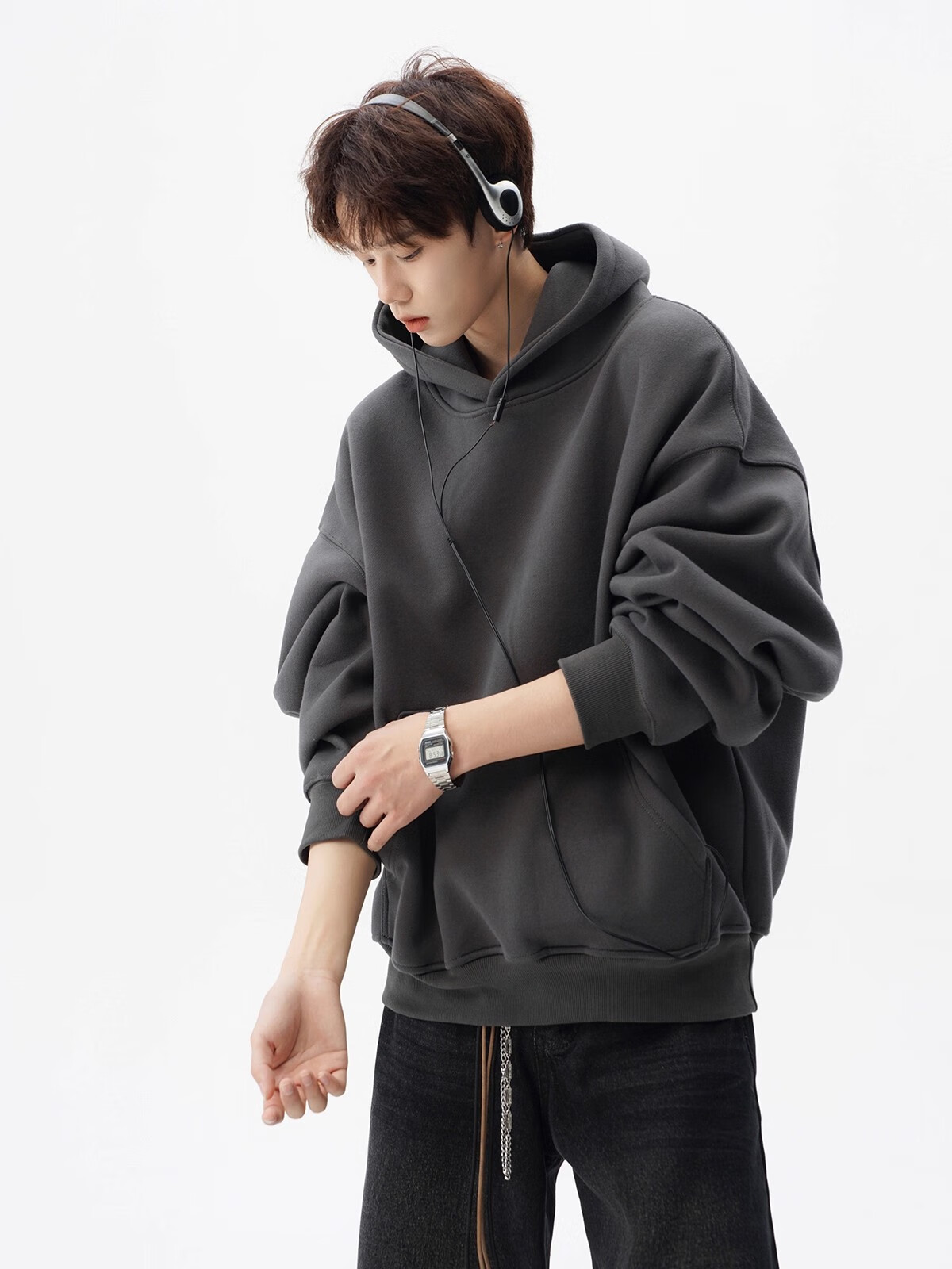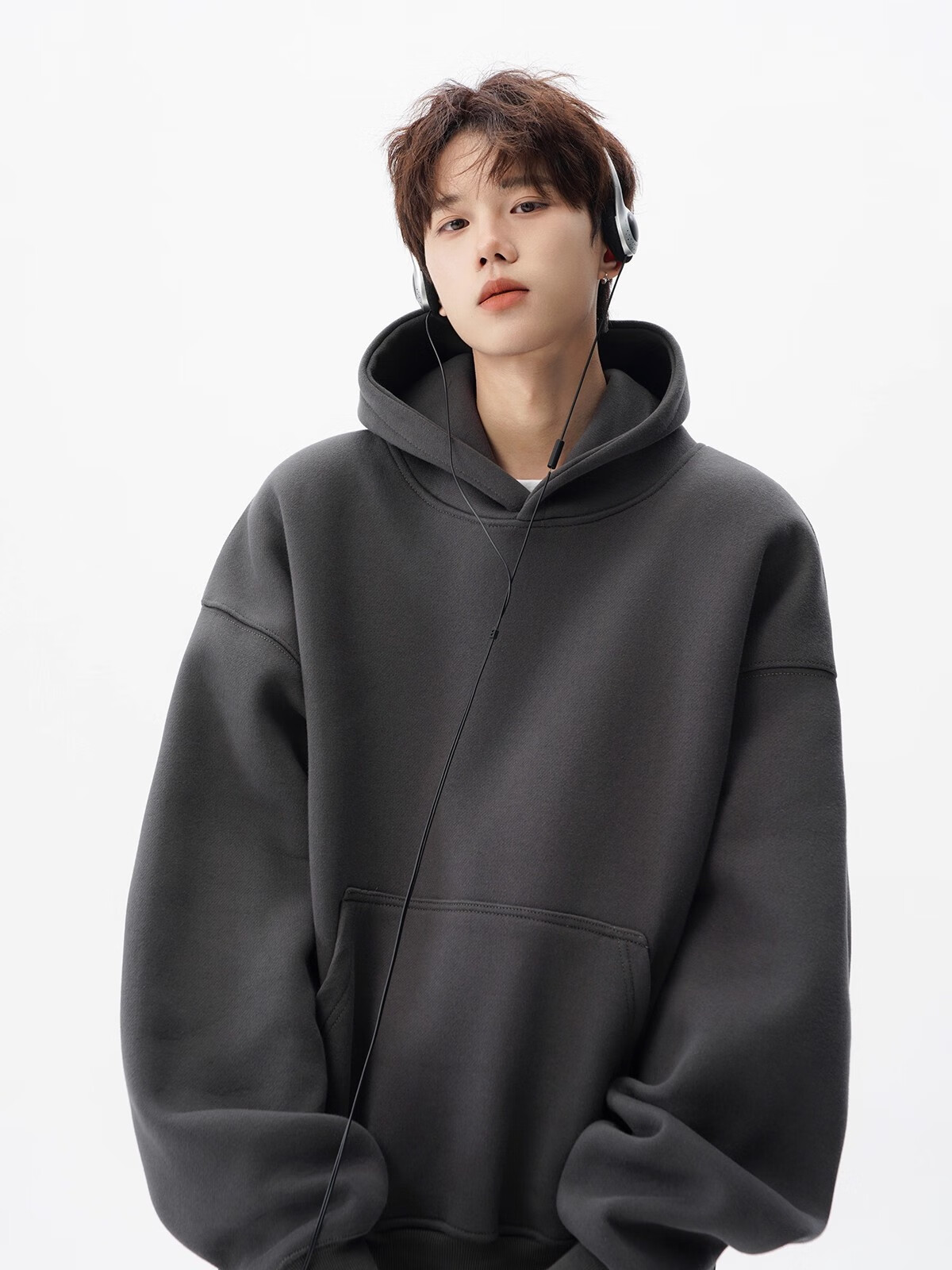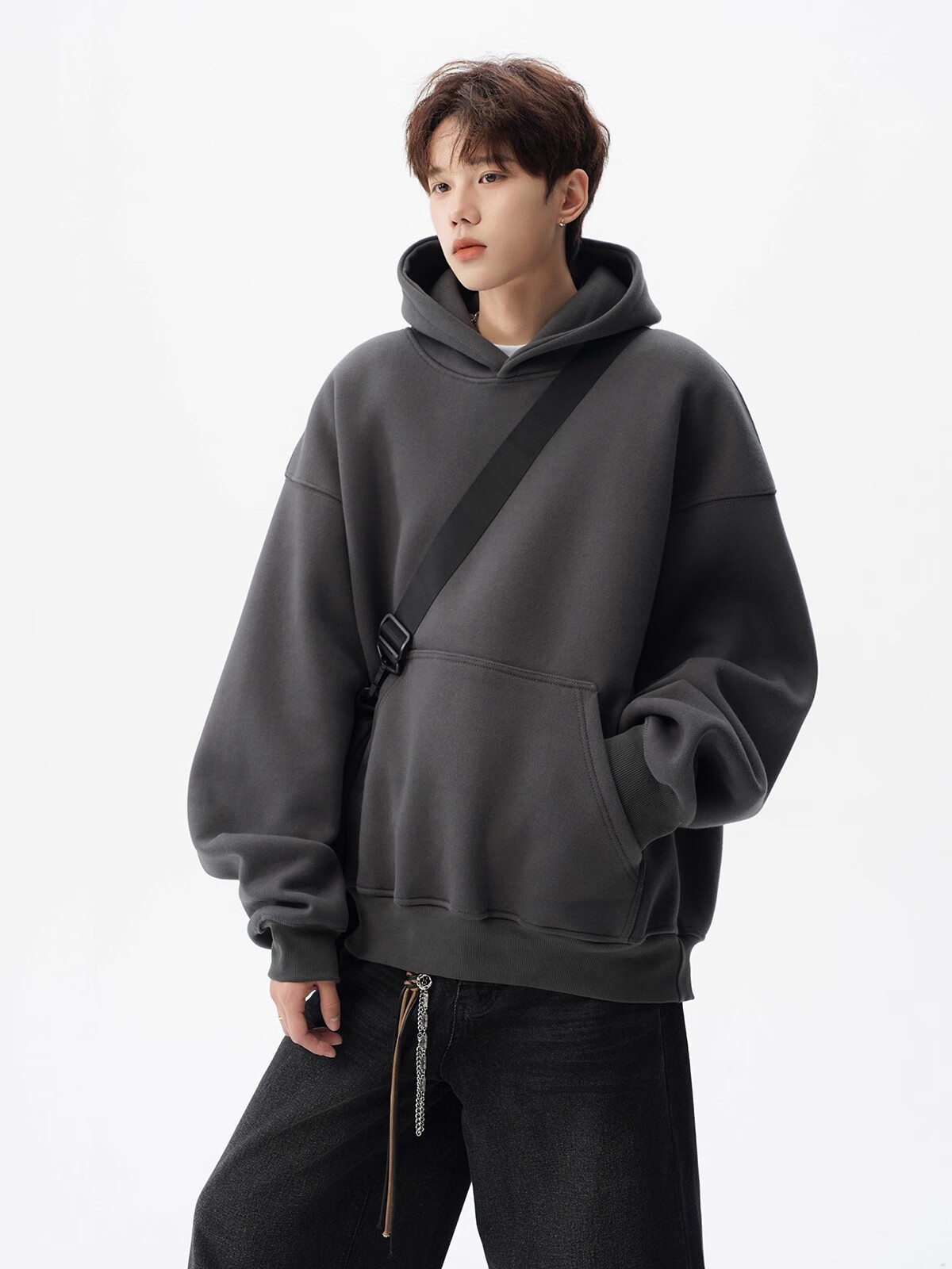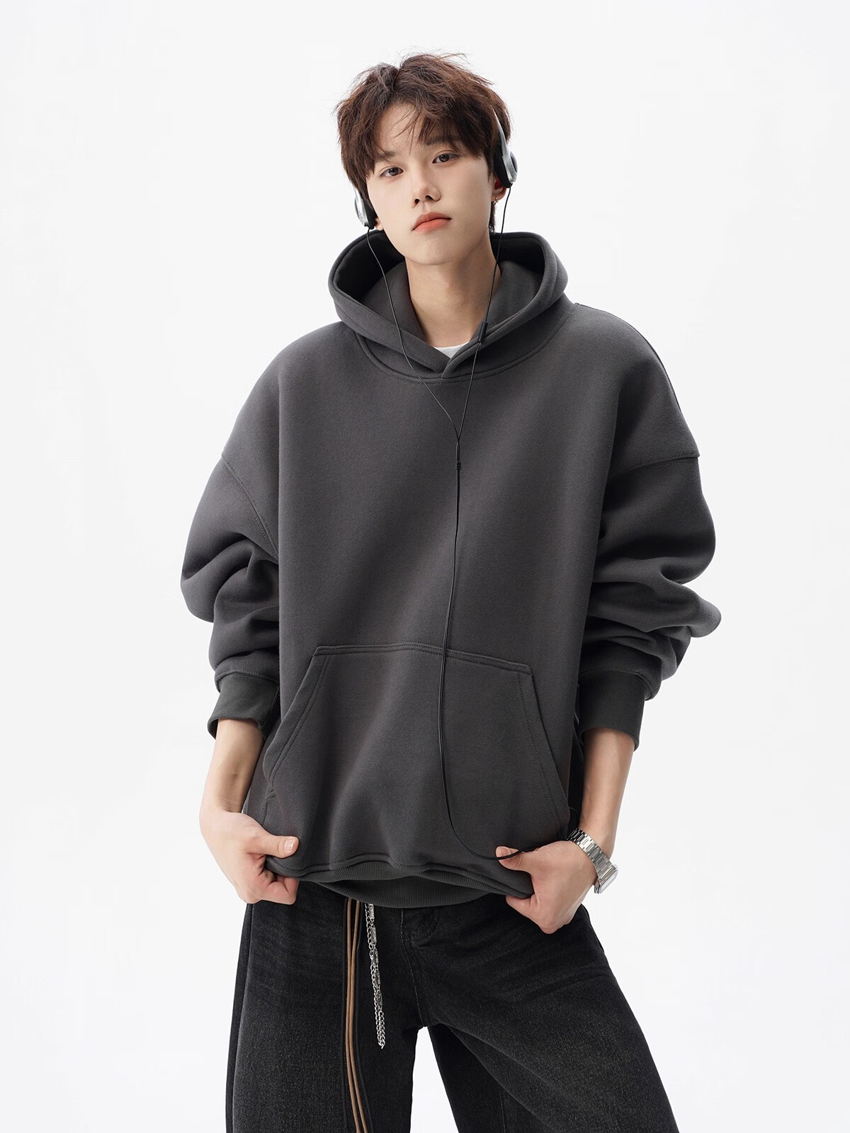 OEMG heavyweight 400G velvet thickened hooded sweatshirt for men in autumn and winter American high street jacket trendy brand loose hoodie black XL recommended 110-130Jin Jin equals 0.5 kg
