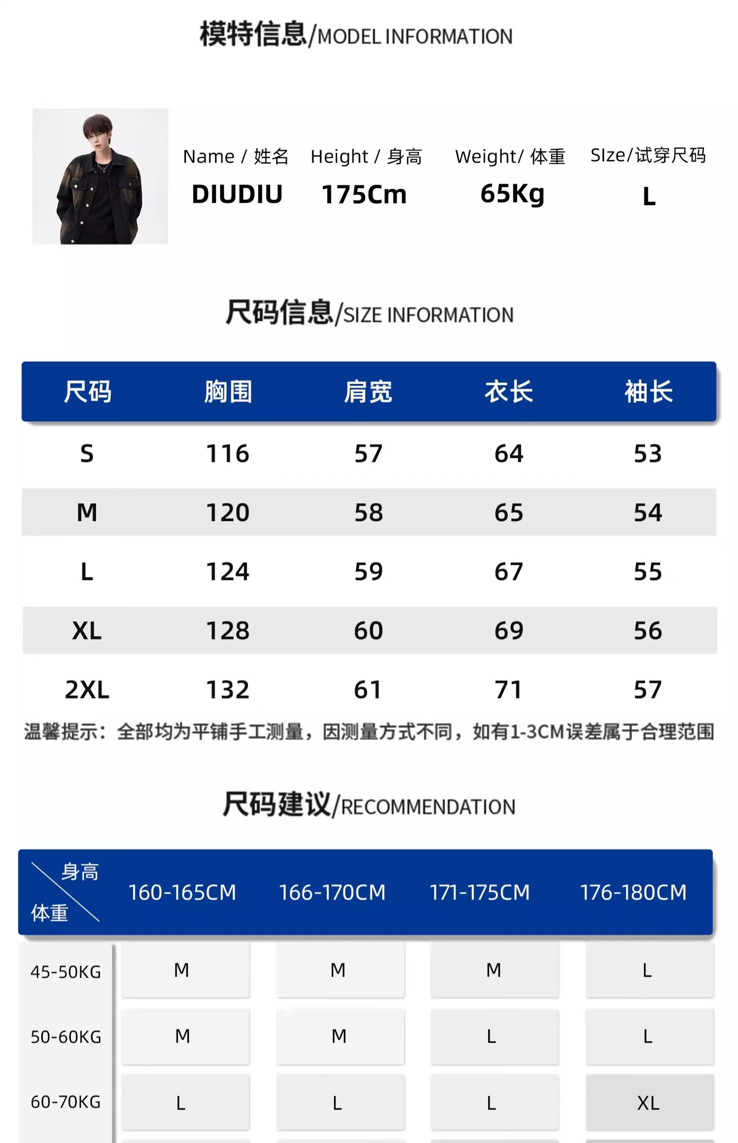 China (cm) 165 / 88-90 170 / 96-98 175 / 108-110 180 / 118-122 185 / 126-130