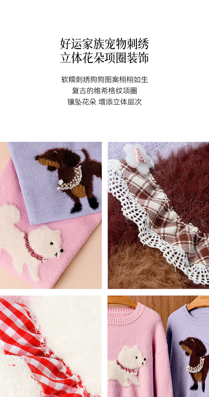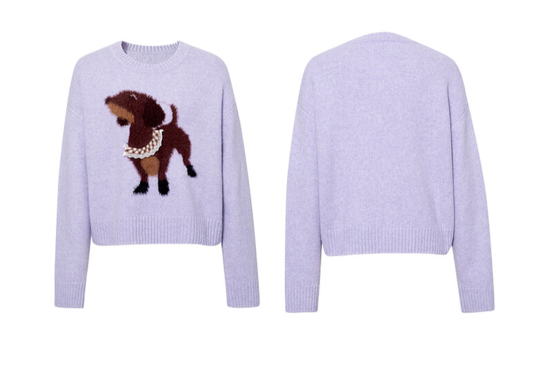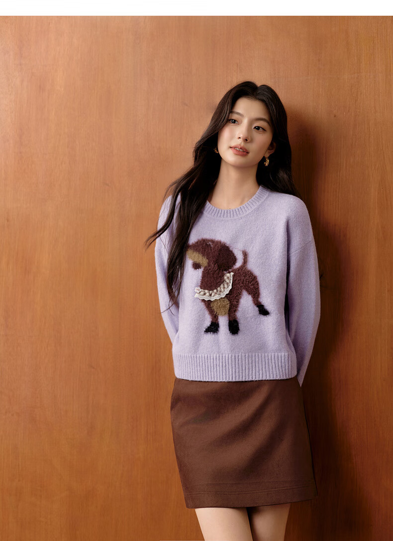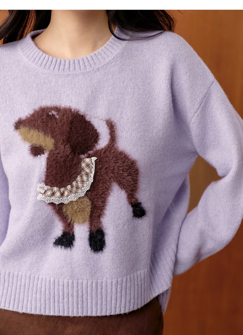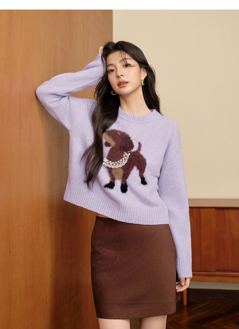 SEIFINI Big Pattern Cute Dog Sweater 2025 Winter New Cute Fashionable Western Style Soft Waxy Pullover for Women Light Purple Pre-sale November 10th S