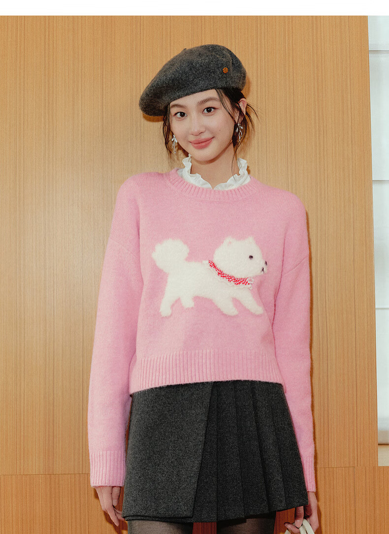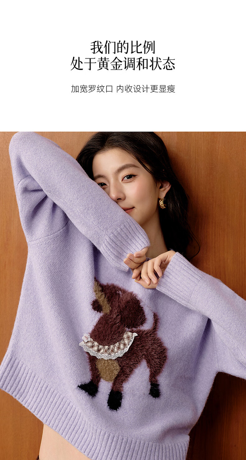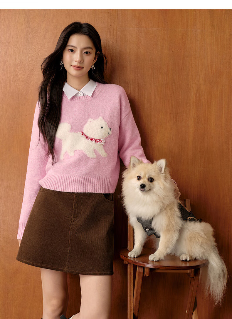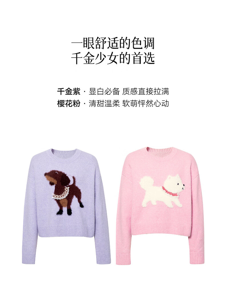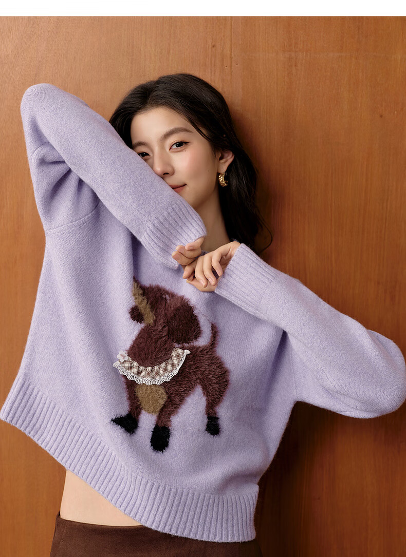 SEIFINI Big Pattern Cute Dog Sweater 2025 Winter New Cute Fashionable Western Style Soft Waxy Pullover for Women Light Purple Pre-sale November 10th S