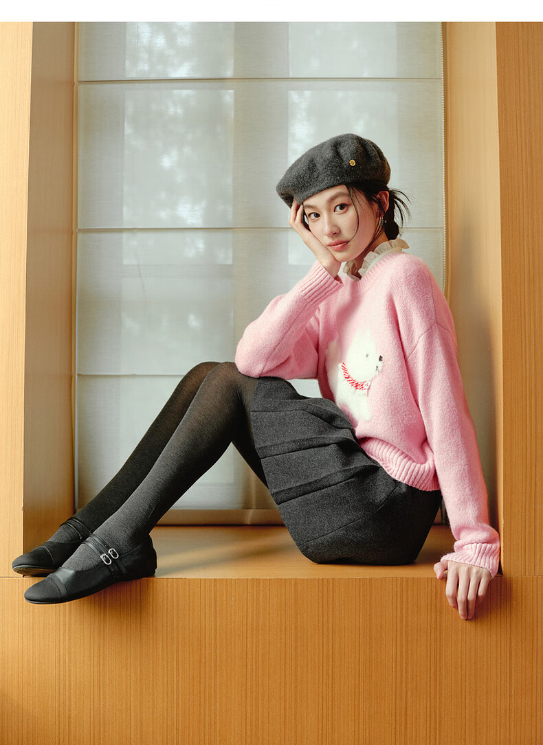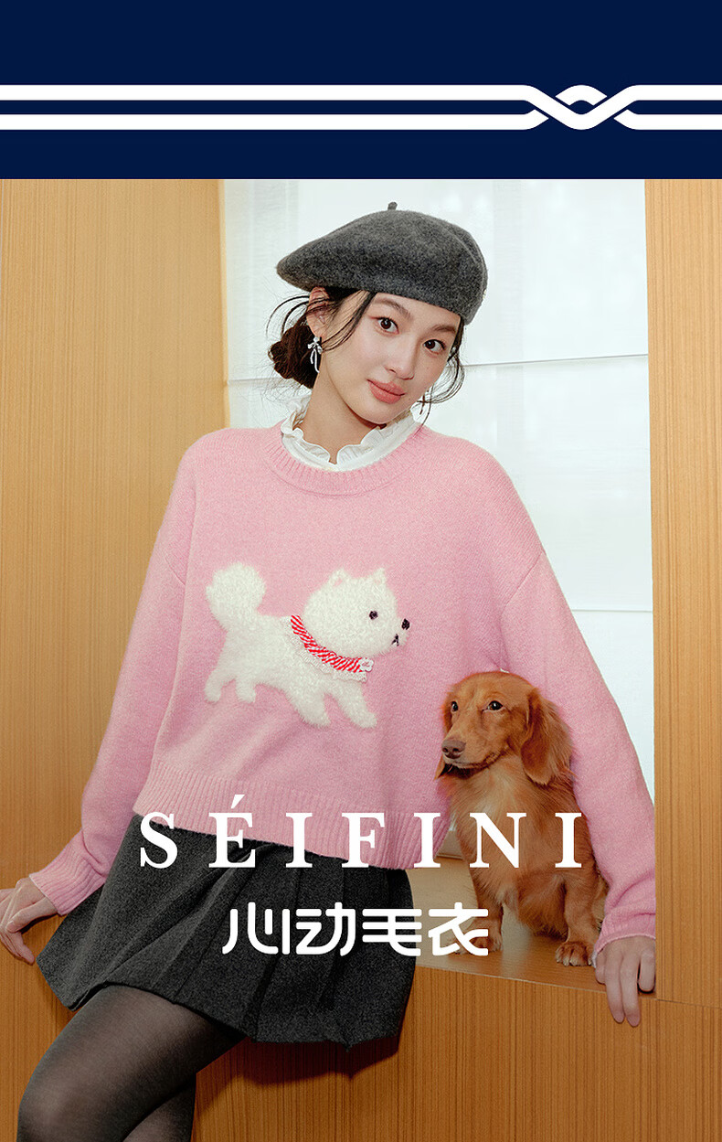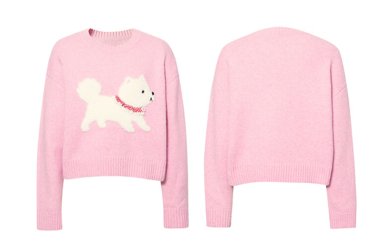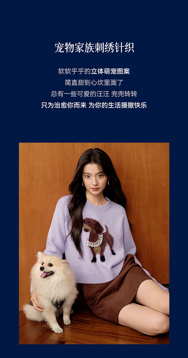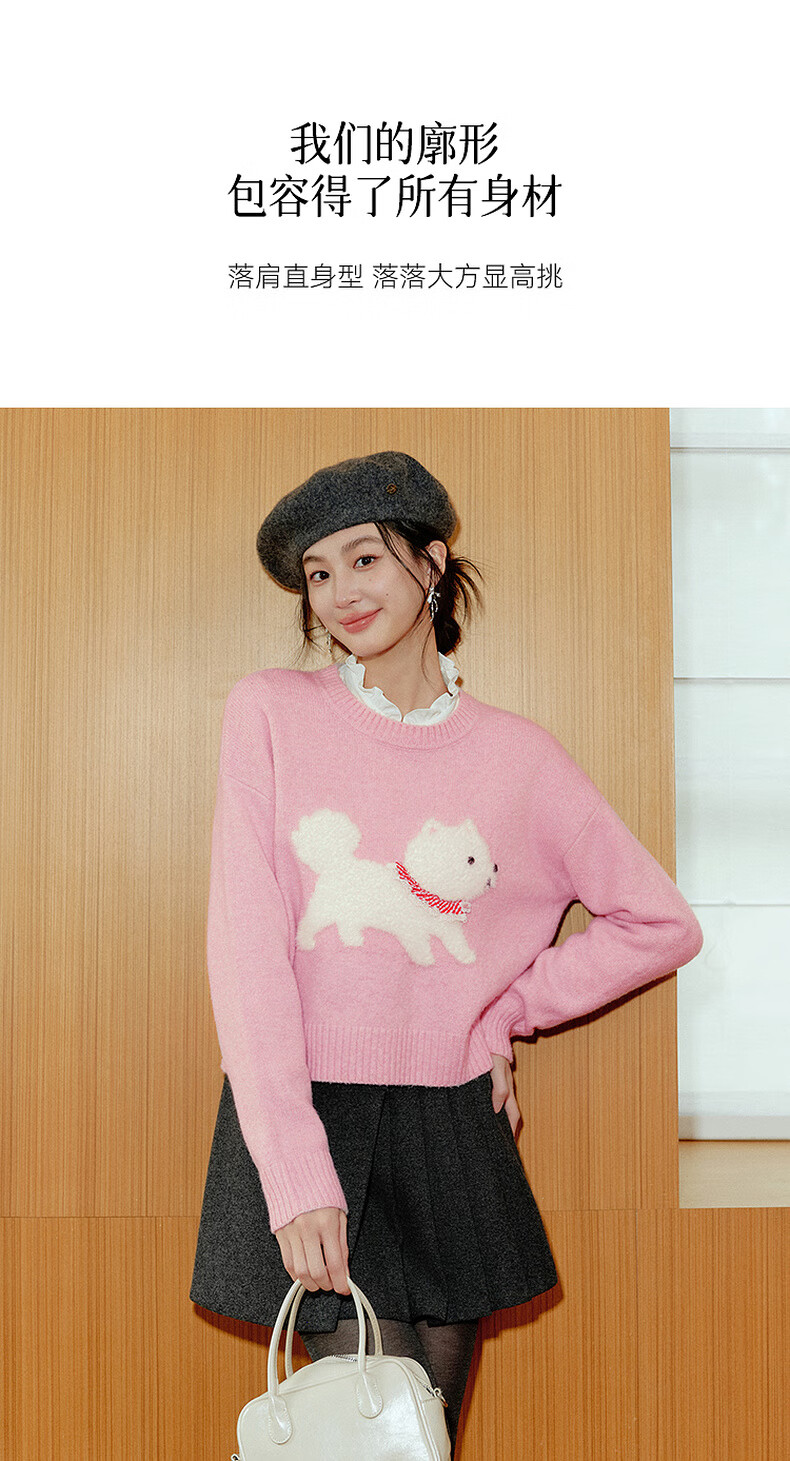 SEIFINI Big Pattern Cute Dog Sweater 2025 Winter New Cute Fashionable Western Style Soft Waxy Pullover for Women Light Purple Pre-sale November 10th S