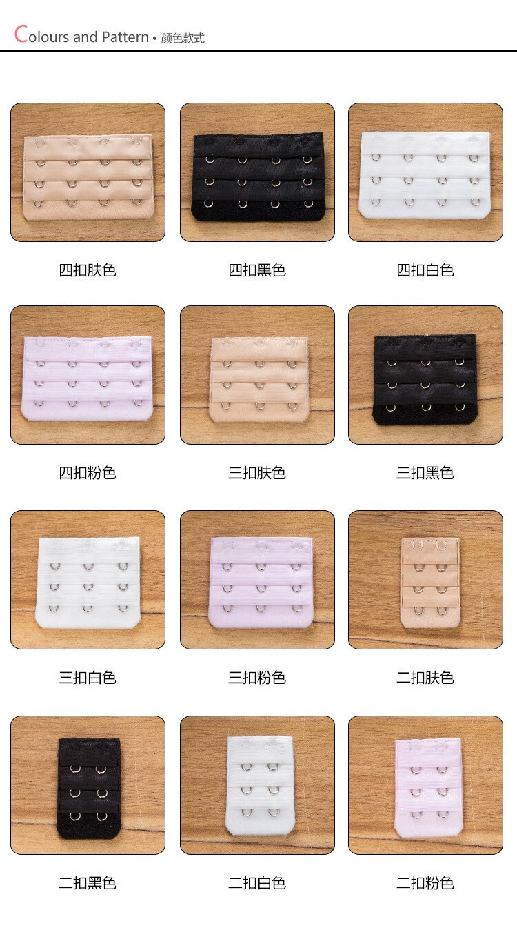Bra extension buckle, three rows of bra extension buckle, 2, 3, 4 rows of bra extension buckle, 2 rows of bra extension buckle, 2 rows of 2/3/4 row buttons (1 piece each for skin/white/black), 9 pieces in total