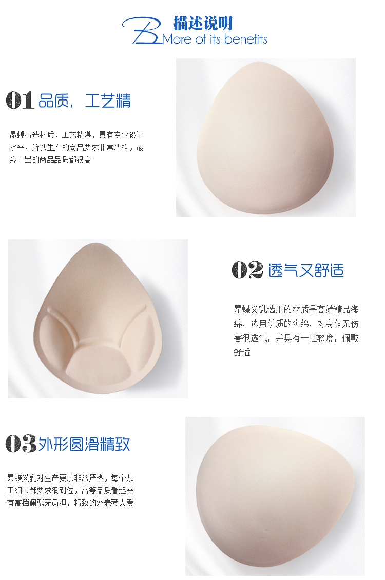 昂蝶 义乳海绵垫模杯文胸调节内衣加长扣三排扣 海绵垫L码/对