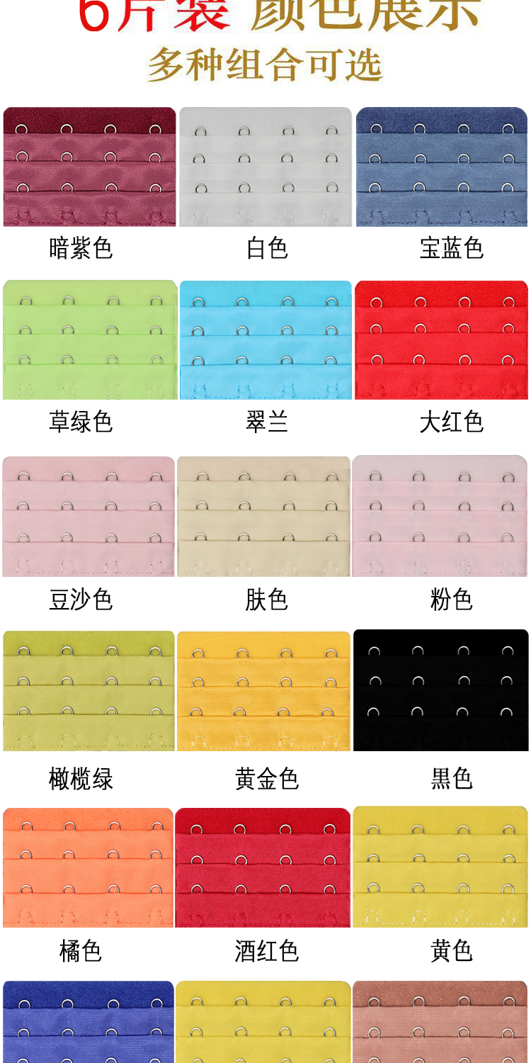 Tsing Yi Ma Xiang, three rows, four buttons, 3 rows, 4 buttons, underwear hook, adjustable back buckle, bra buckle, extension buckle, bra connection extension buckle, regular three rows, four buttons, 6 pieces, color optional, remarks