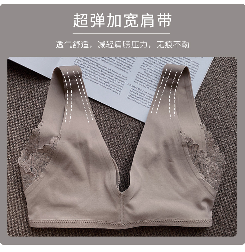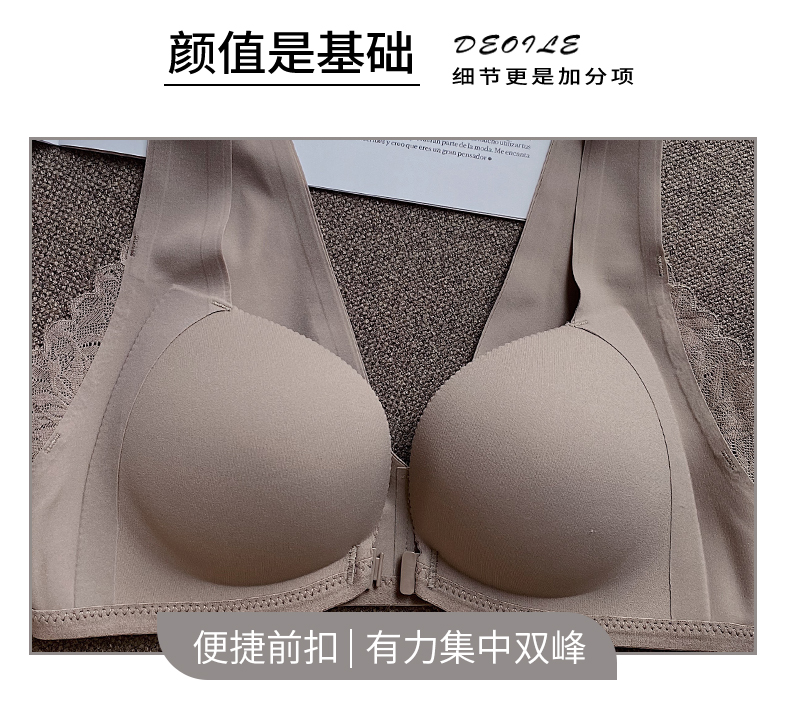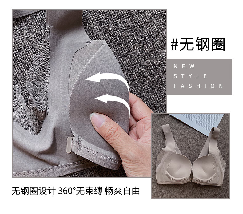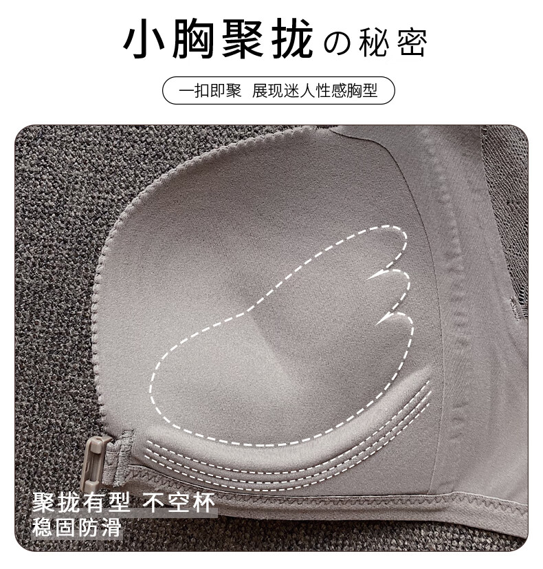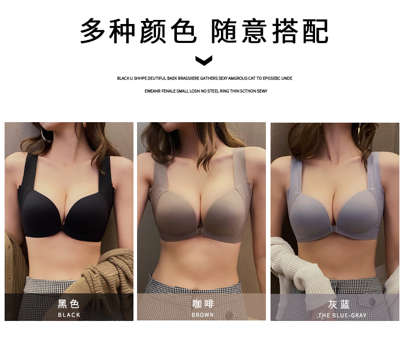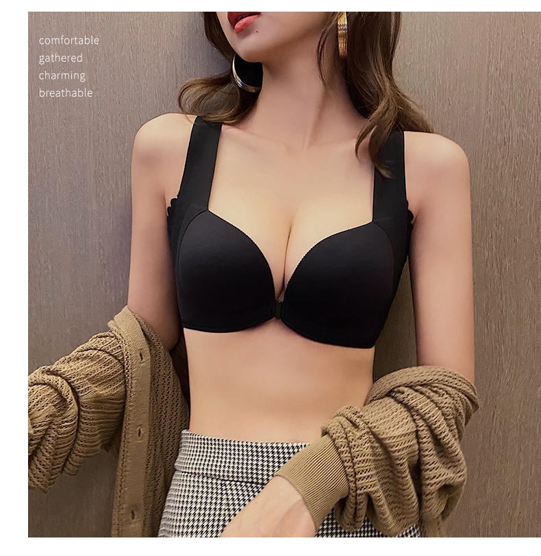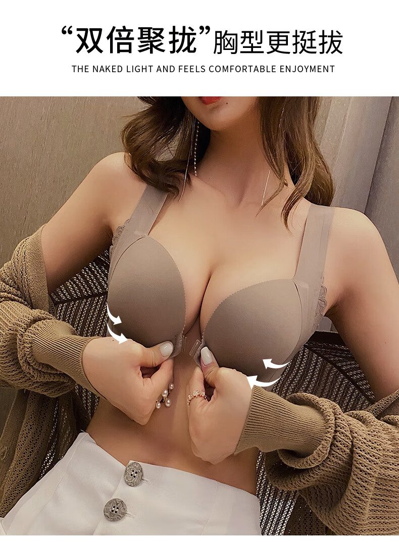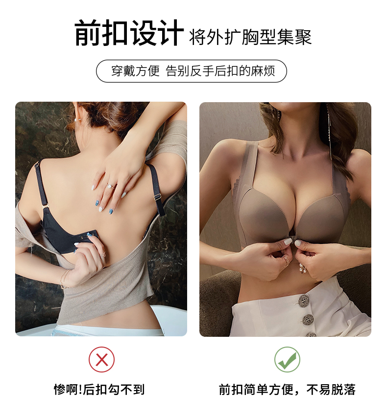 KJ Brand Front Button Bra Underwear Women's Small Breast Gathering No Wires Adjustable Secondary Breast Holding Seamless Bra Set Color Single Bra L 36/80AB Through Cup