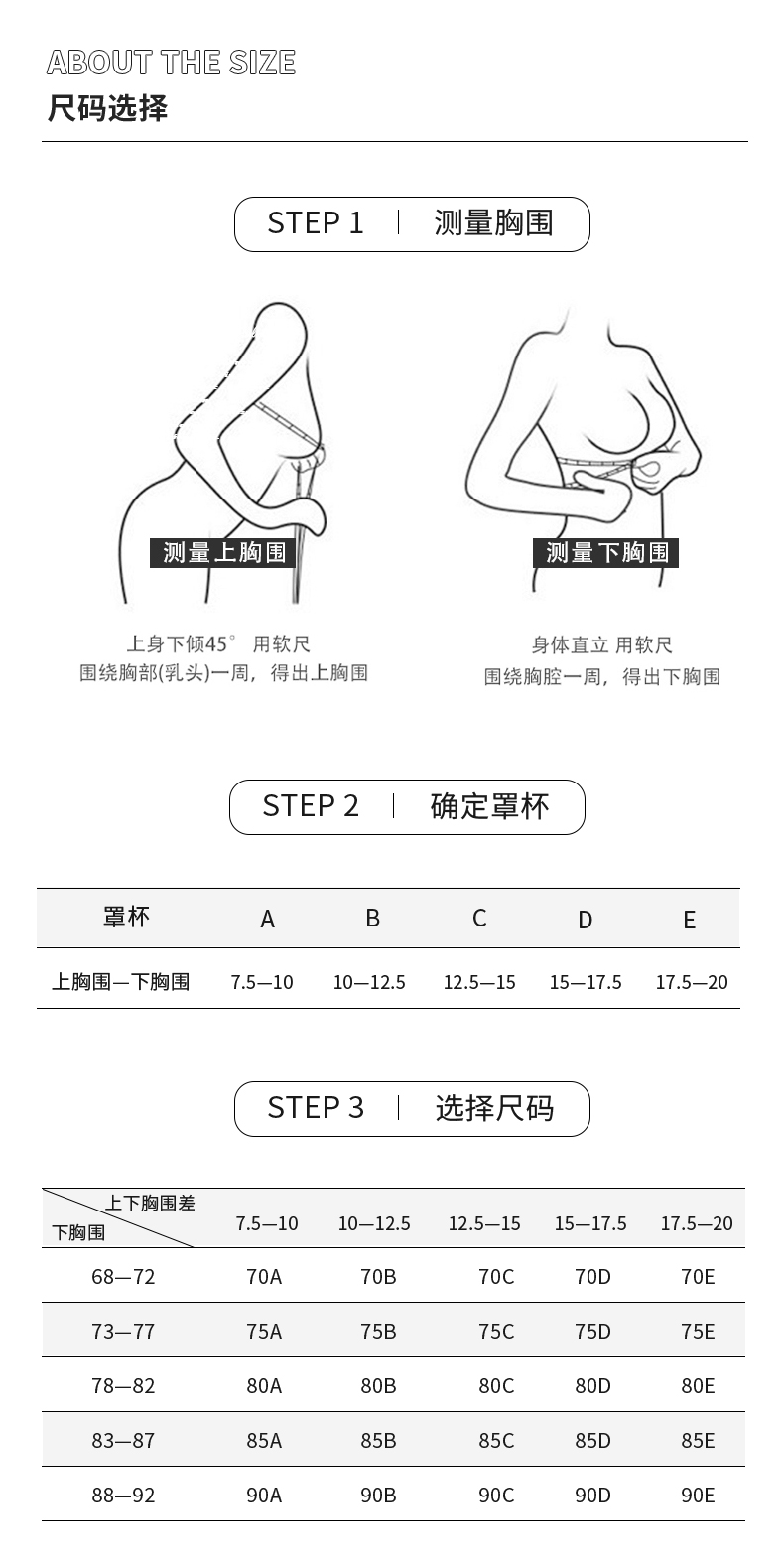 China (cm) 160-165/84-86 165-170 / 88-90 167-172 / 92-96 168-173 / 98-102 170-176 / 106-110