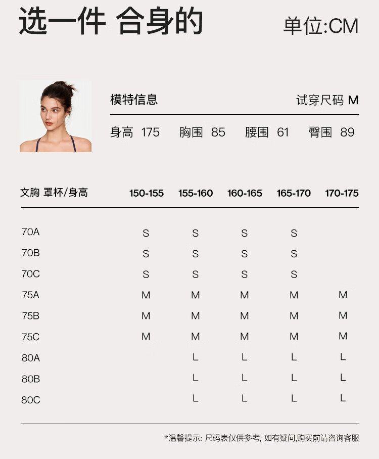 China (cm) 160-165/84-86 165-170 / 88-90 167-172 / 92-96 168-173 / 98-102 170-176 / 106-110