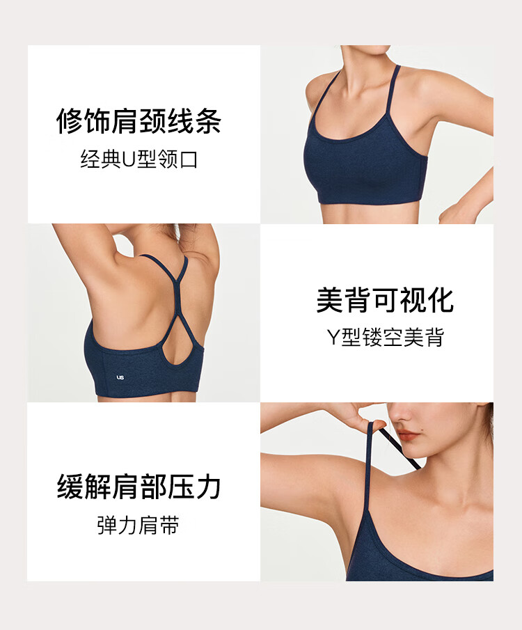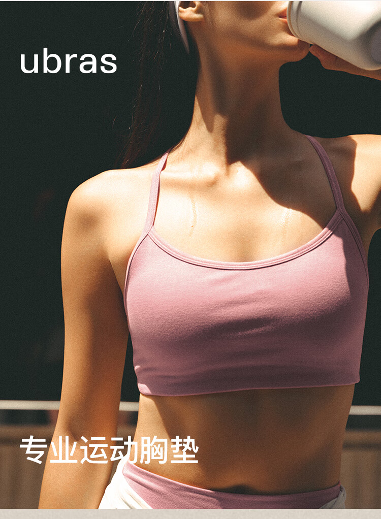 Ubras urban light outdoor small mousse spaghetti straps I-shaped beautiful back sports vest bra women's underwear yoga pants bra-white M bra suitable for 75A-75C