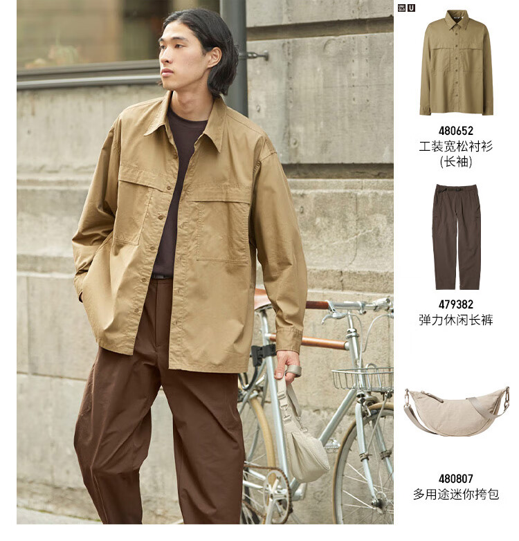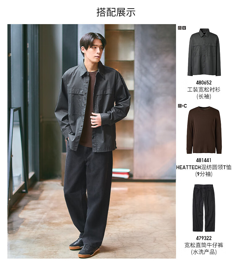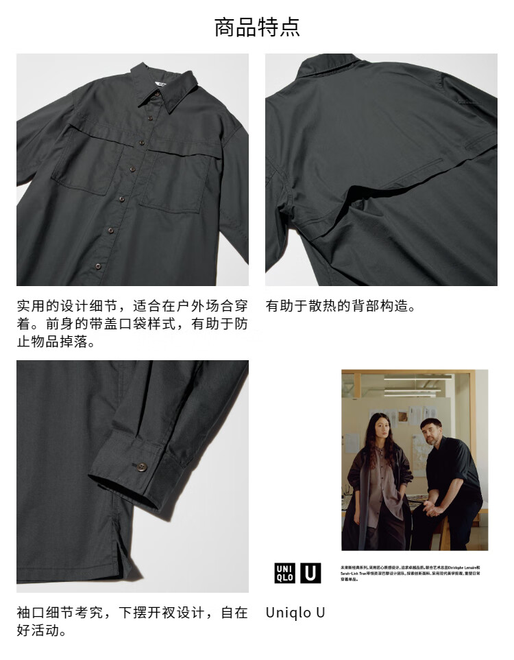 UNIQLO cooperation men's and women's workwear loose shirt long-sleeved casual shirt 480652 08 dark gray M /170/92A