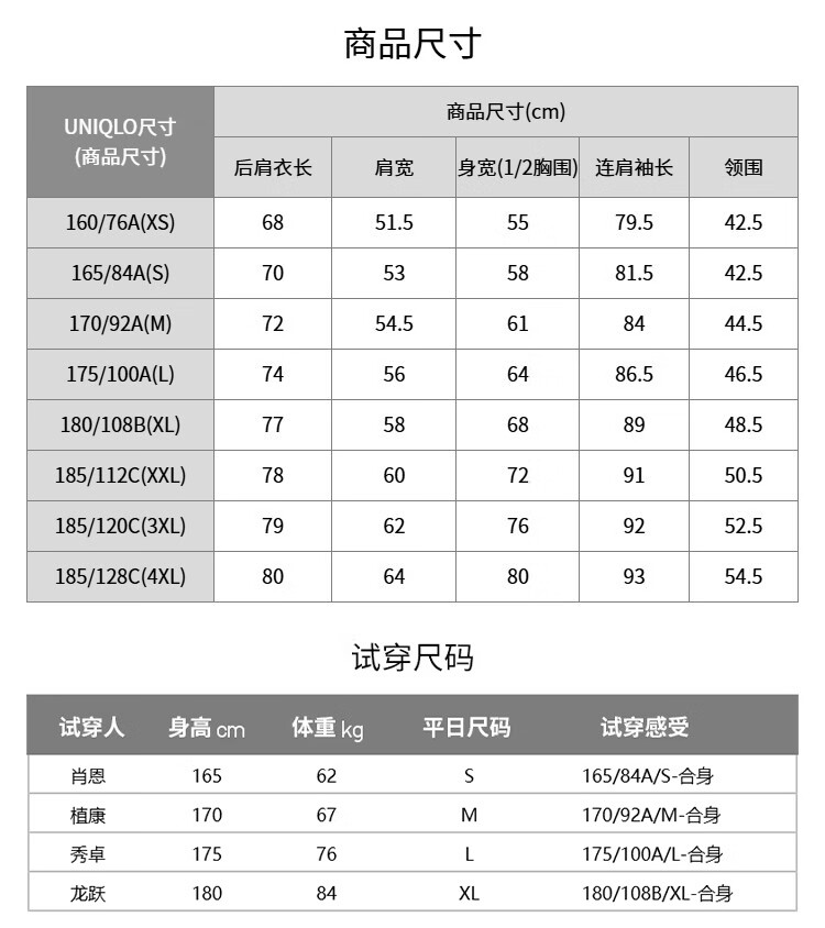 China (cm) 160-165/84-86 165-170 / 88-90 167-172 / 92-96 168-173 / 98-102 170-176 / 106-110