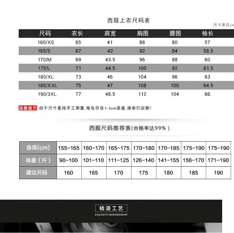 China (cm) 165 / 88-90 170 / 96-98 175 / 108-110 180 / 118-122 185 / 126-130