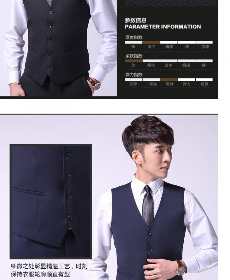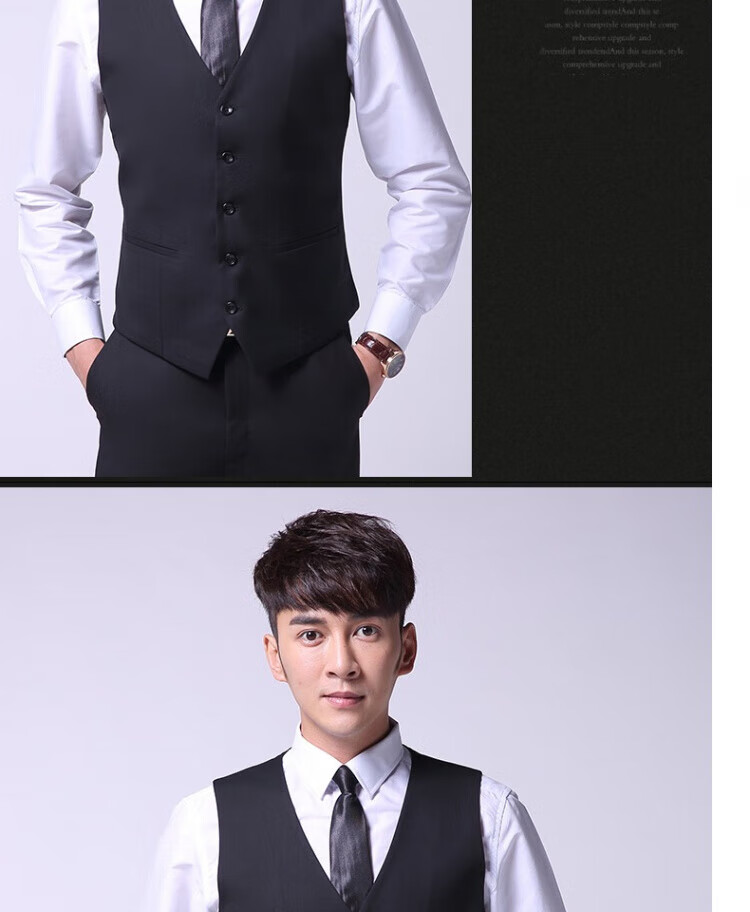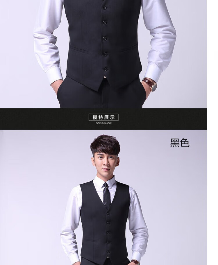ROMON Spring and Autumn Best Man and Groom Brotherhood Slim Casual Professional Suit Vest White Shirt Men's Wedding Suit Black Vest Free Bow Tie @ S 90-100Jin Jin is equal to 0.5 kg