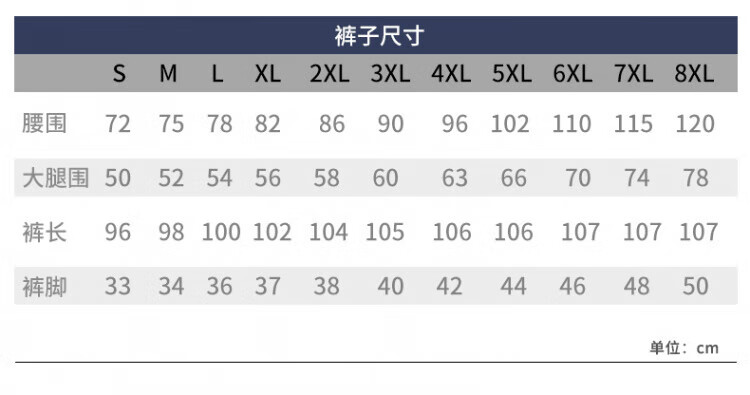 Outseam (cm) 99 cm 101.5 cm 104 cm 106.5 cm 109 cm