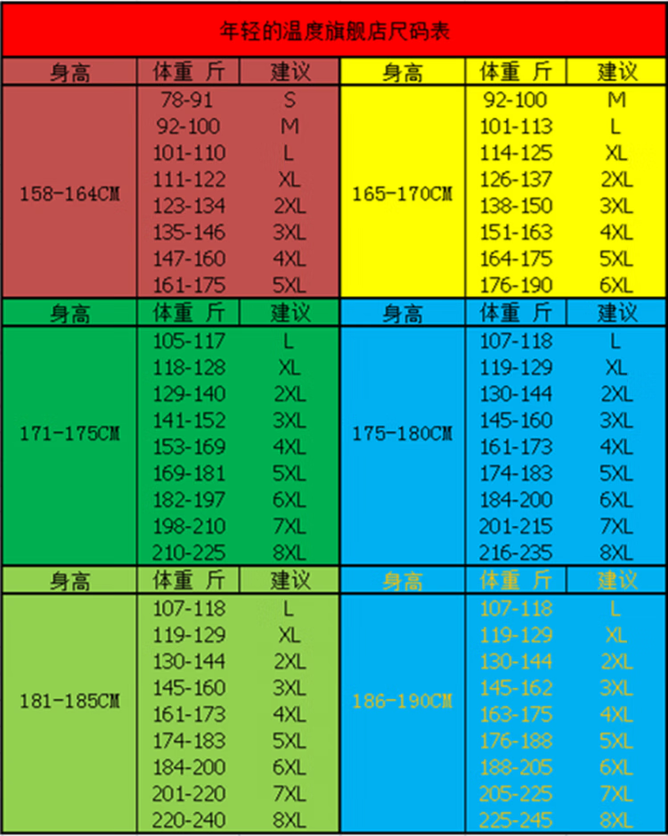 China (cm) 165 / 88-90 170 / 96-98 175 / 108-110 180 / 118-122 185 / 126-130