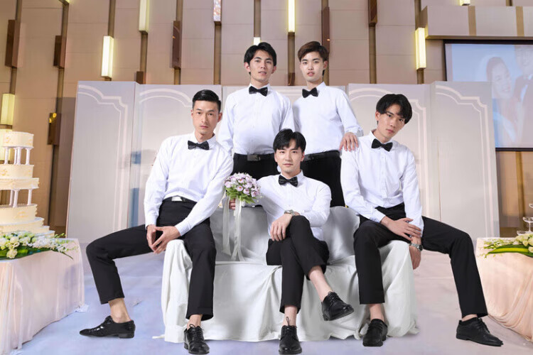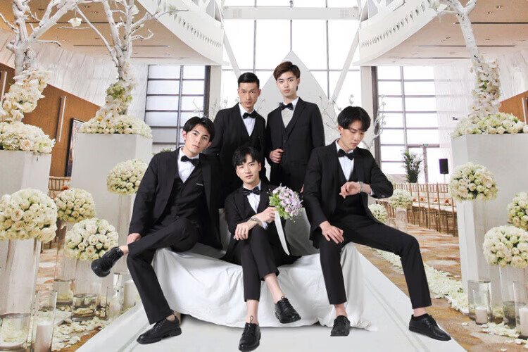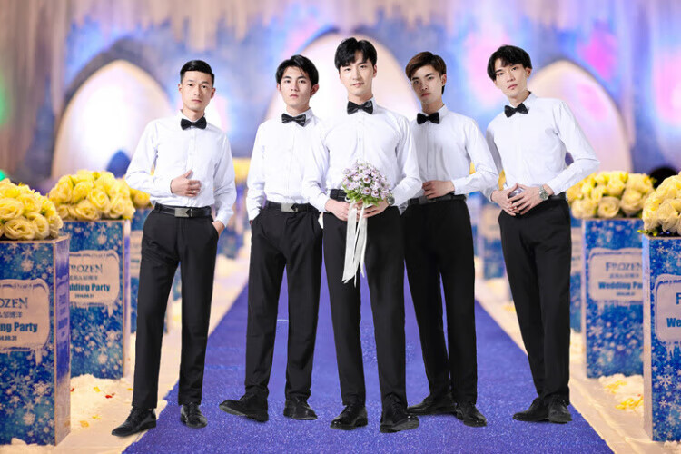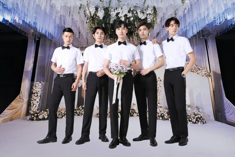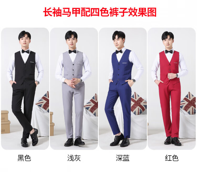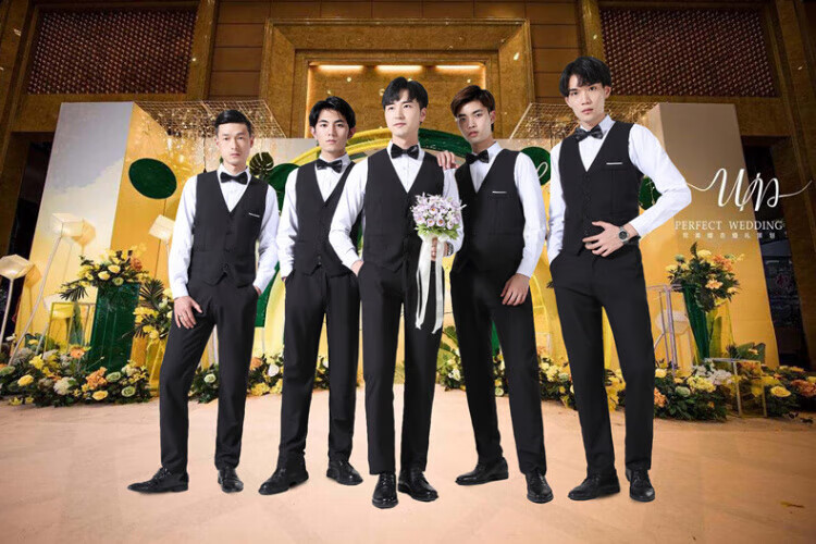 ROMON Groomsmen Clothing Brotherhood Clothes Men's Suit Vest Shirt Three-piece Large Size Wedding Spring Suit Black Vest + Pants + Long Sleeve White Shirt Free Bow Tie XL