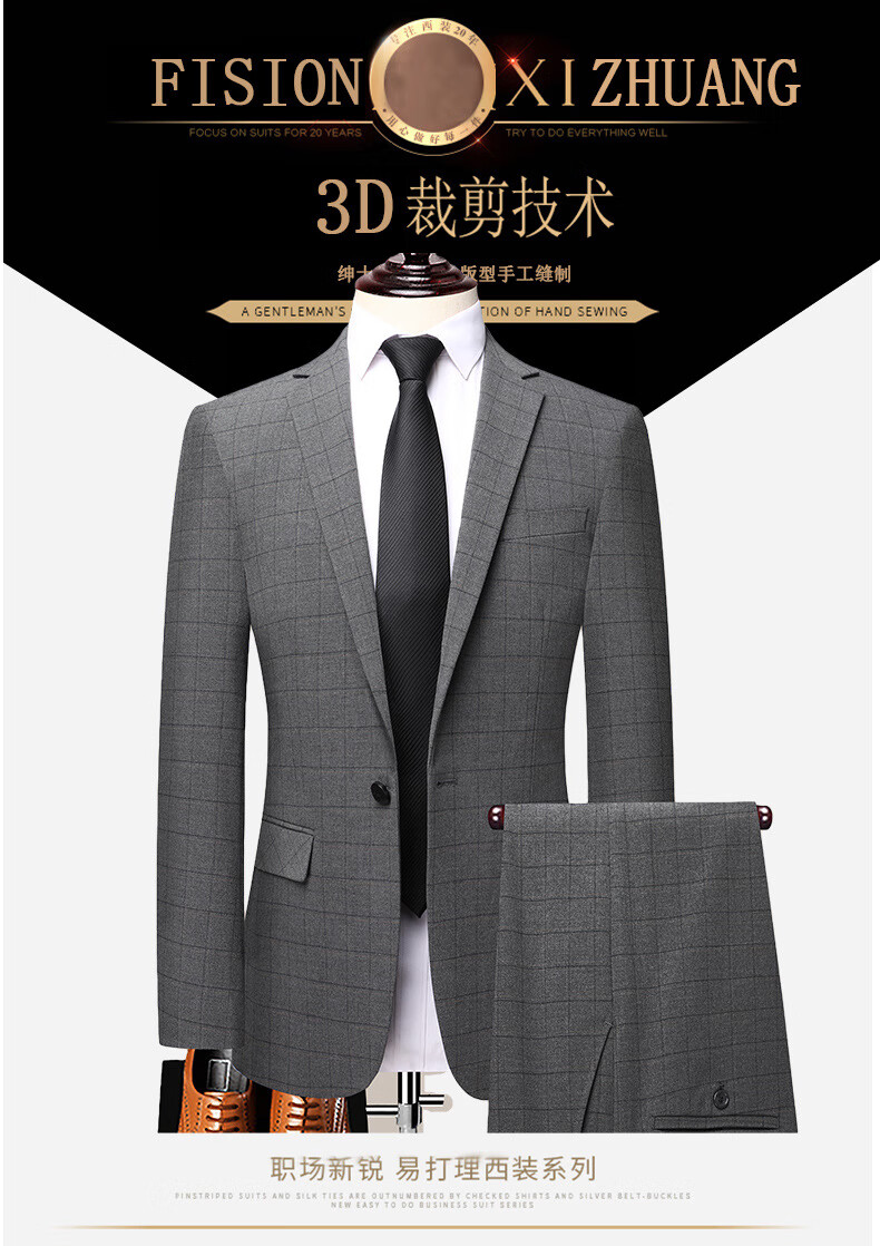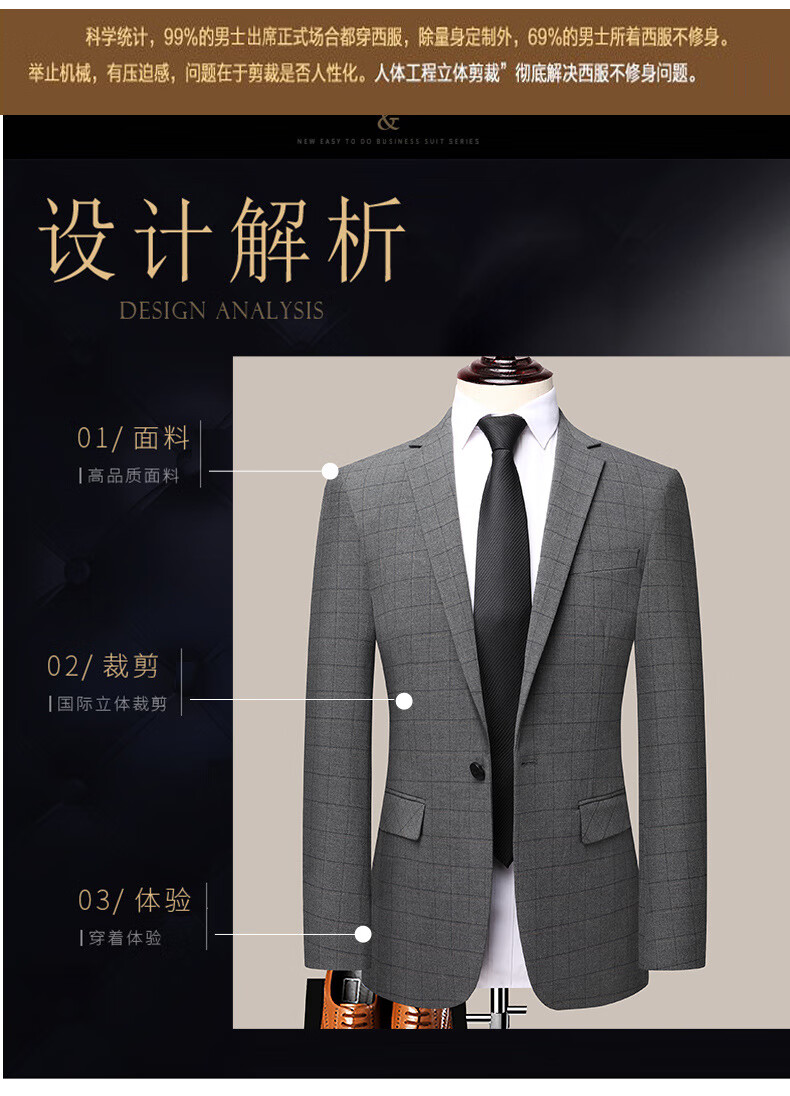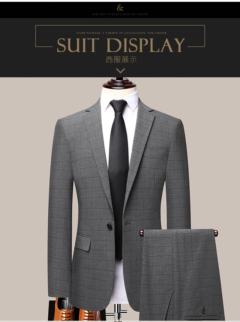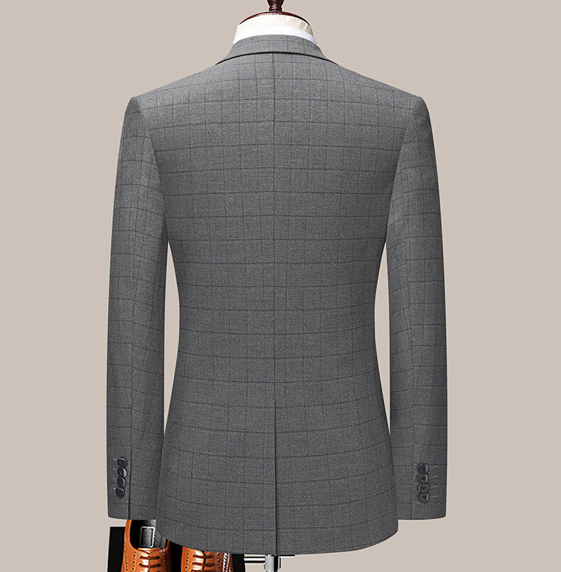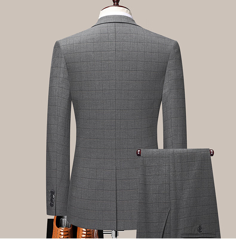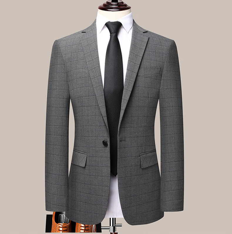 Dances with Wolves (DANCING WOLVES) 2024 Autumn Men's Suit Suit Spring and Autumn New Groom Wedding Dress Business Plaid Suit Collar Formal Goode B-516 Light Gray M