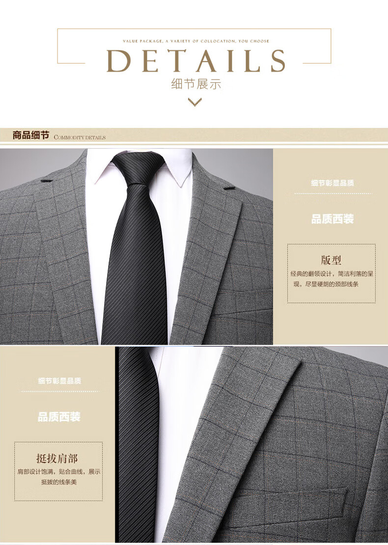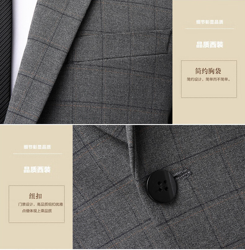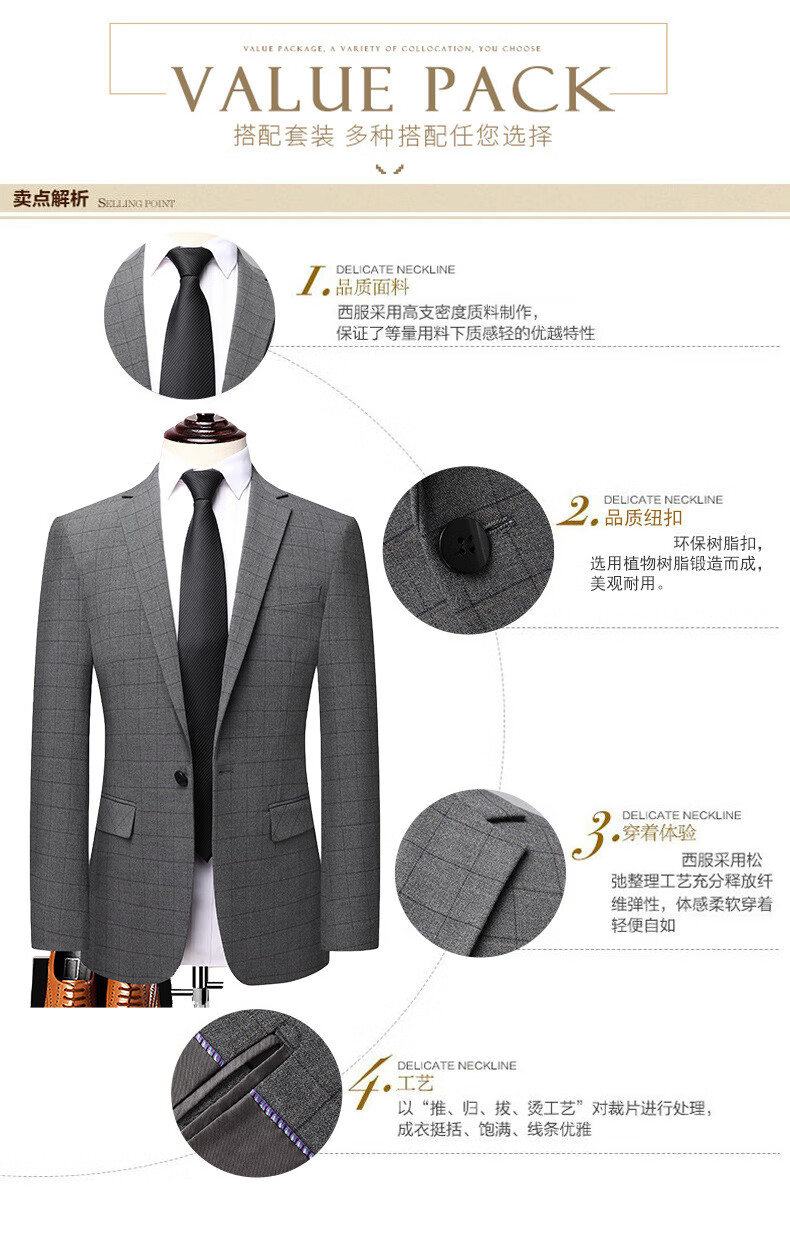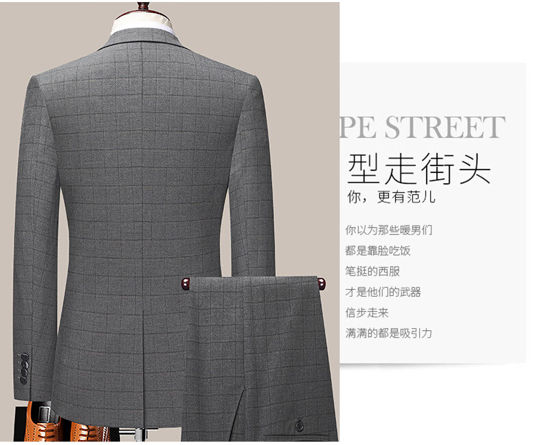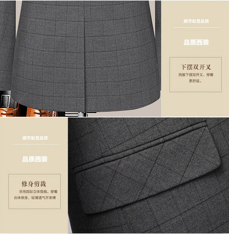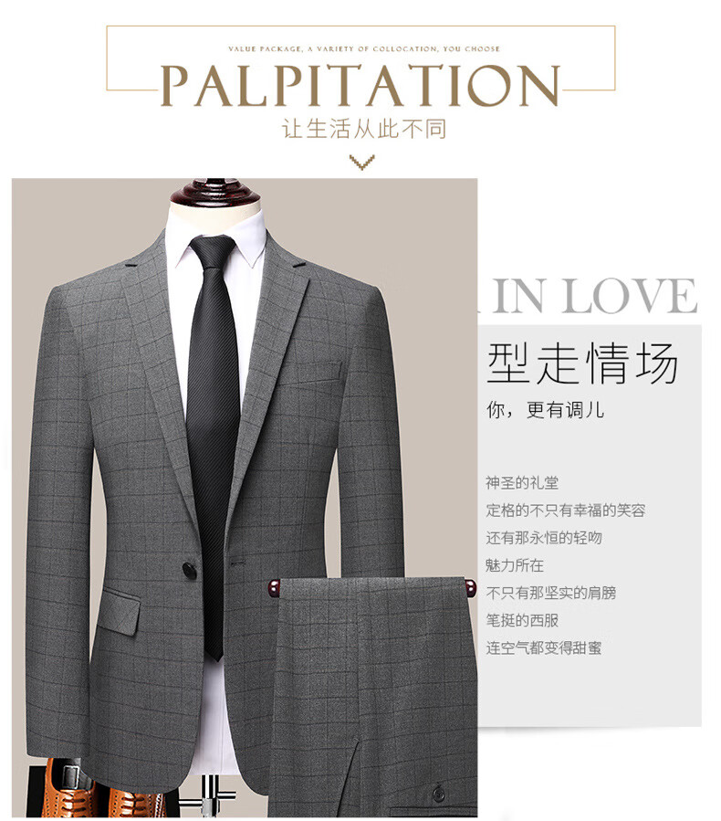 Dances with Wolves (DANCING WOLVES) 2024 Autumn Men's Suit Suit Spring and Autumn New Groom Wedding Dress Business Plaid Suit Collar Formal Goode B-516 Light Gray M