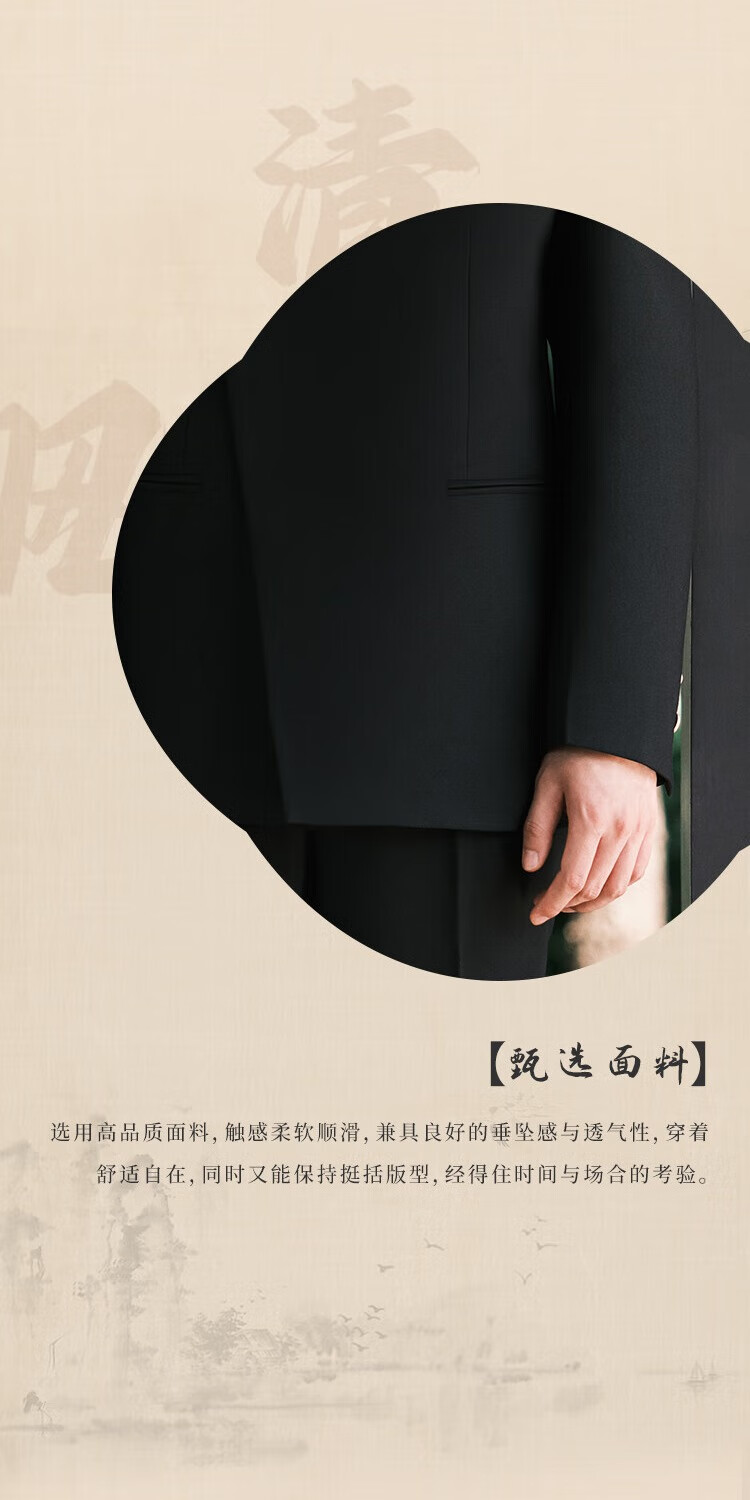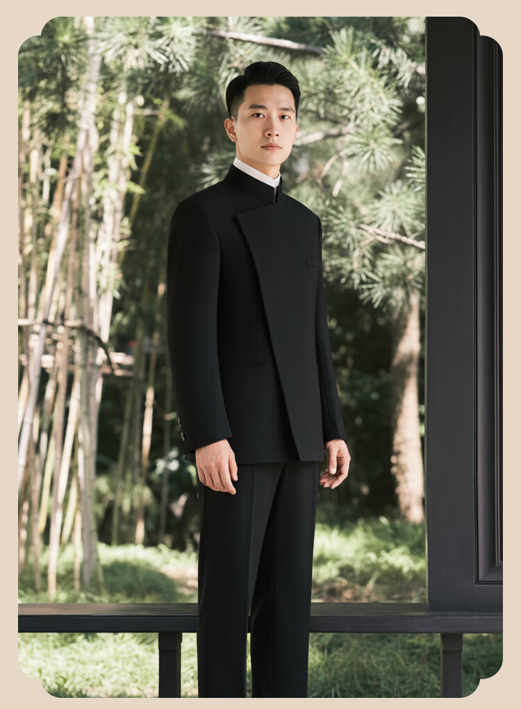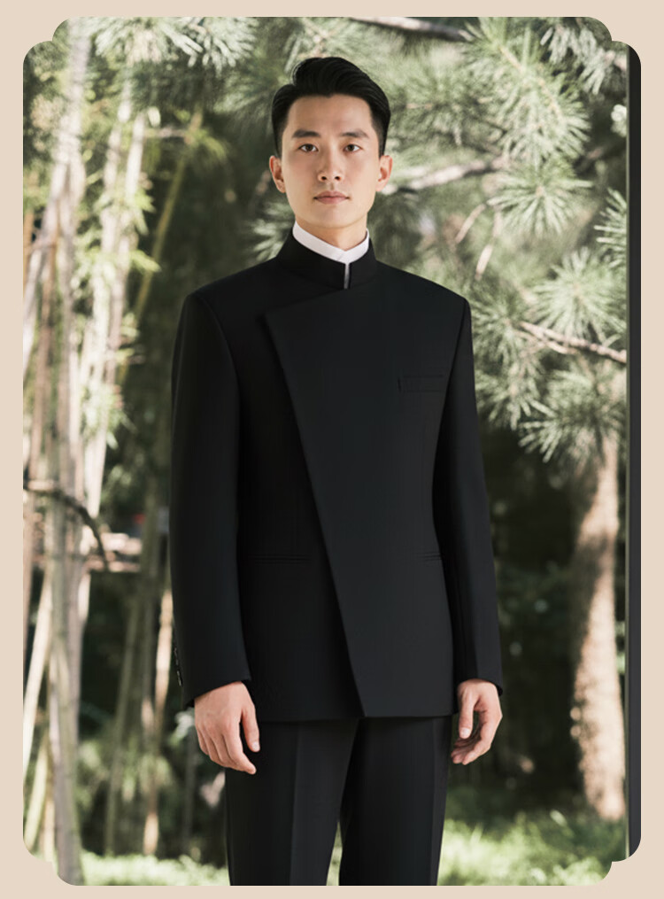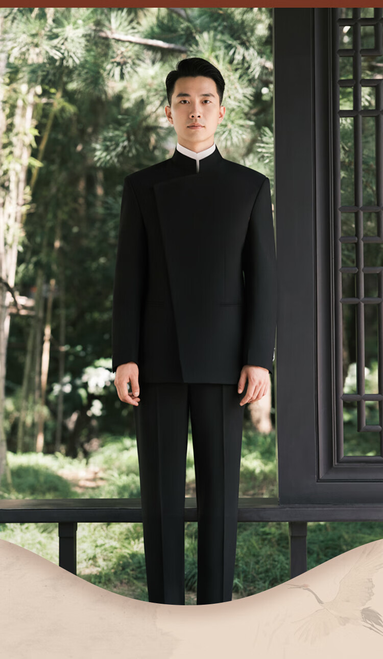 BUSYCON Xuanhei Elegant New Chinese Style Stand Collar Suit Groom Wedding Chinese Style Men's Toast Suit Black (Two-piece Set Top + Pants) 50 Please note your height and weight when placing an order