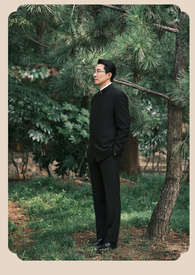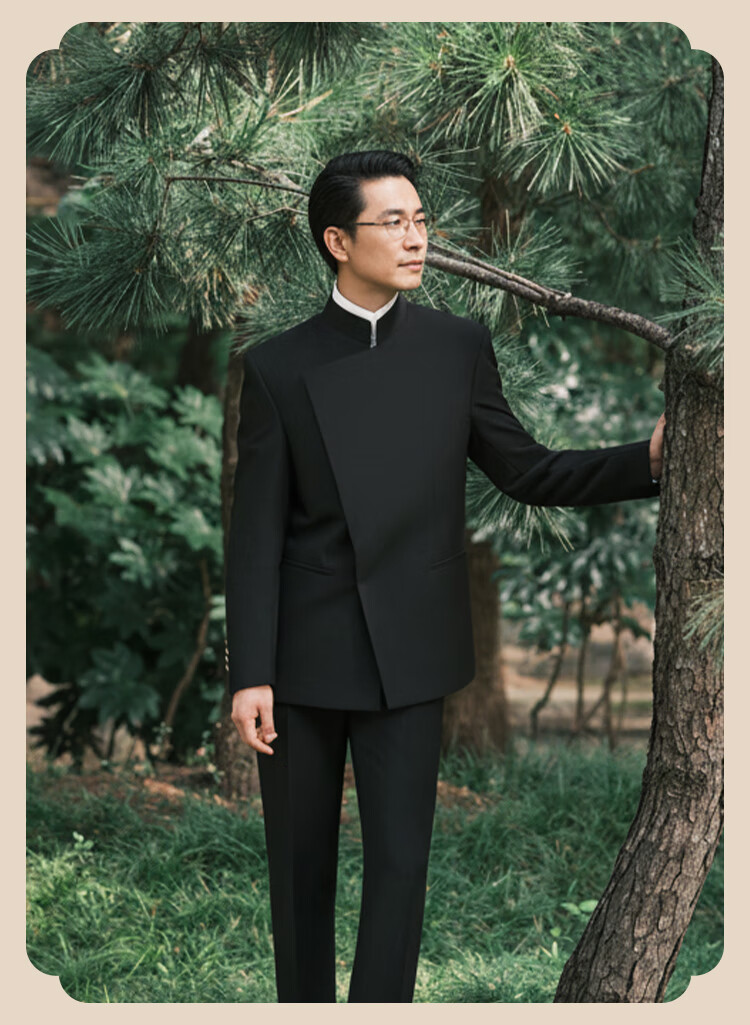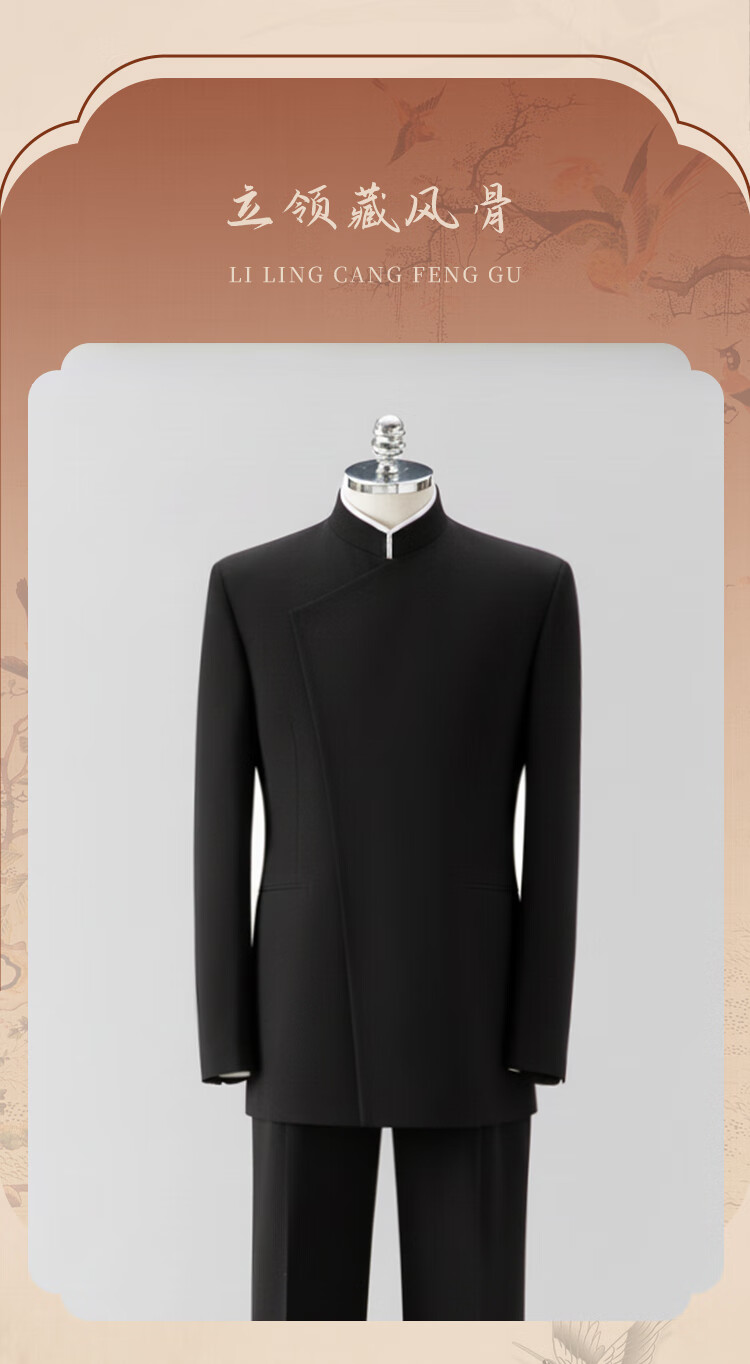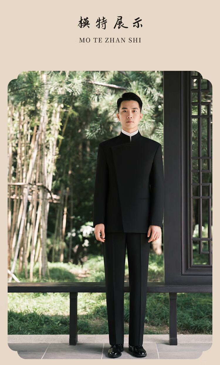 BUSYCON Xuanhei Elegant New Chinese Style Stand Collar Suit Groom Wedding Chinese Style Men's Toast Suit Black (Two-piece Set Top + Pants) 50 Please note your height and weight when placing an order