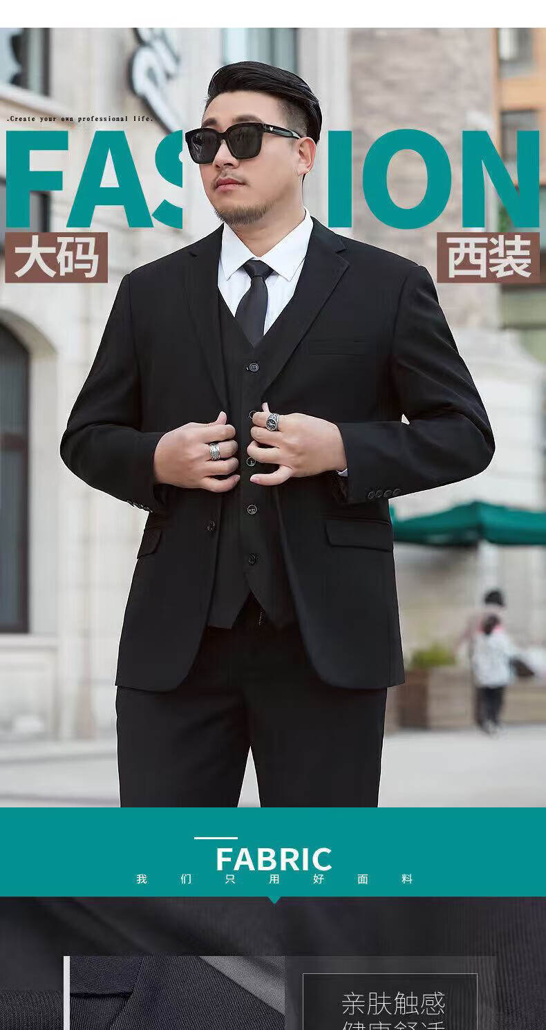 Luo Meng plus size suit men's suit plus fat plus fat business formal suit jacket wedding black loose spring and autumn new style two-button pure black single suit jacket + tie no trousers four seasons 4XL /190 recommended 165-185Jin Jin is equal to 0.5 kg