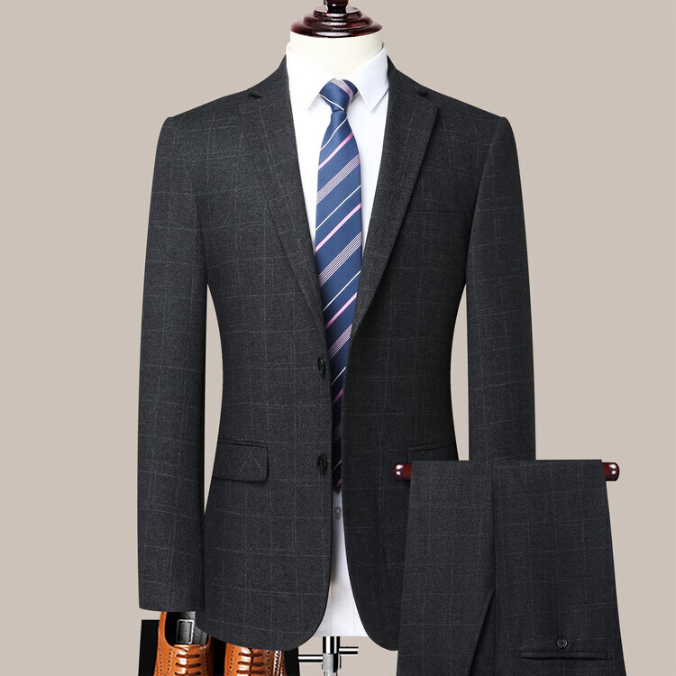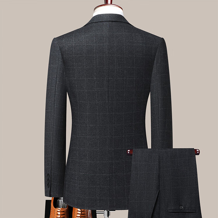 Red bean wool suit suit men's business formal professional jacket men's groom's wedding iron-free suit full set men's black M 170