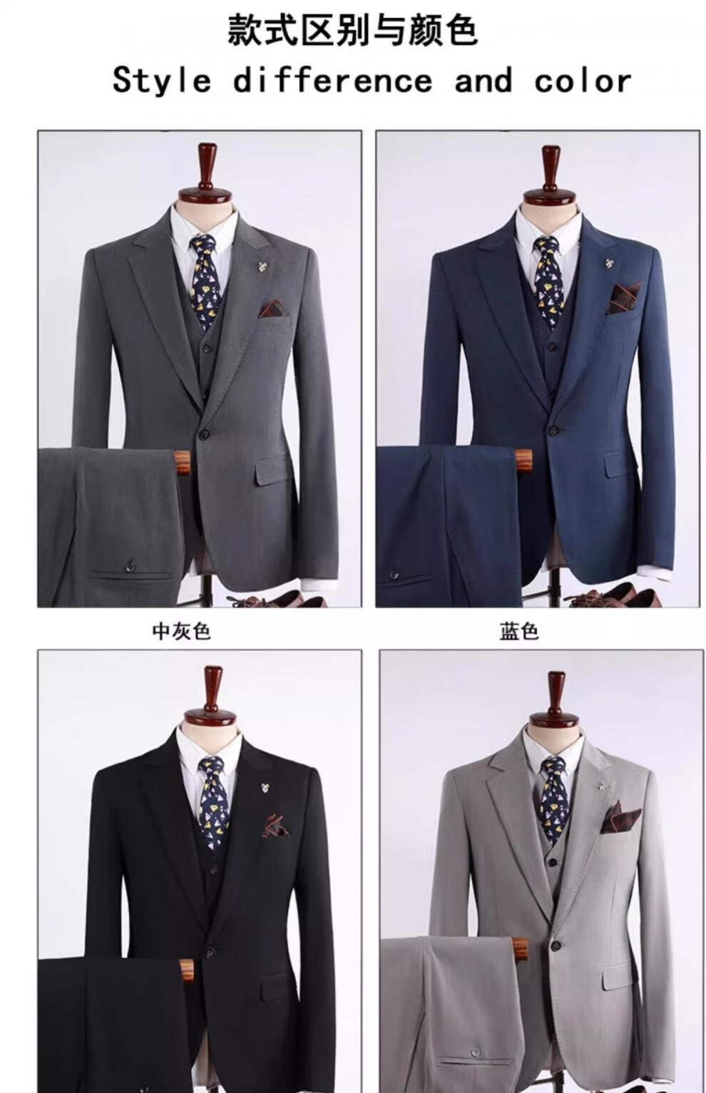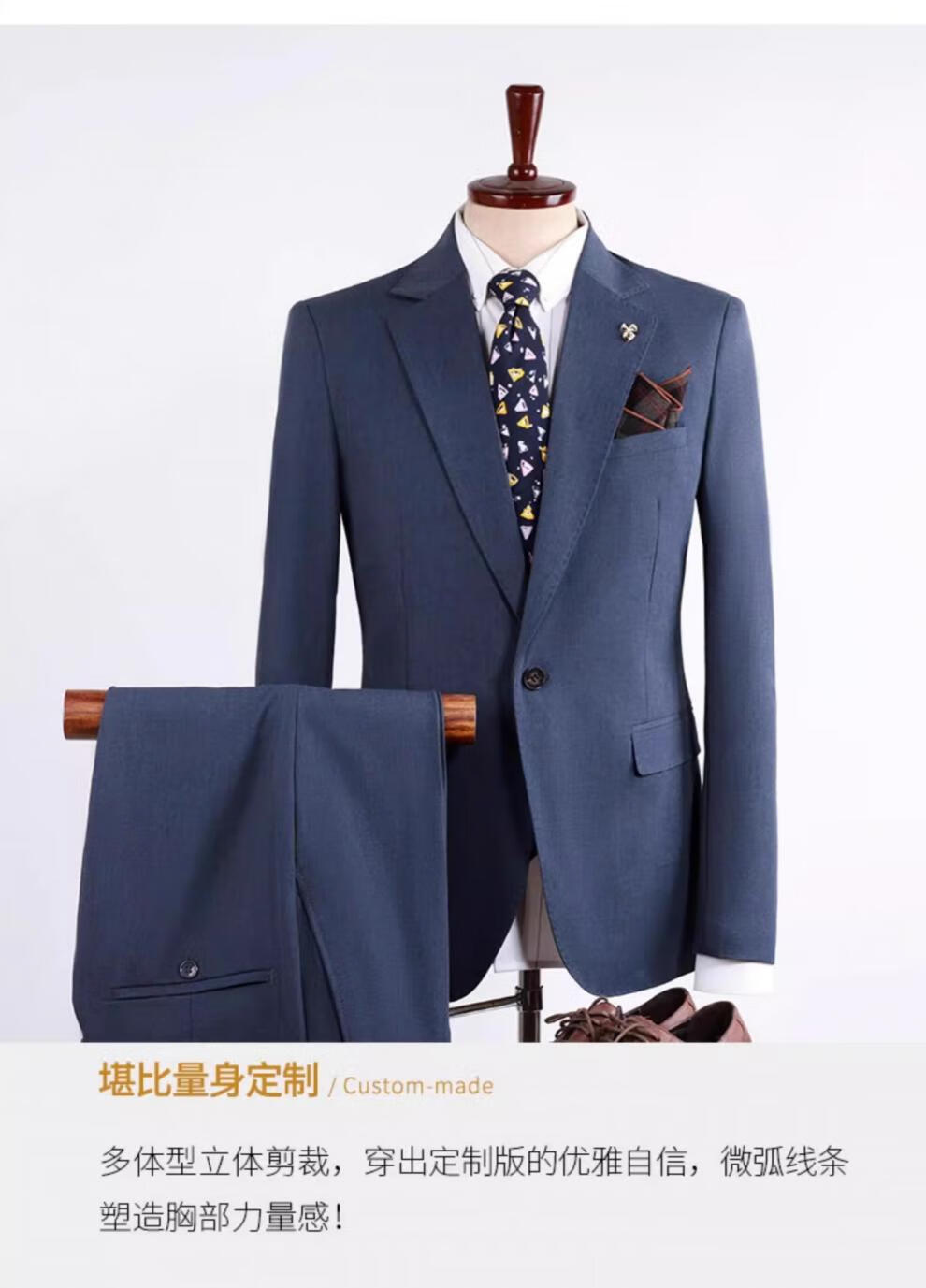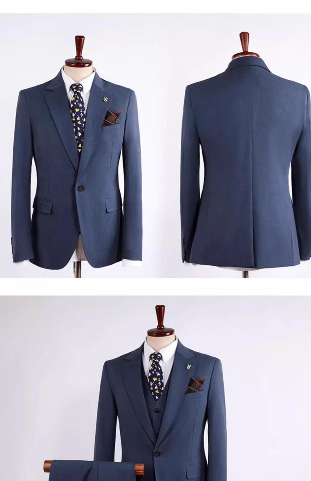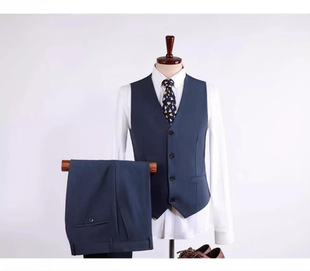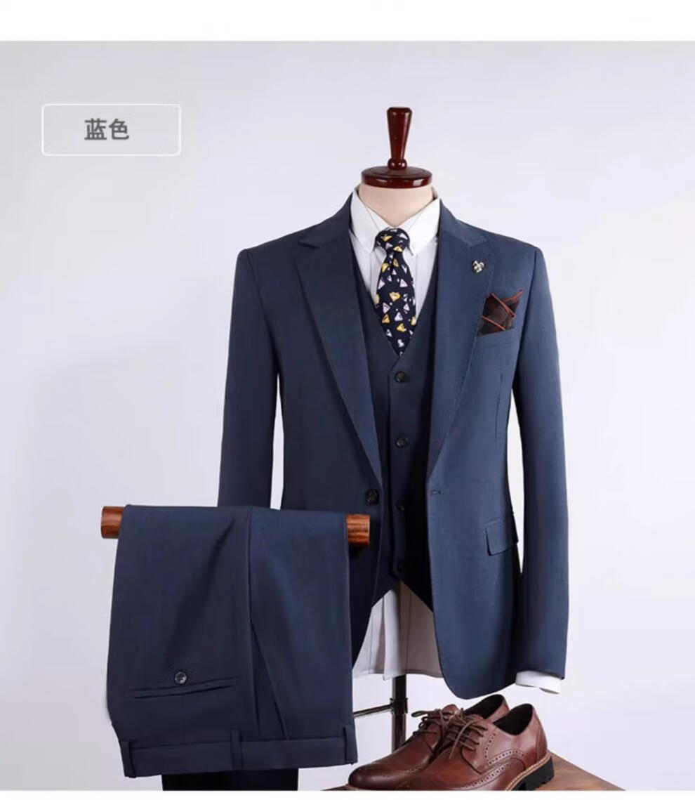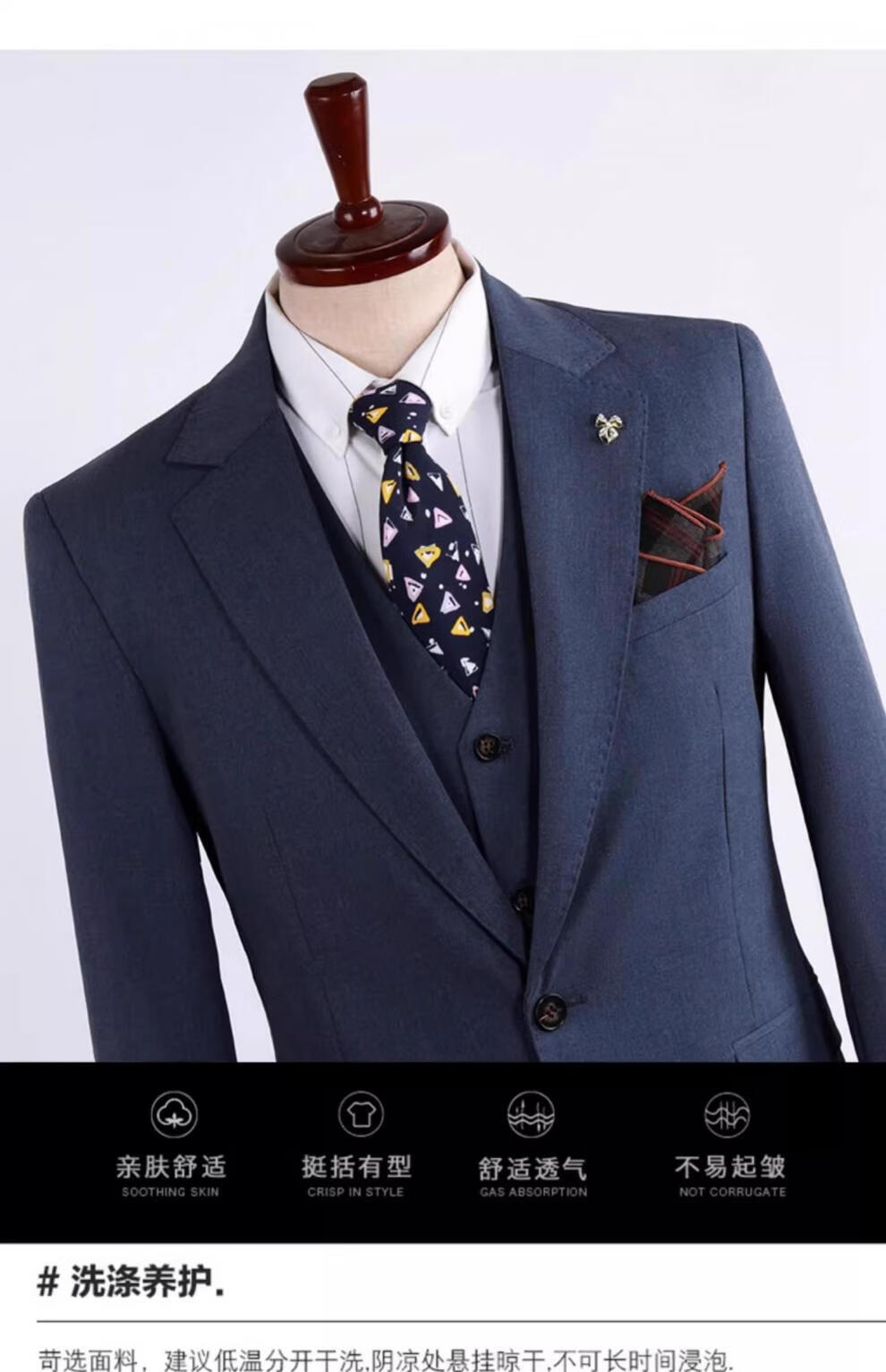 GOLDLION G+ Men's Suit Suit Business Formal Wedding Groom's Dress High-End Casual Suit Jacket Men's Blue Suit+Vest+Pants S