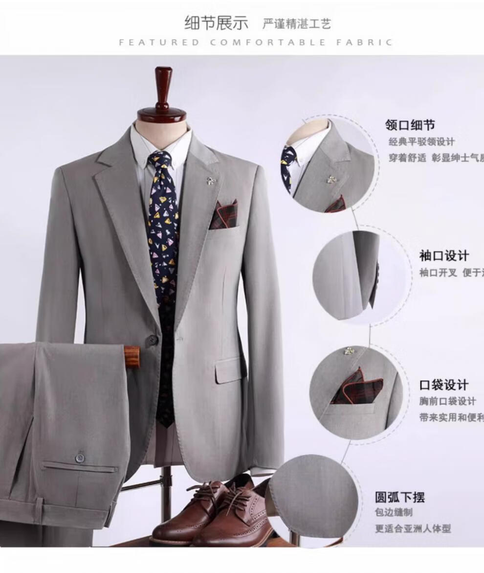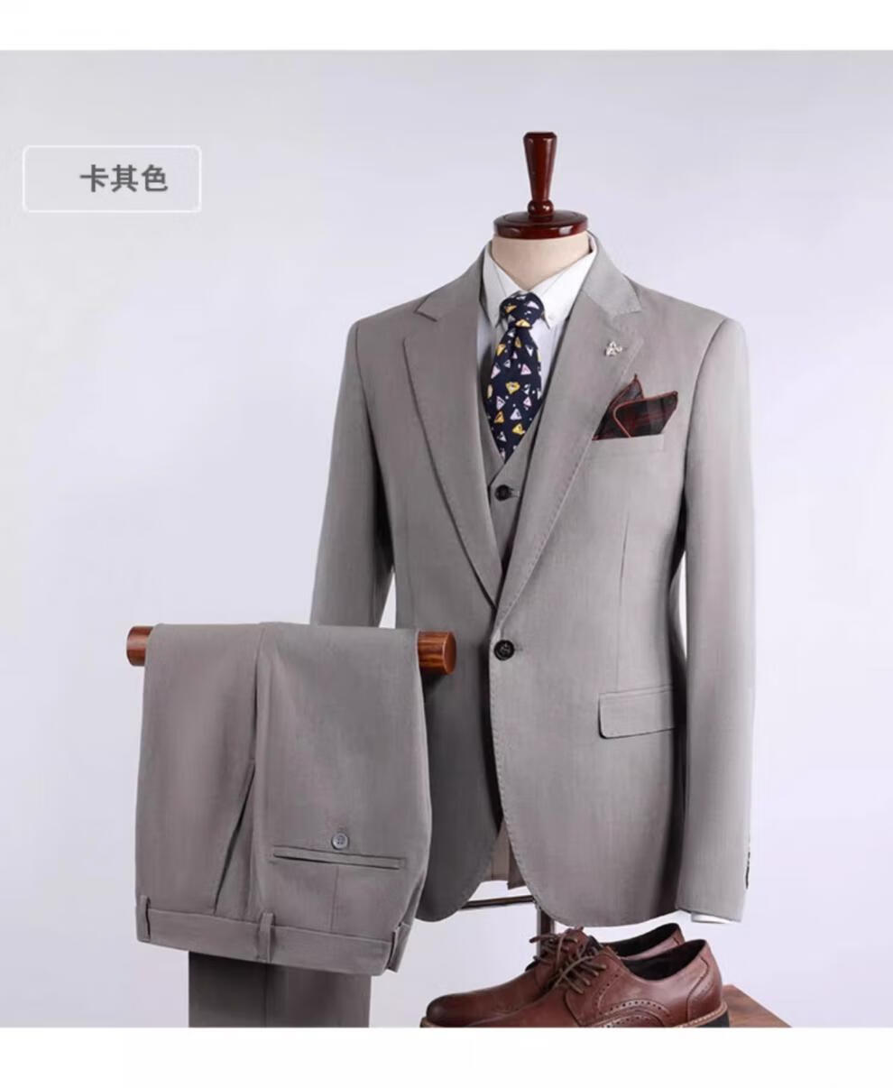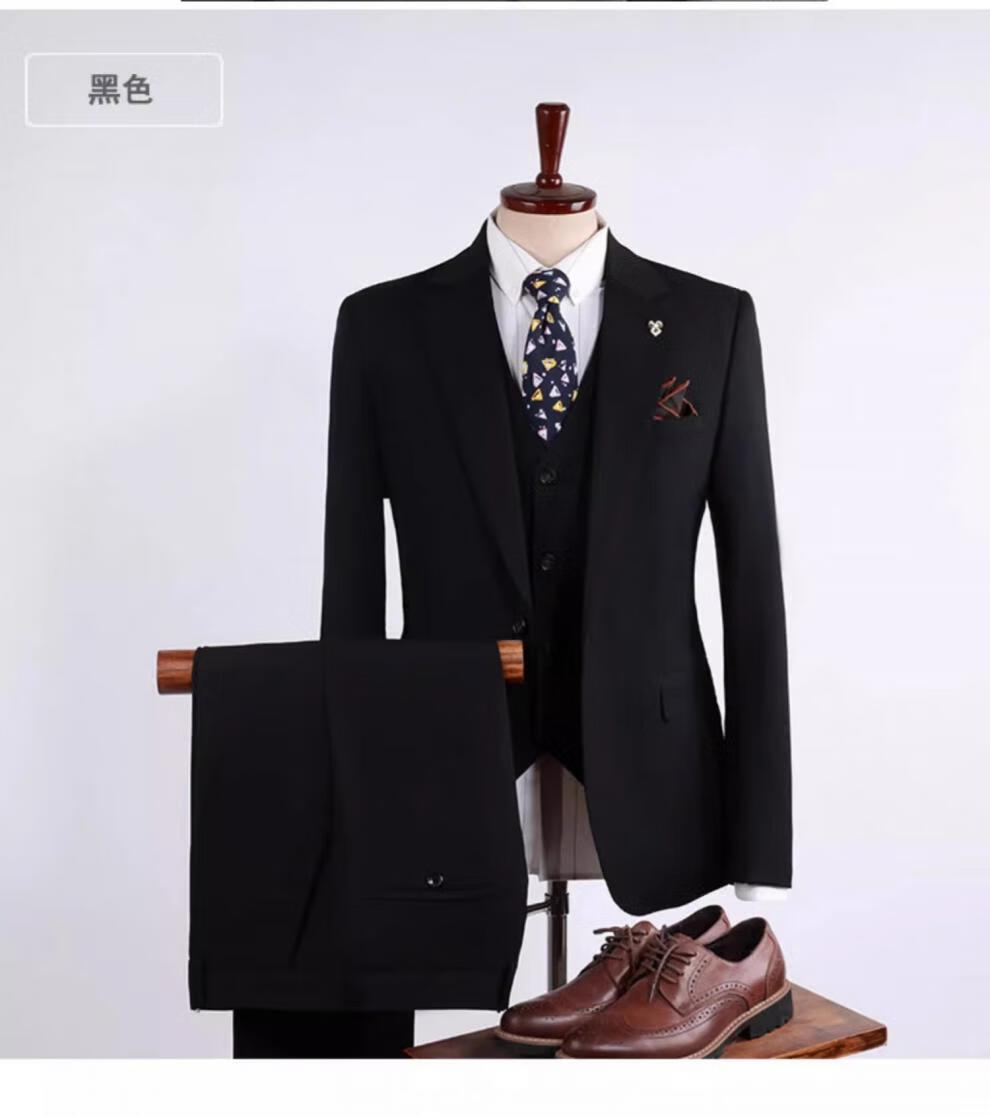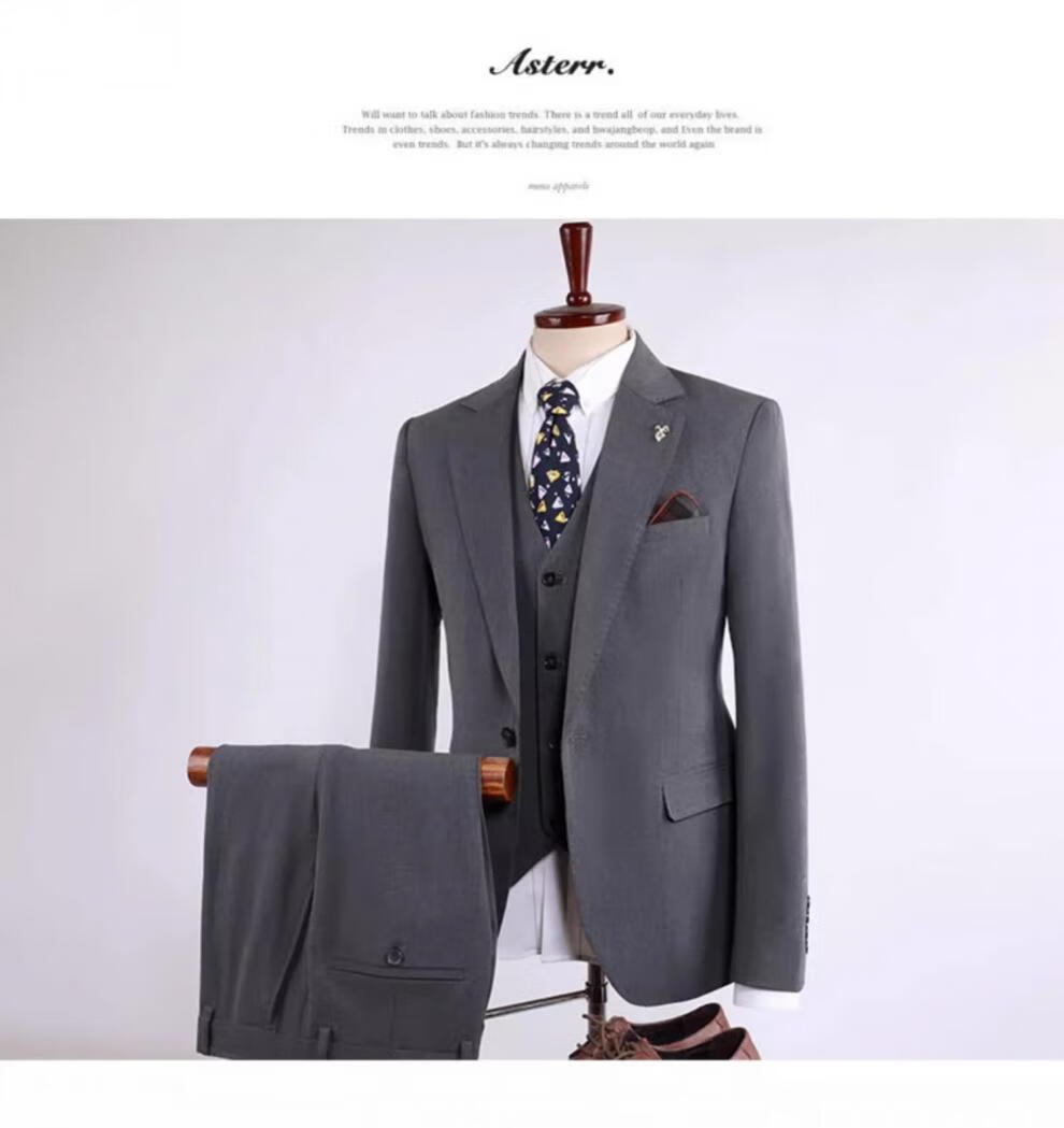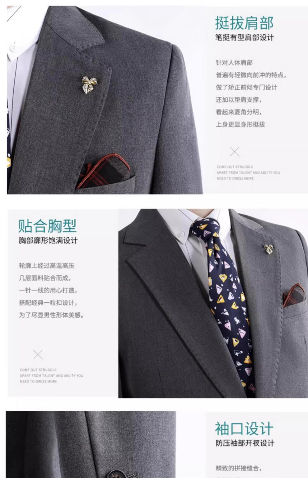 GOLDLION G+ Men's Suit Suit Business Formal Wedding Groom's Dress High-End Casual Suit Jacket Men's Blue Suit+Vest+Pants S