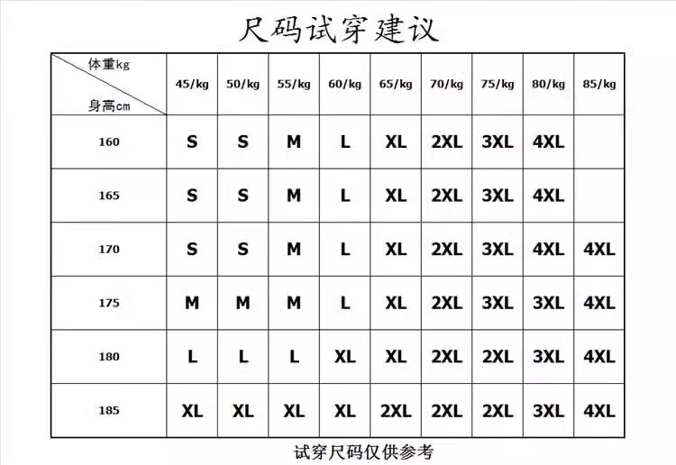 China (cm) 165 / 88-90 170 / 96-98 175 / 108-110 180 / 118-122 185 / 126-130