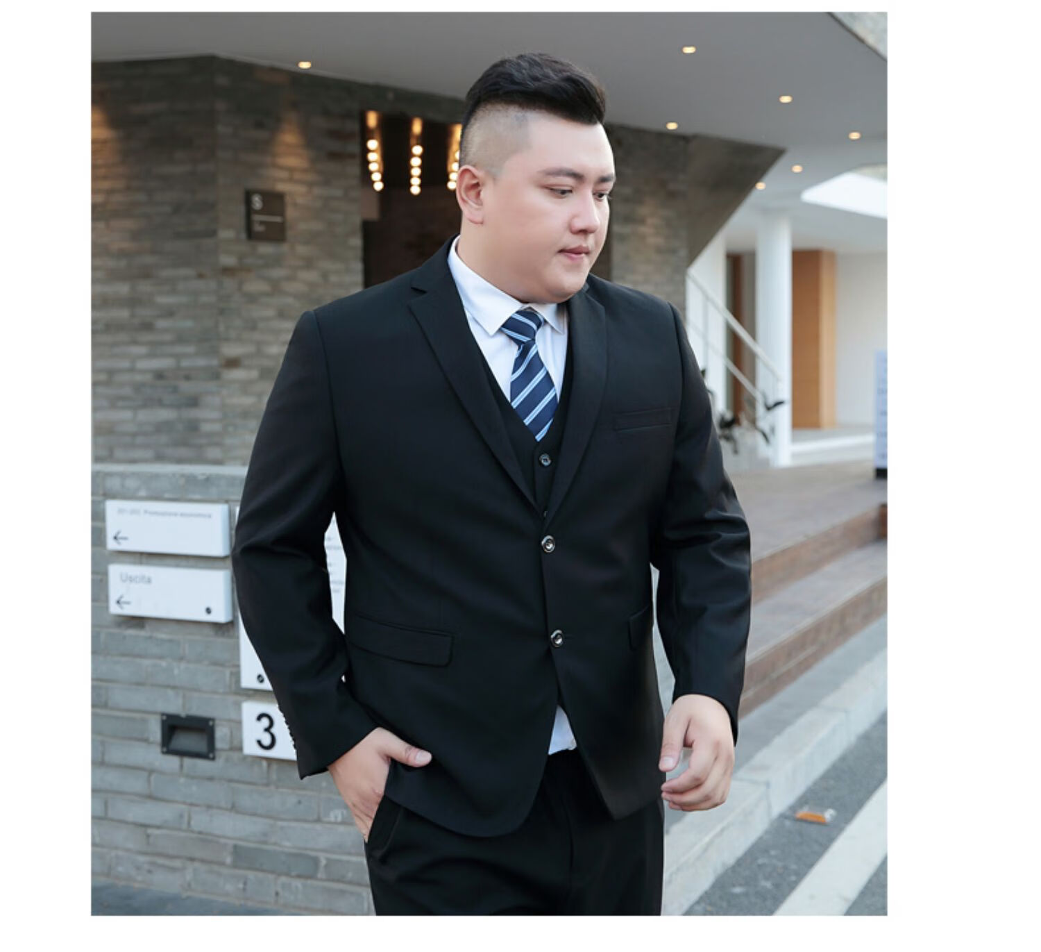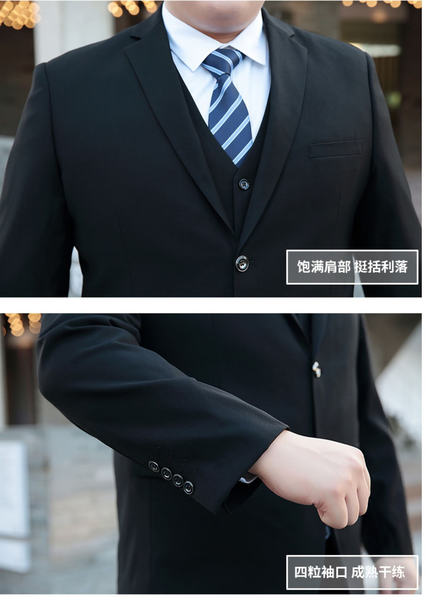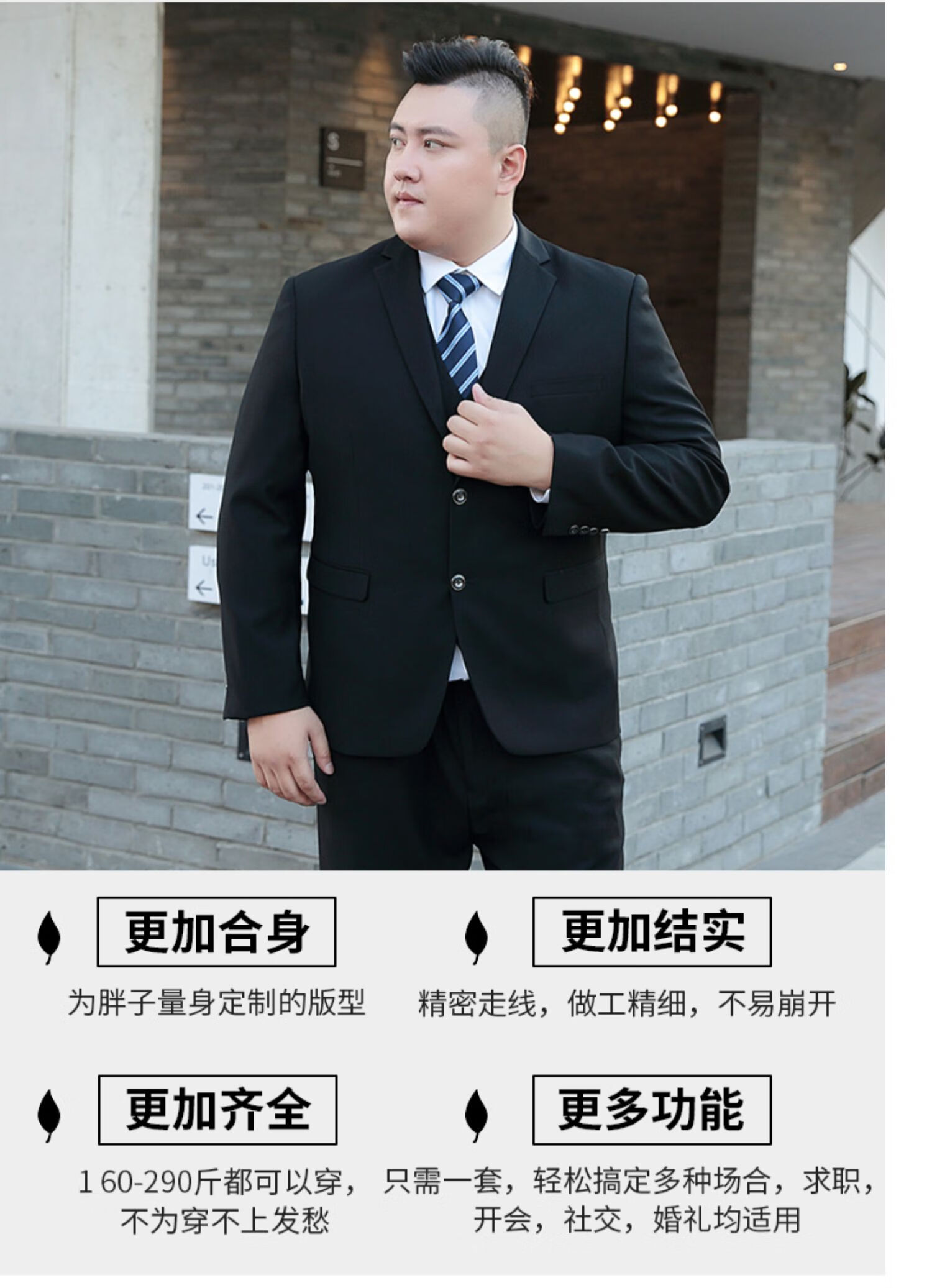 Playboy (PLAYBOY) plus size suit men's suit plus fat plus fat business formal suit jacket wedding dress professional wear autumn two-button large size black single suit top + tie XL recommended 120-140Jin Jin equals 0.5 kg