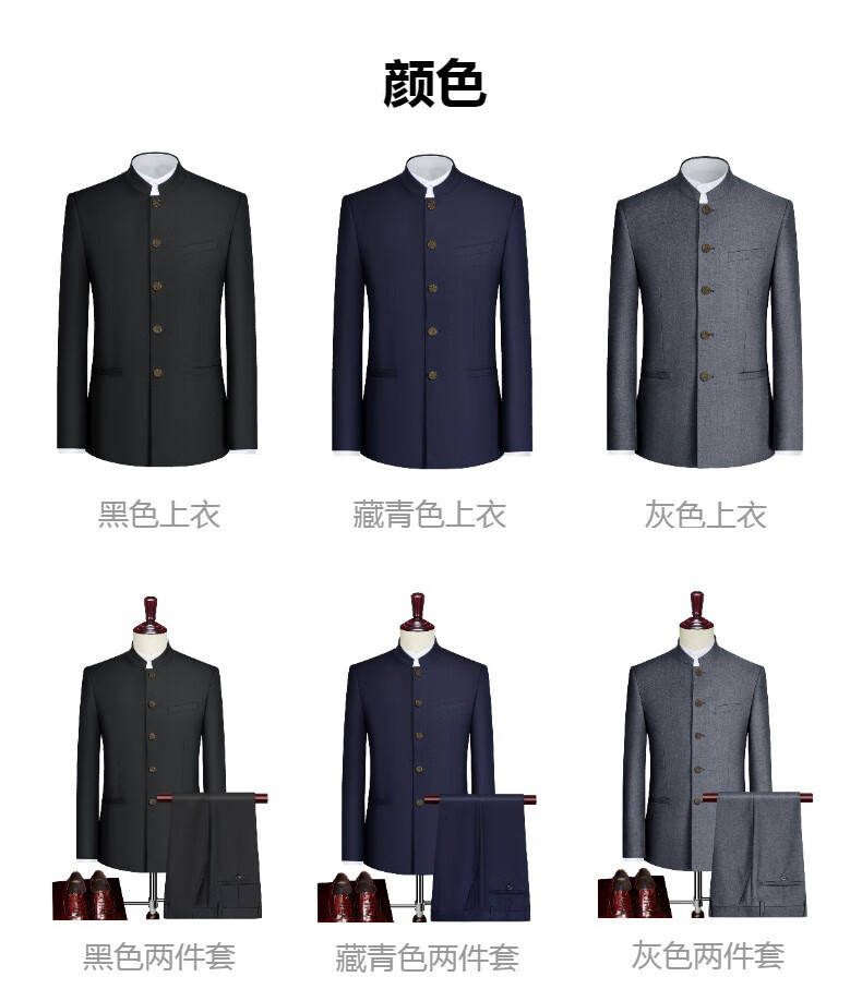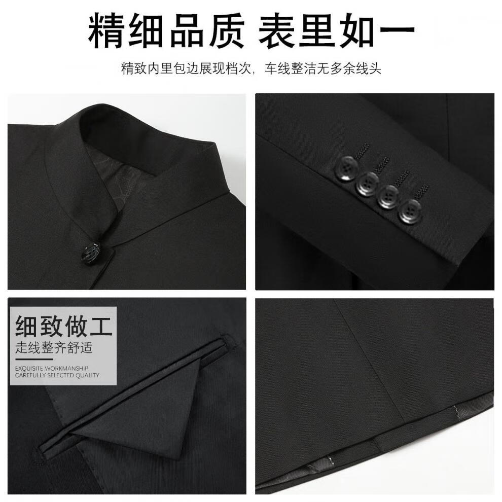 GOLDLION G+Goldlion Chinese tunic suit men's slim fit Chinese style groom's dress two-piece stand-up collar suit Chinese style four seasons tunic suit navy blue (top + pants + stand-up collar shirt) 3XL (173-183Jin Jin equals 0.5kg)