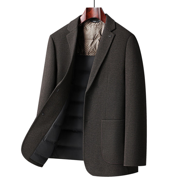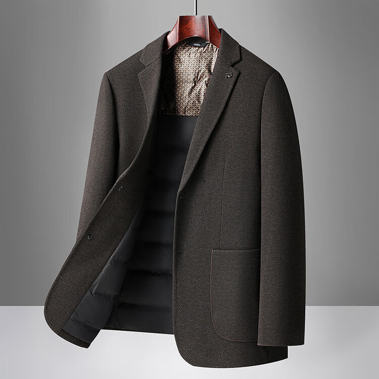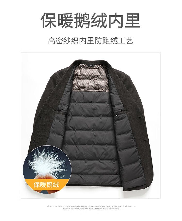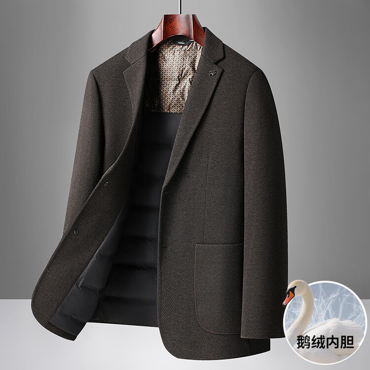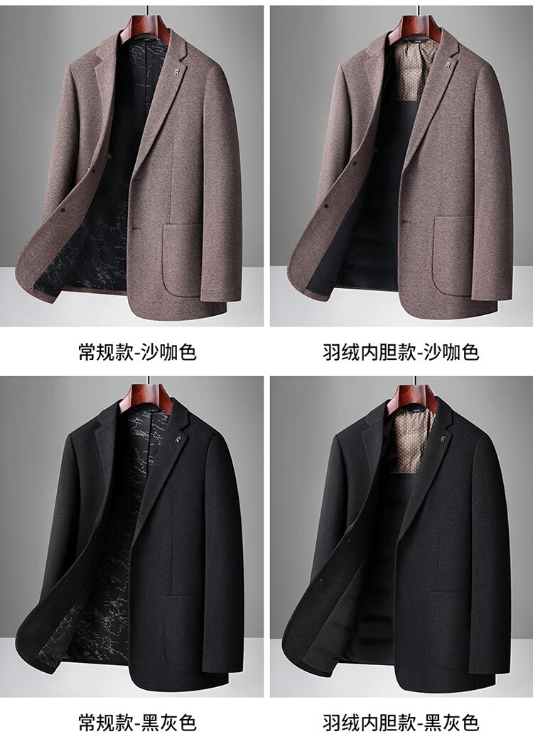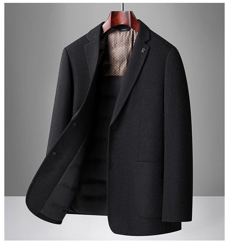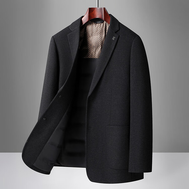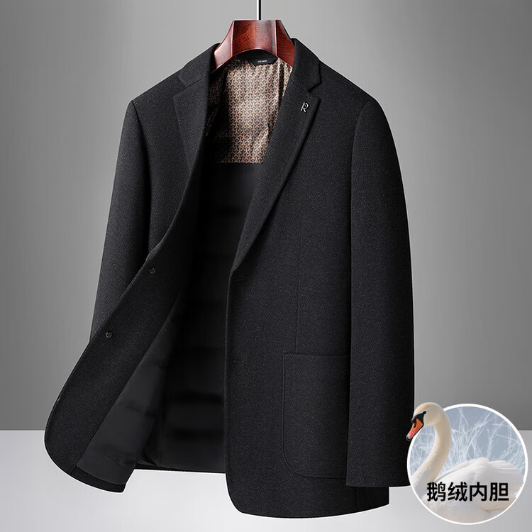 Red bean sheep wool + goose down men's suit autumn and winter warm plus plus size men's single suit woolen jacket black gray thick section M 170