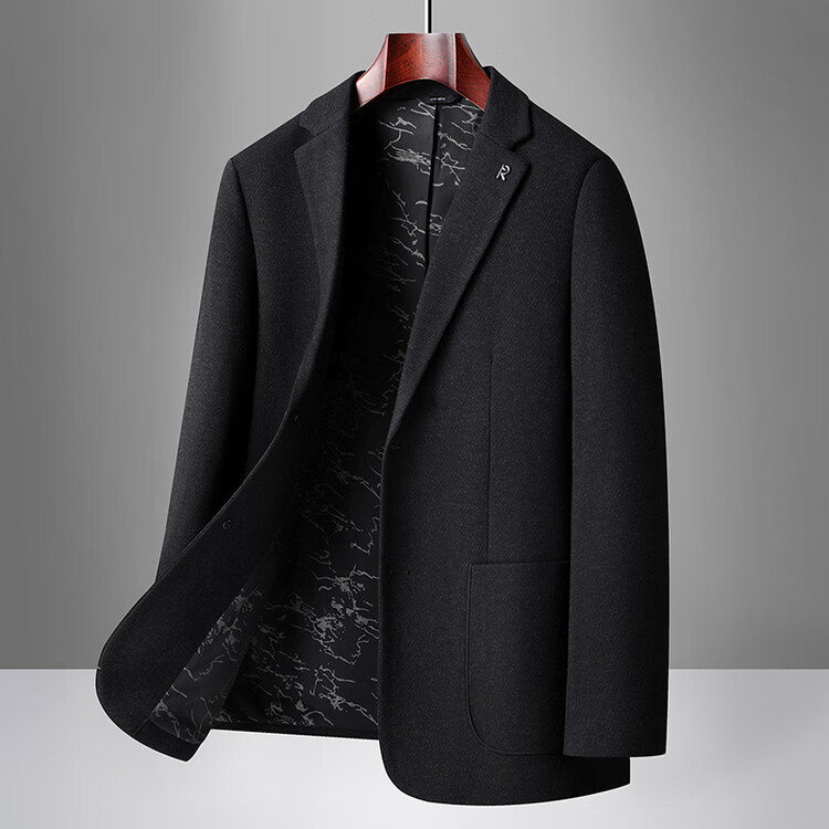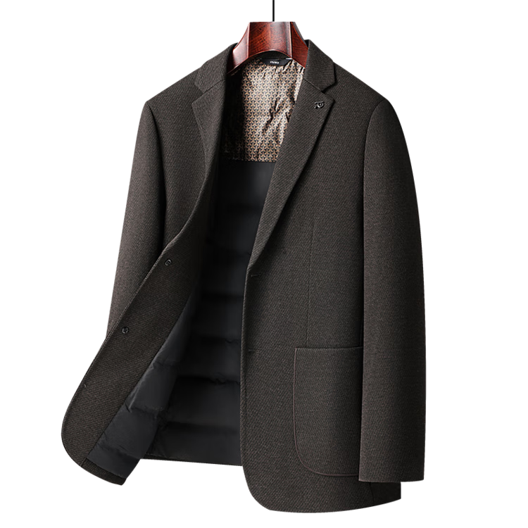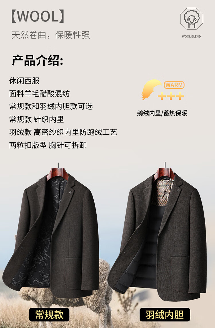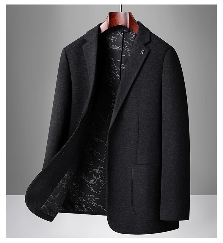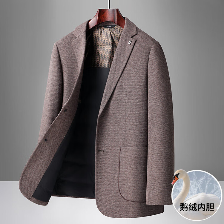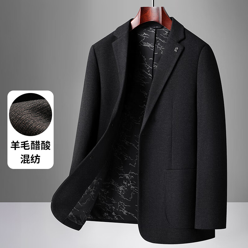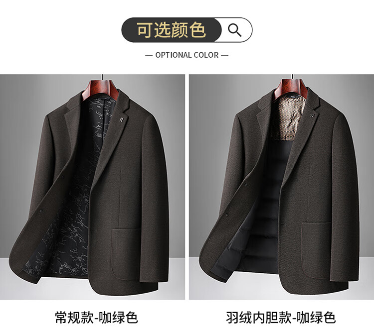 Red bean sheep wool + goose down men's suit autumn and winter warm plus plus size men's single suit woolen jacket black gray thick section M 170