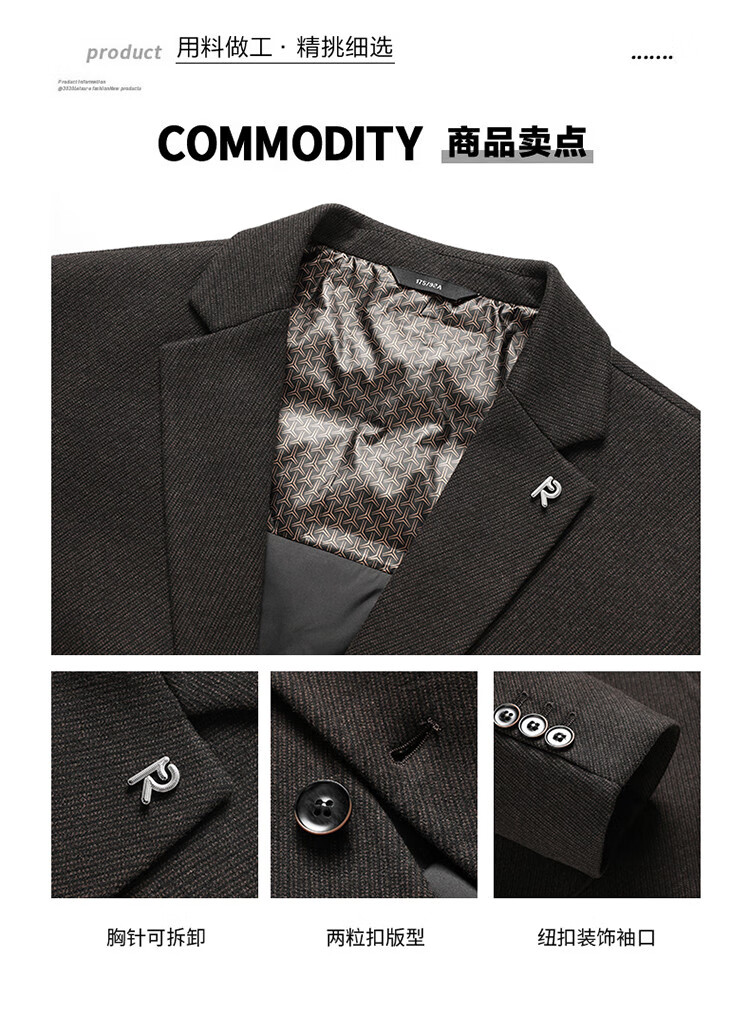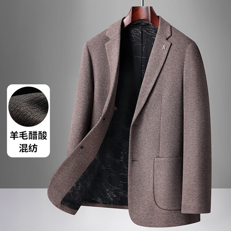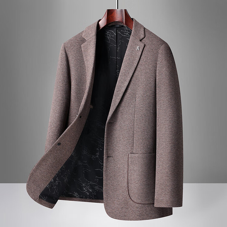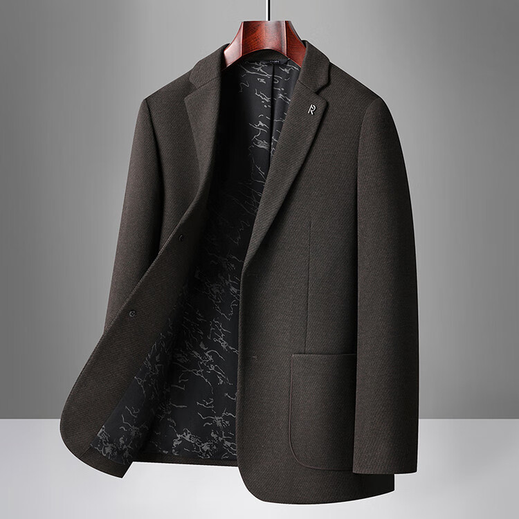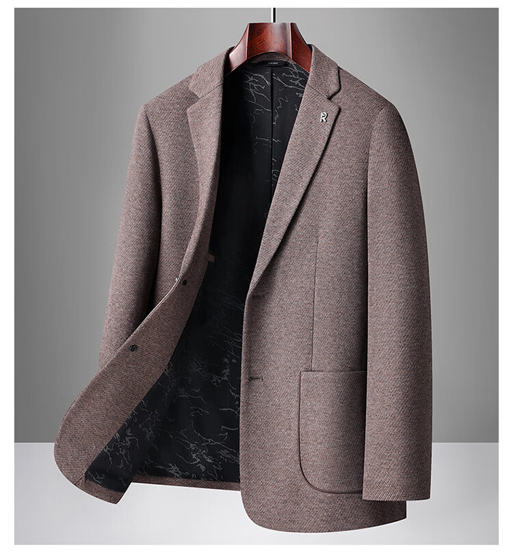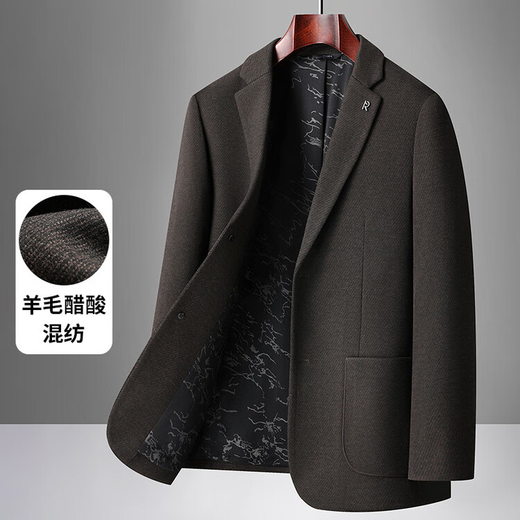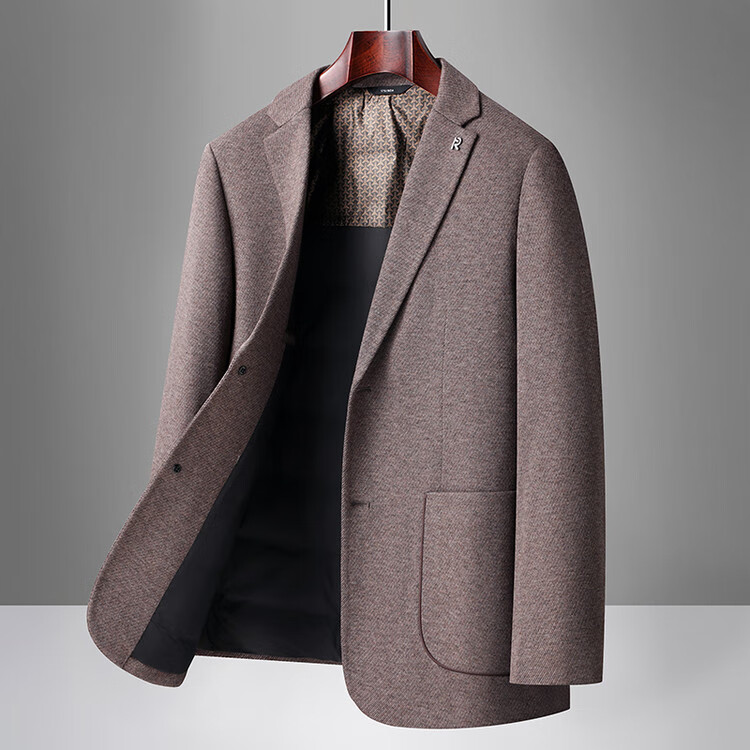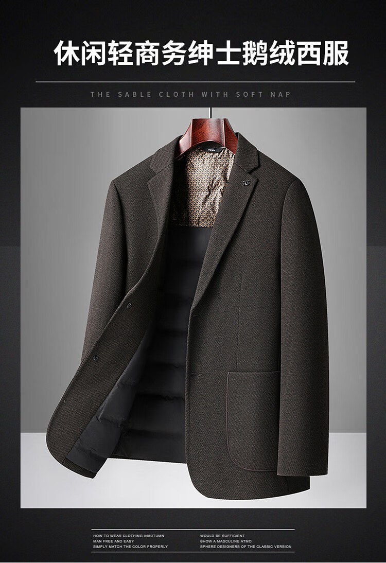 Red bean sheep wool + goose down men's suit autumn and winter warm plus plus size men's single suit woolen jacket black gray thick section M 170