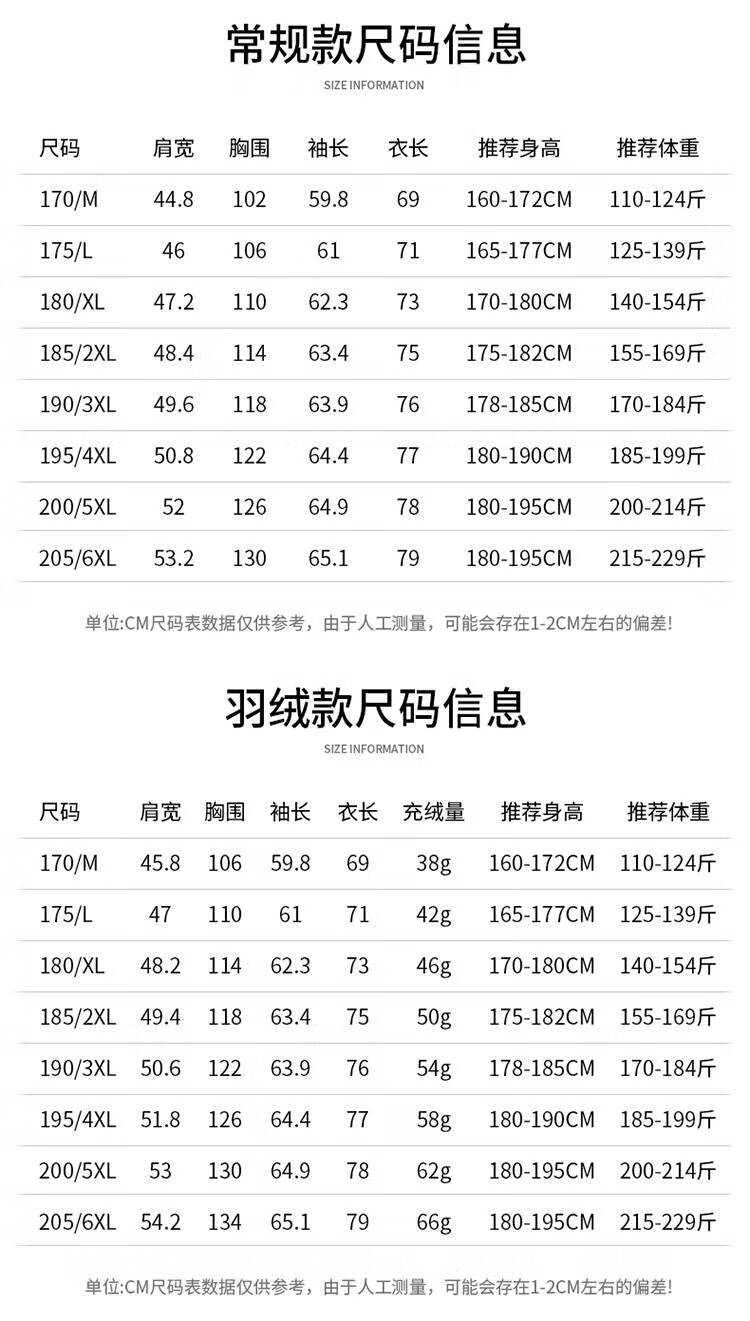 China (cm) 165 / 88-90 170 / 96-98 175 / 108-110 180 / 118-122 185 / 126-130