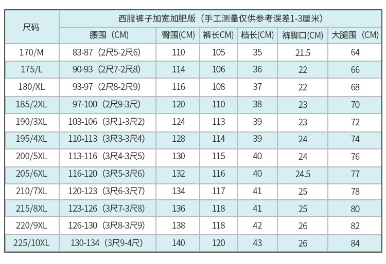China (cm) 160-165/84-86 165-170 / 88-90 167-172 / 92-96 168-173 / 98-102 170-176 / 106-110