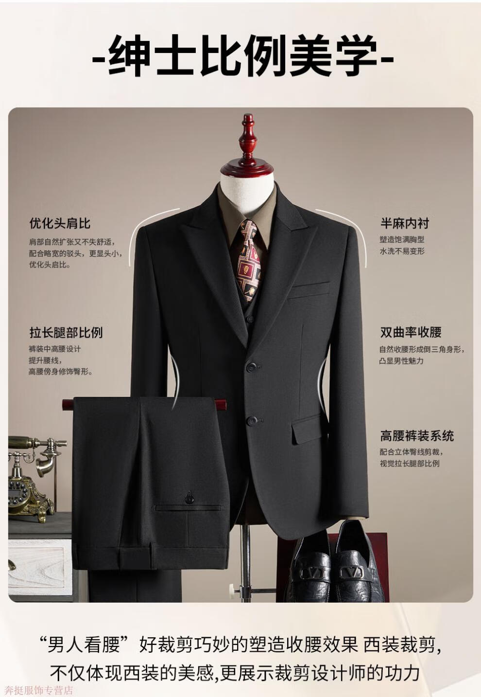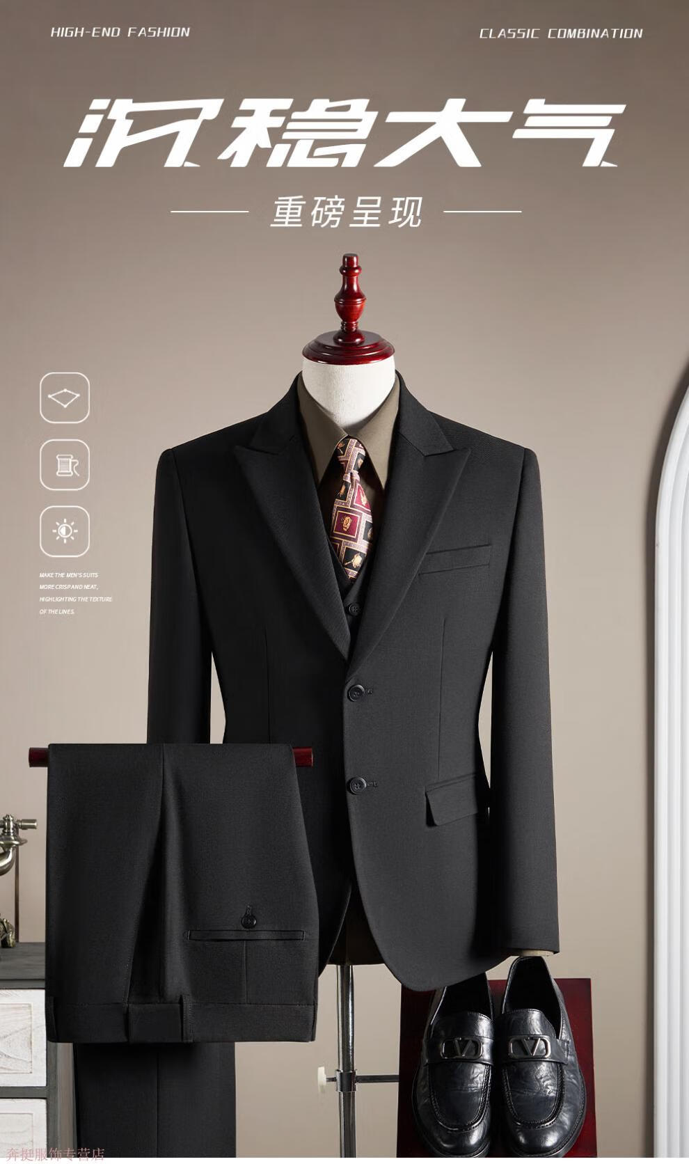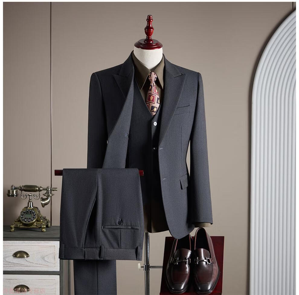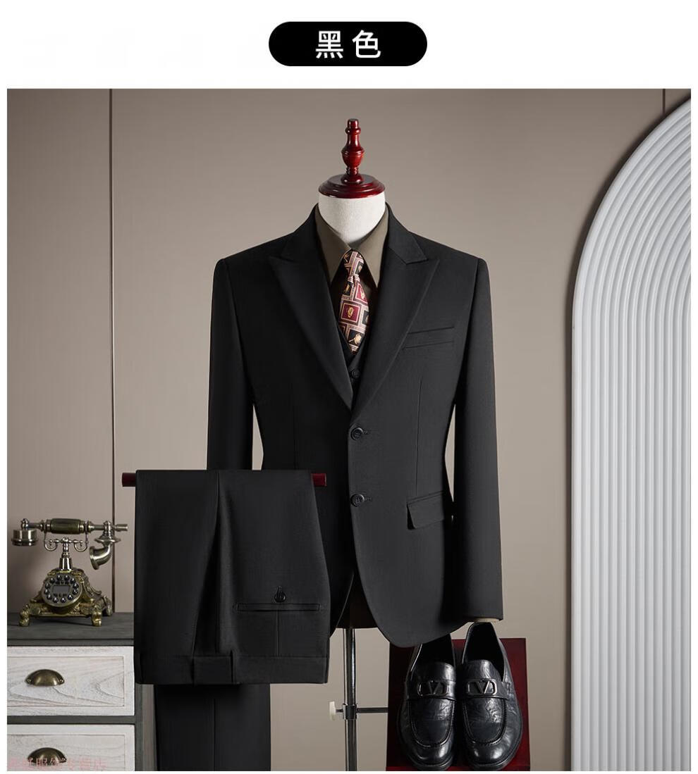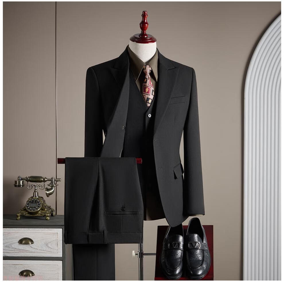 Angel Bird Haute Couture Wool Suit Suit Men's Wedding Dress High-End Business Professional Slim Formal Groom's Suit Black (Single Suit) M
