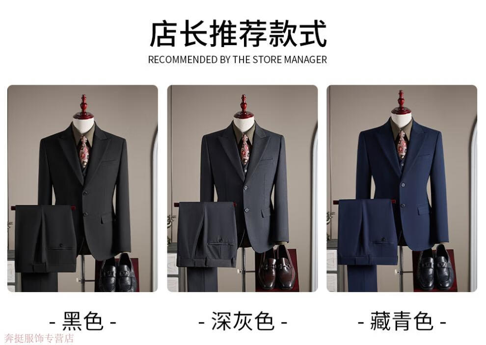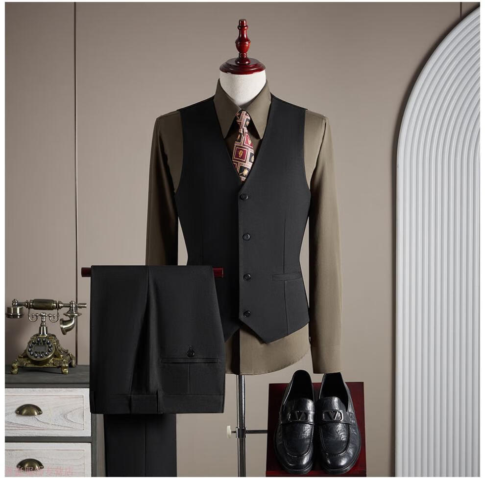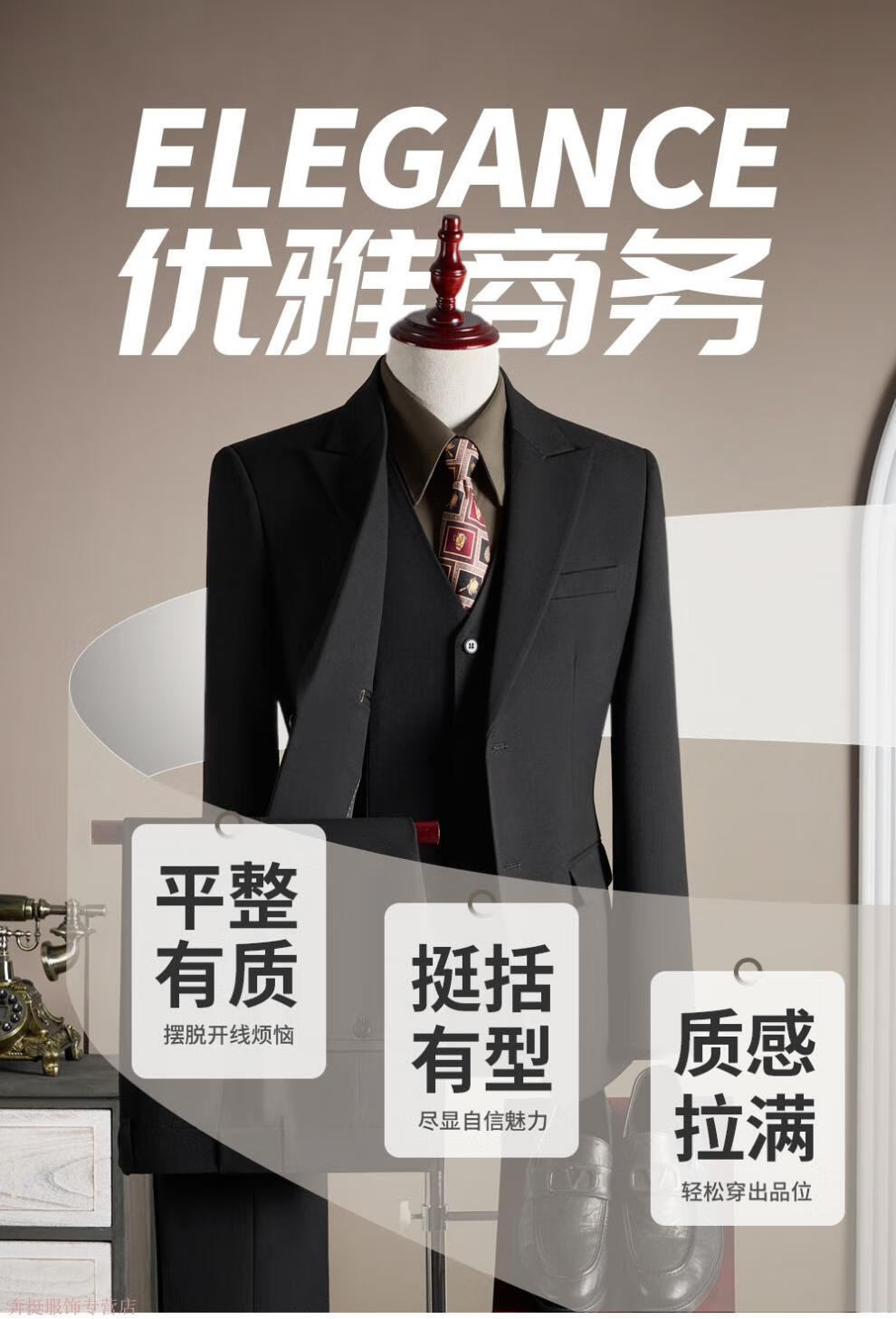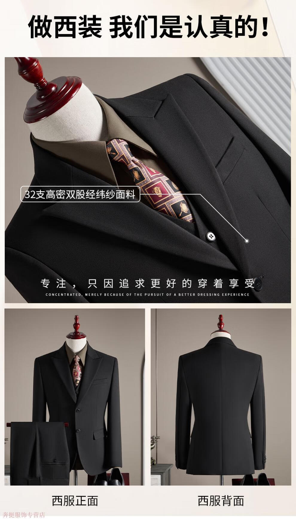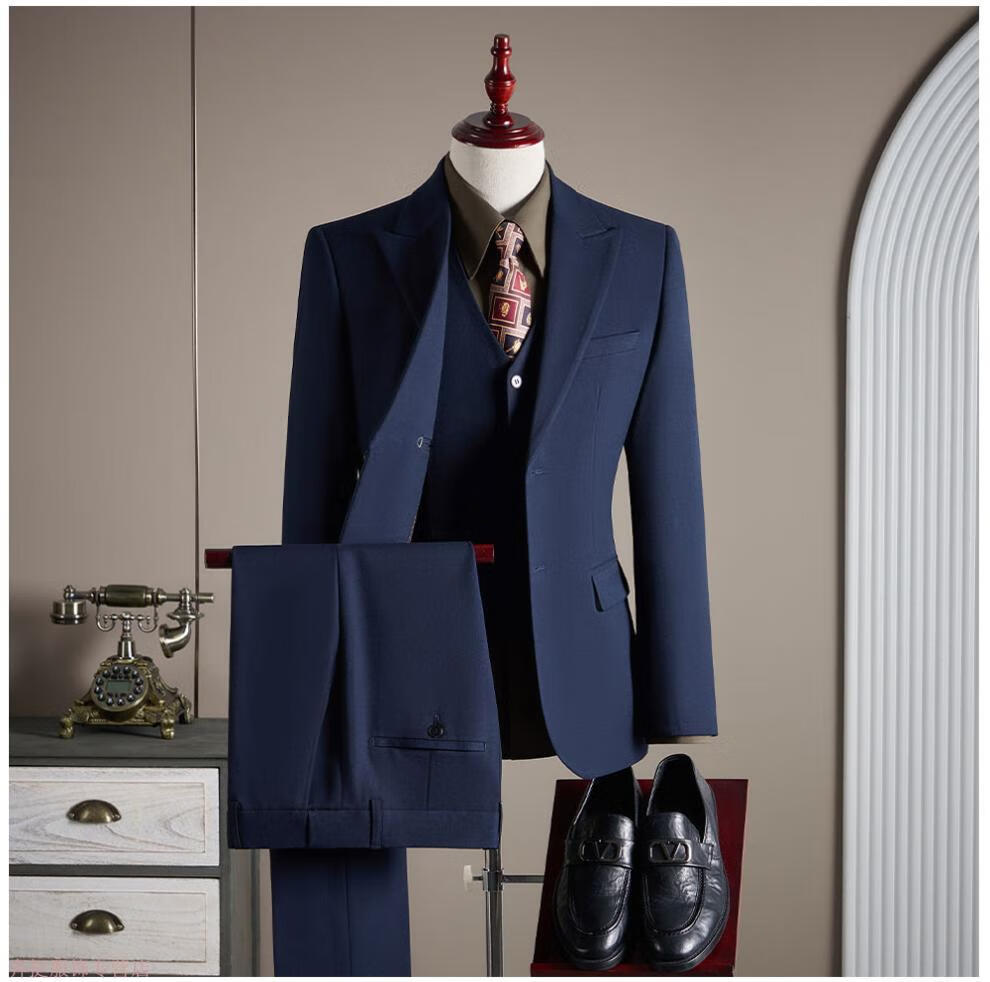 Angel Bird Haute Couture Wool Suit Suit Men's Wedding Dress High-End Business Professional Slim Formal Groom's Suit Black (Single Suit) M