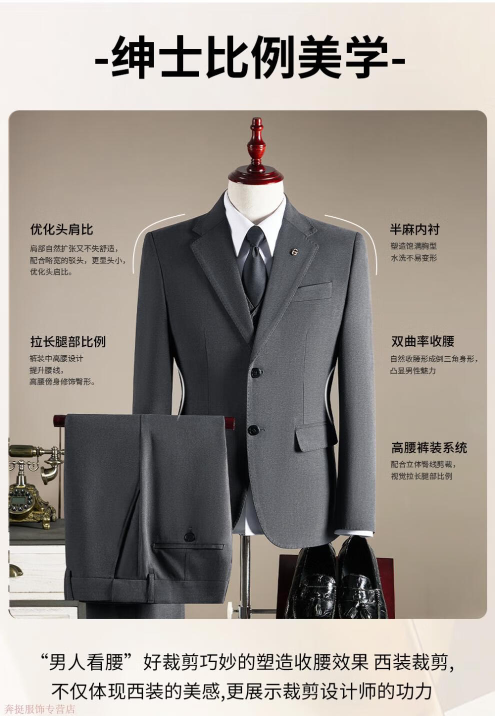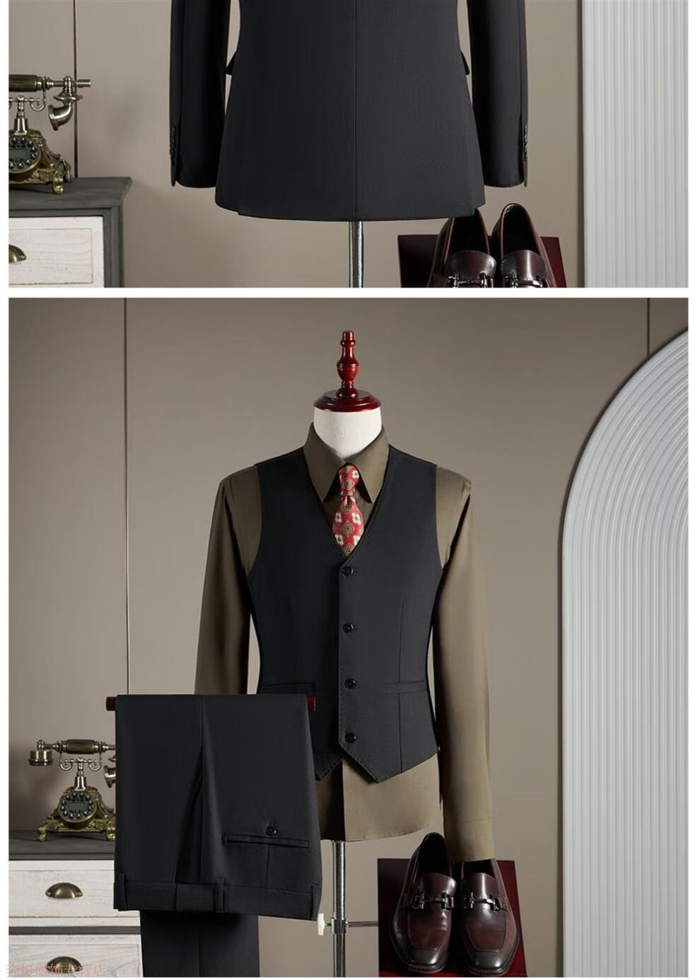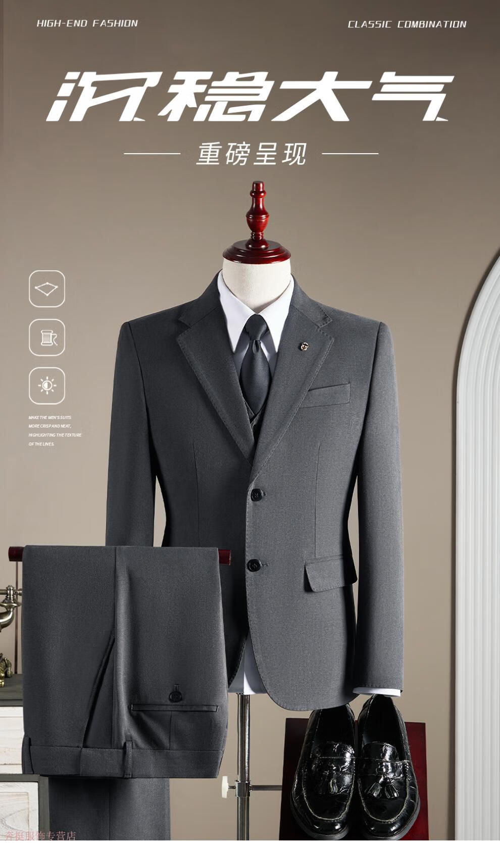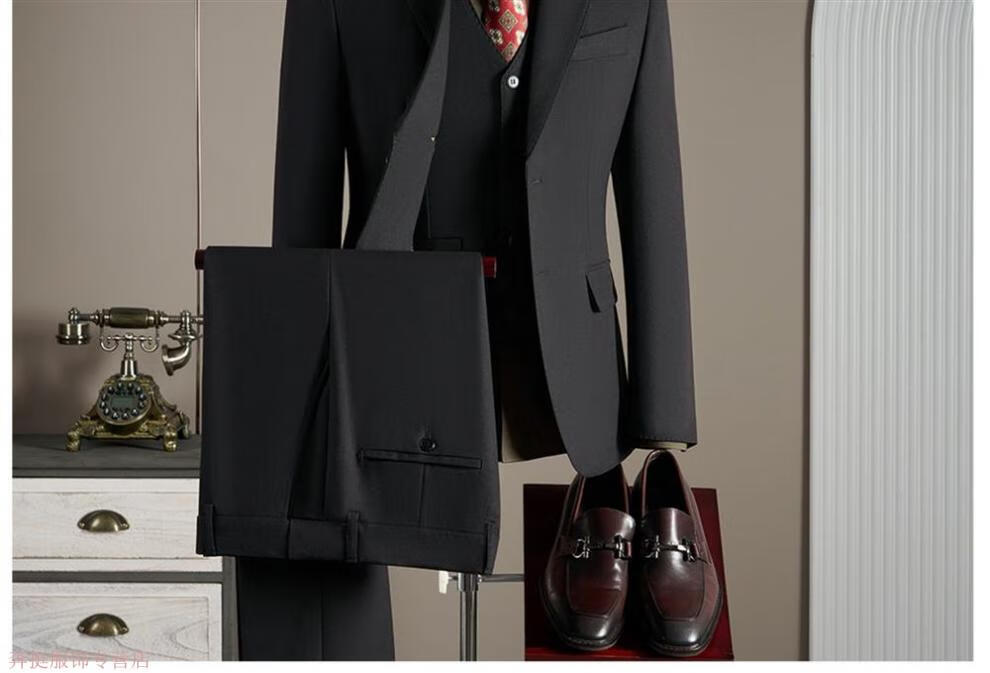 Angel Bird Men's Wool Suit Suit Men's Autumn and Winter High-end Business Formal Wear Plus Size Groom Wedding Suit Three-piece Black Single-piece Suit M (95-110 Jin Jin equals 0.5 kg)