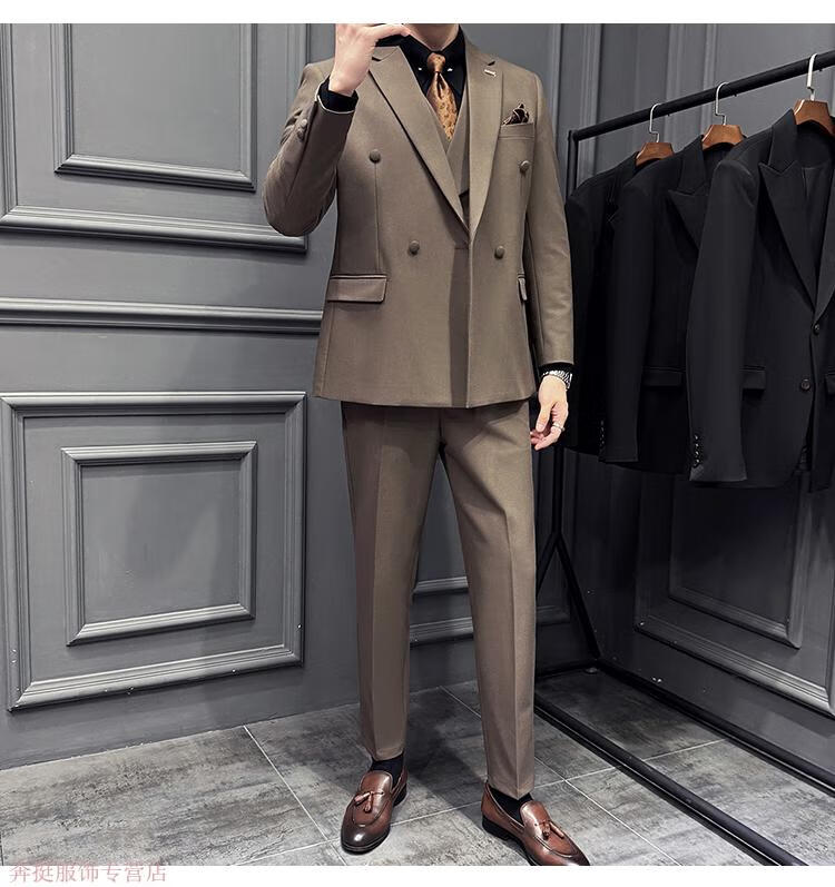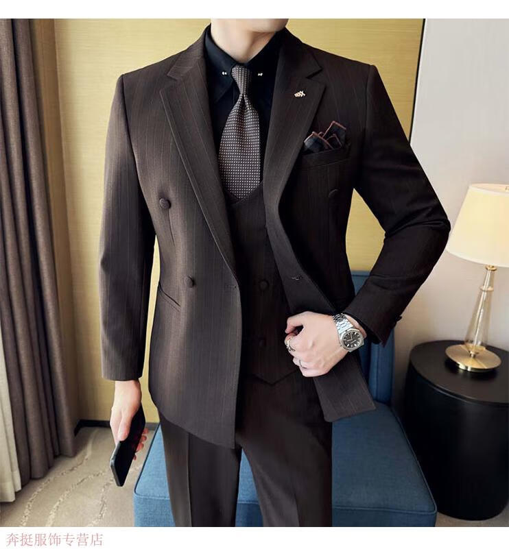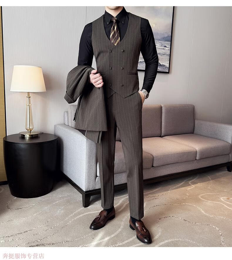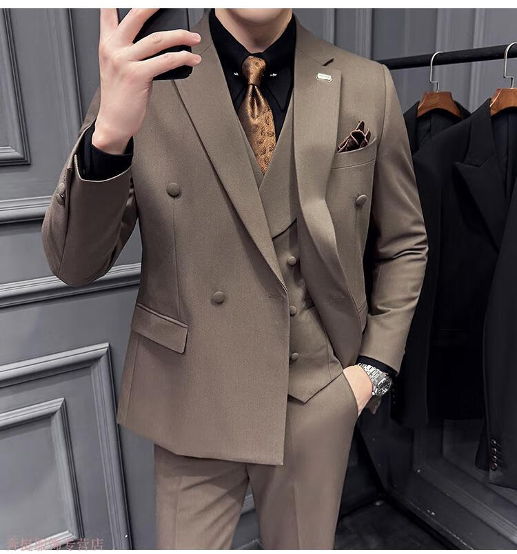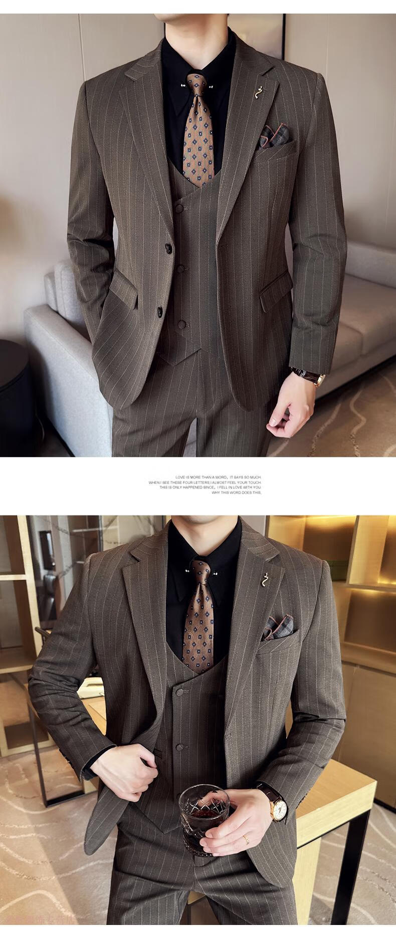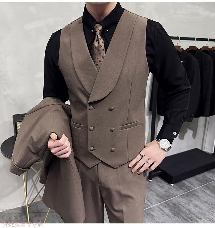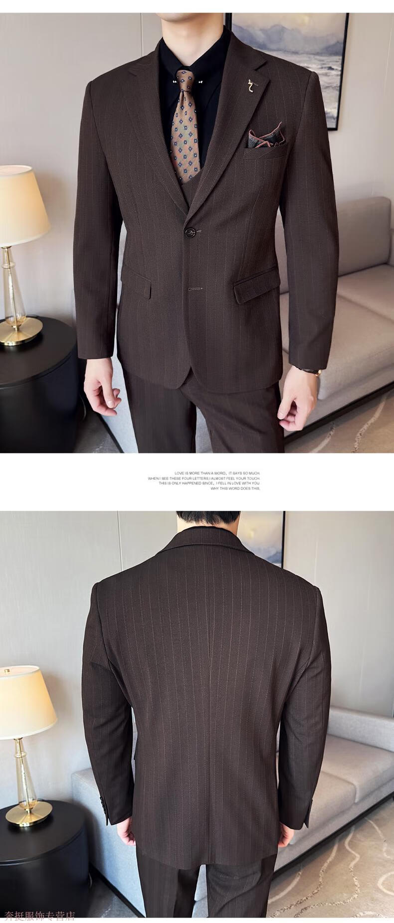 Annunciation Bird Haute Couture Suit Men's Wedding Dress Korean Slim Groom's Suit British Style Business Formal Dress Dark Brown #(Suit+Vest+Trousers) Comes with free shirt and tie M