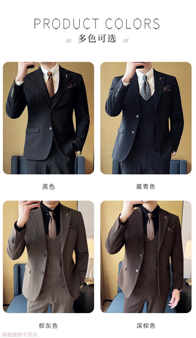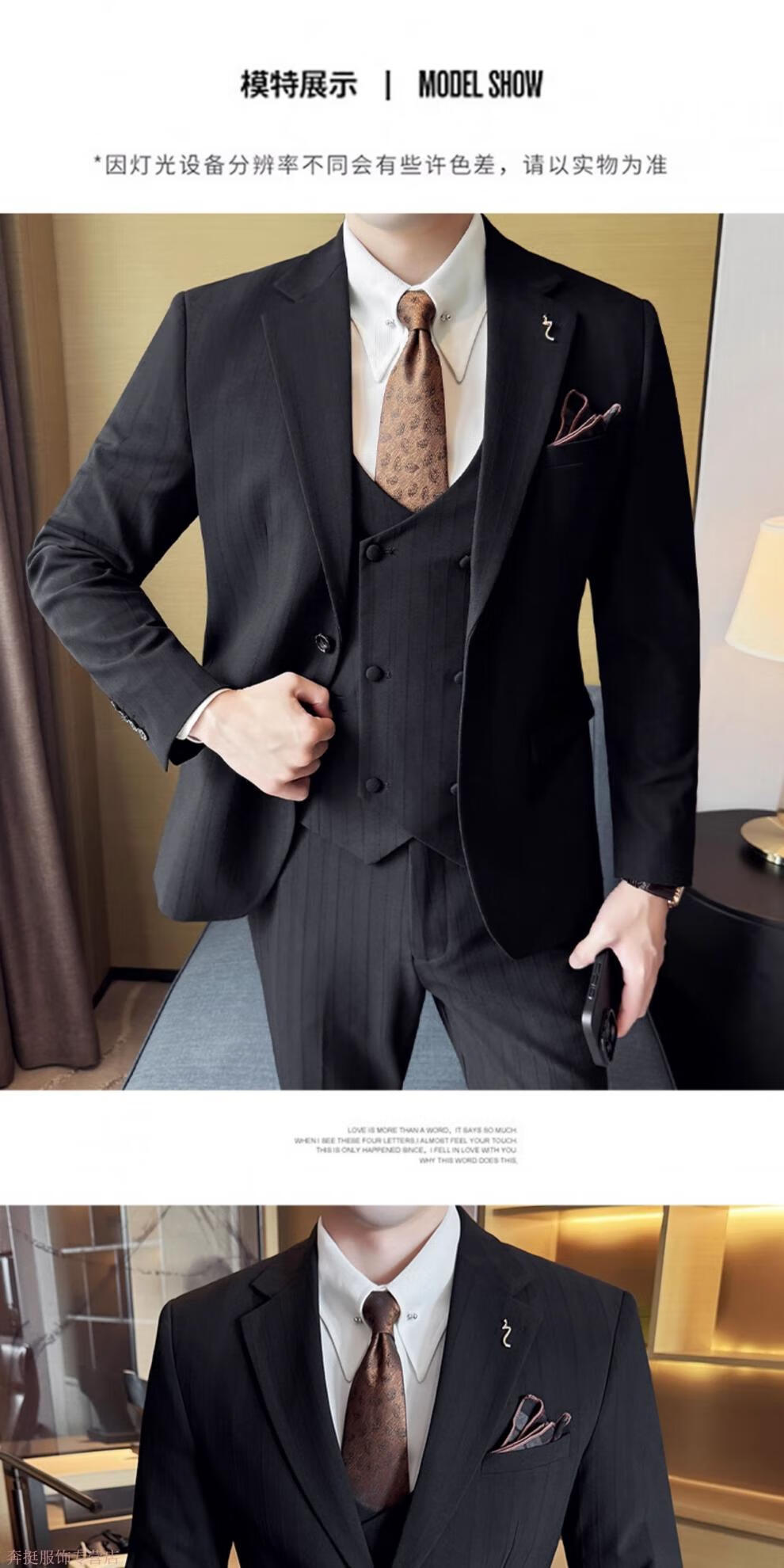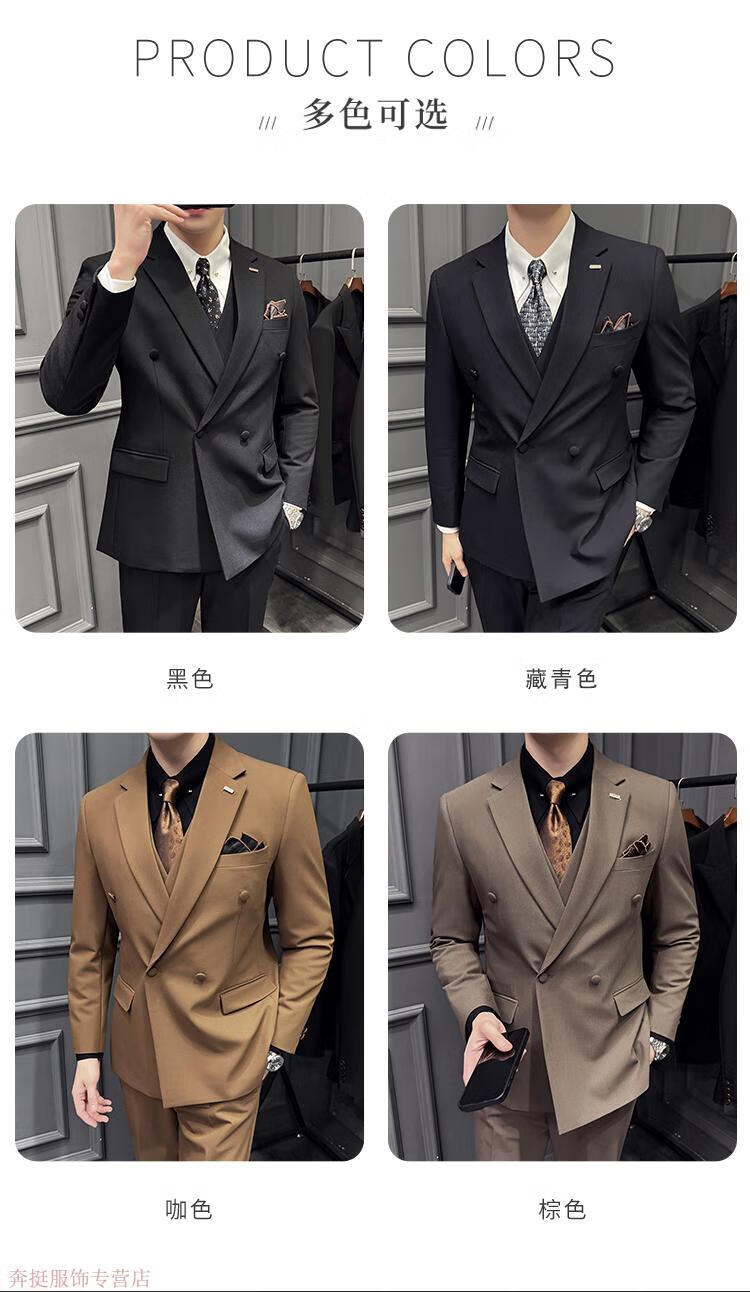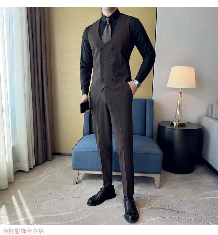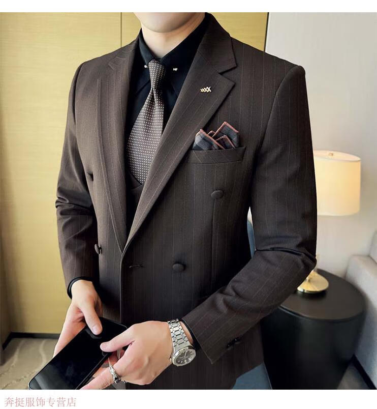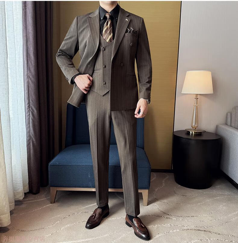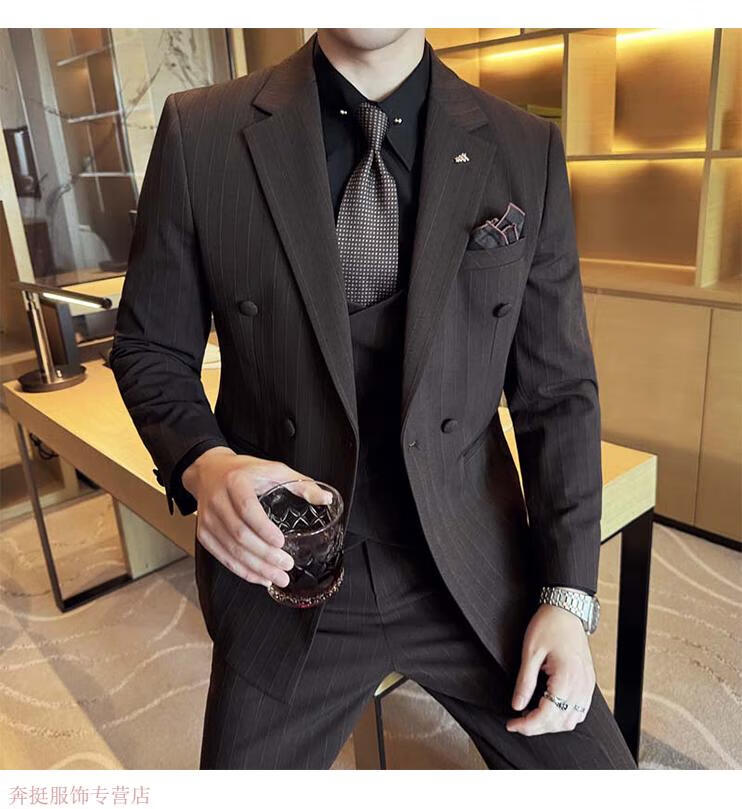 Annunciation Bird Haute Couture Suit Men's Wedding Dress Korean Slim Groom's Suit British Style Business Formal Dress Dark Brown #(Suit+Vest+Trousers) Comes with free shirt and tie M
